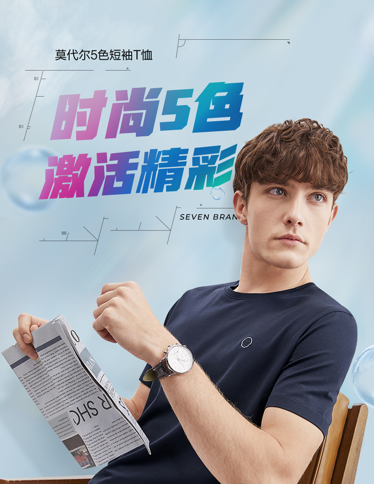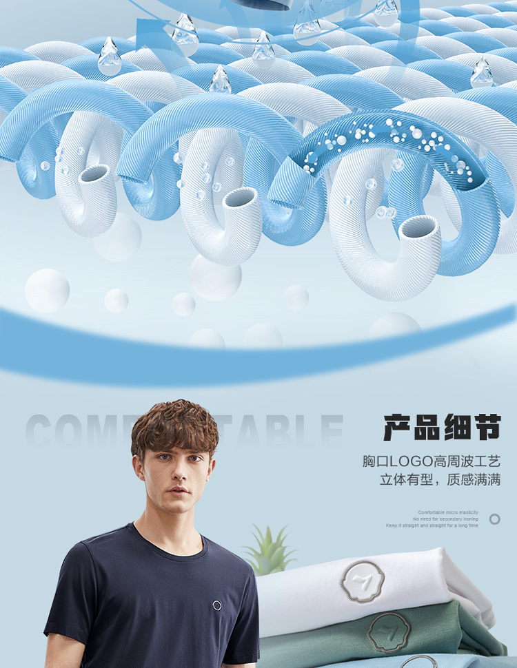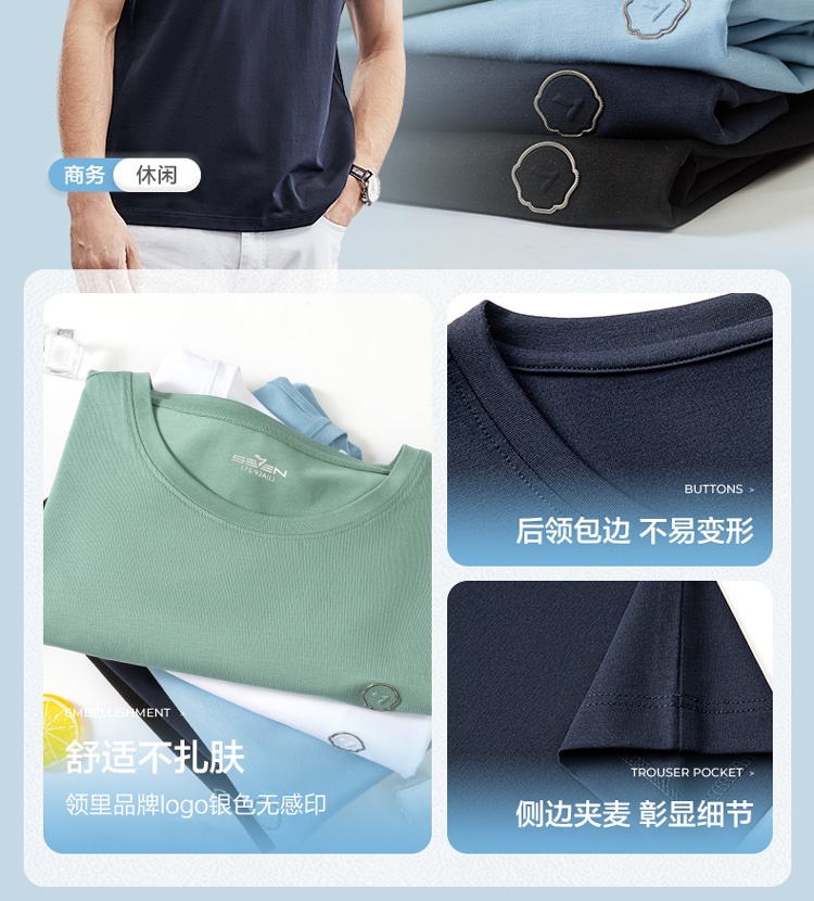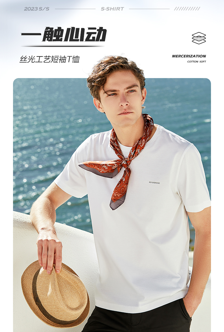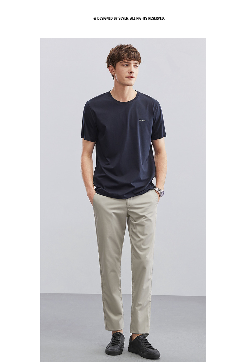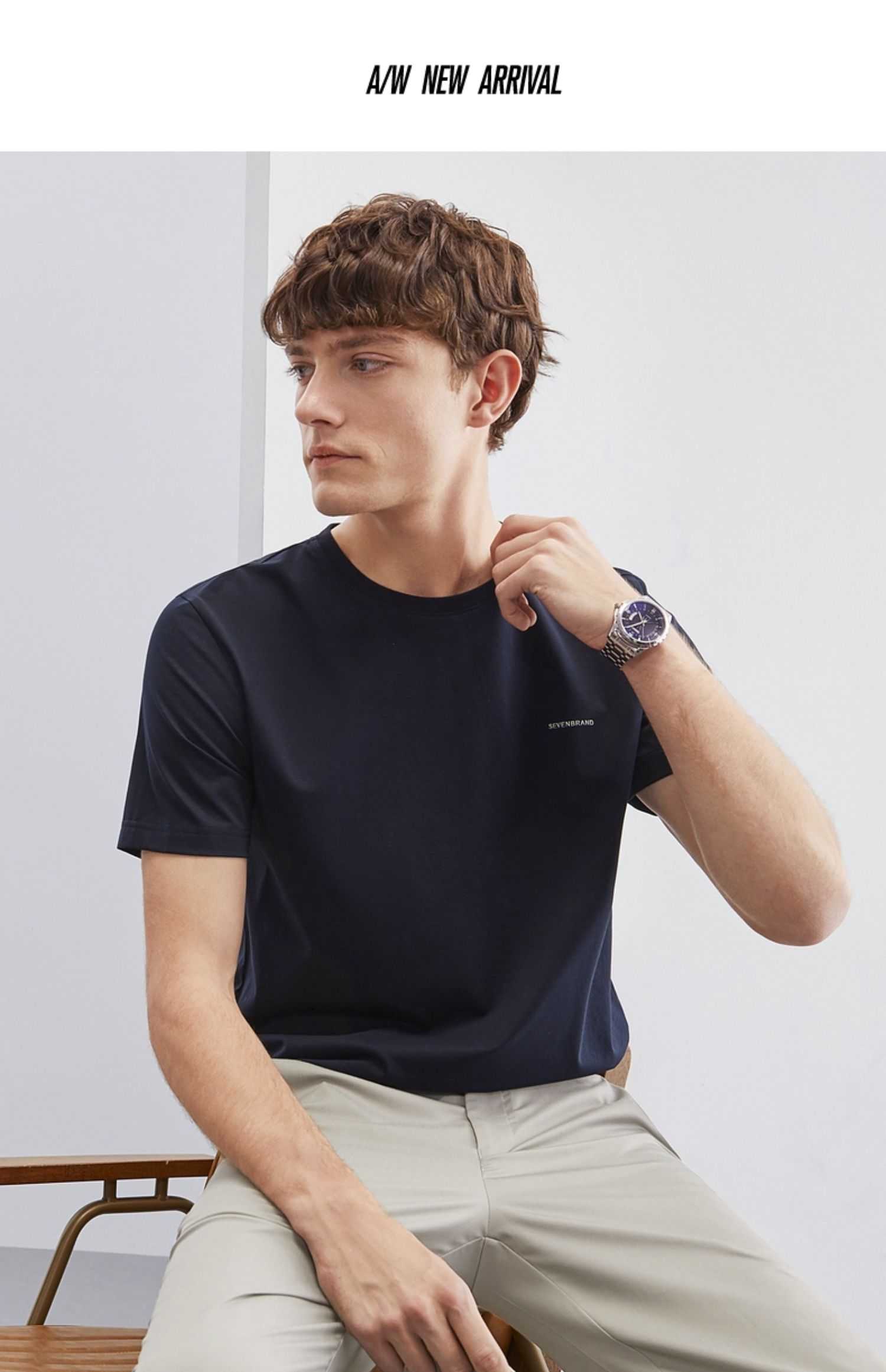 【丝光工艺】柒牌短袖t恤男夏季新款纯色休闲中青年上衣体恤 124T71460