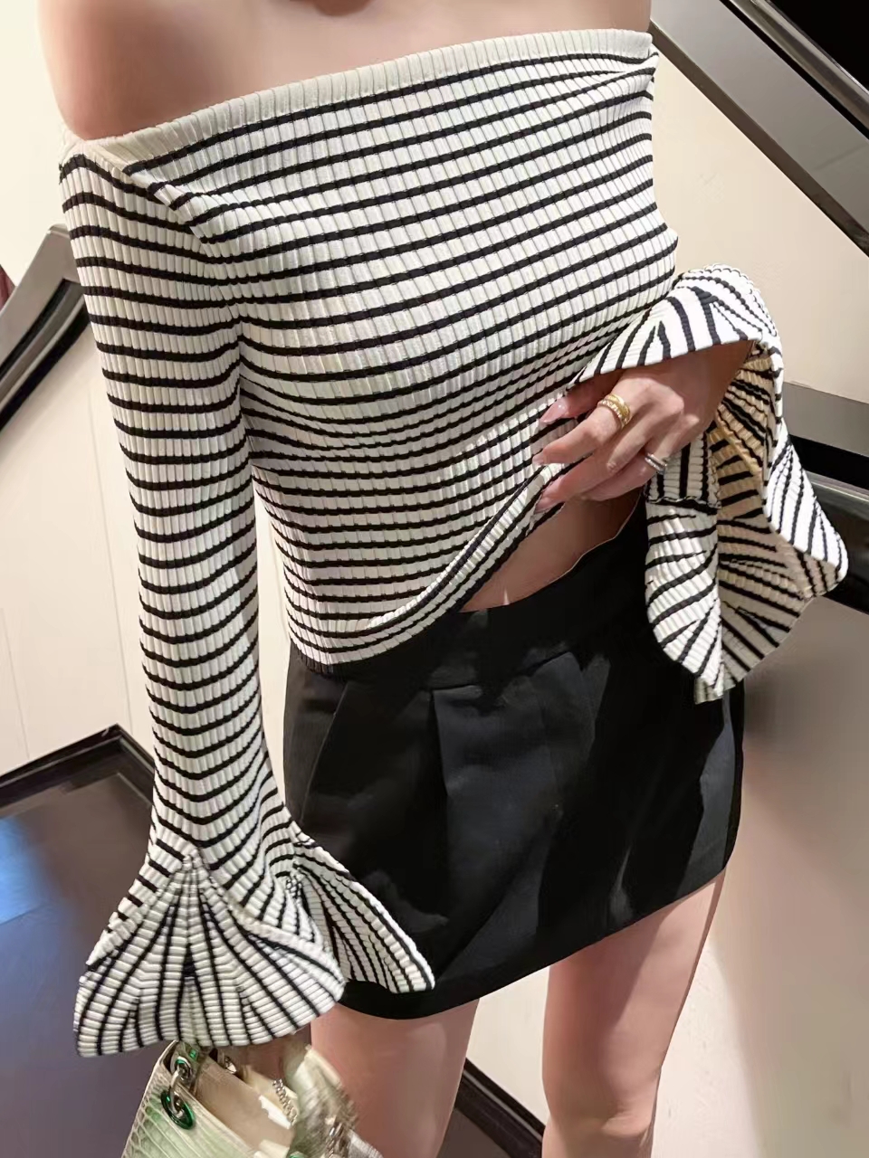 清仓捡漏 LINCHAOZHANG私服定制系列 LH240079露肩针织条纹上衣 LK240384细节裙裤
