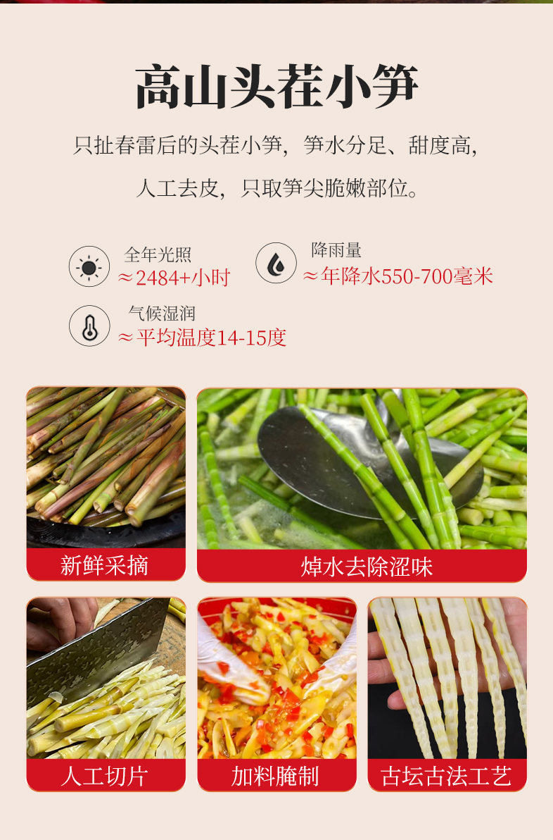 胡外婆 外婆的手工酸辣小笋 取当天挖来的野生嫩笋尖 去老根留嫩芯