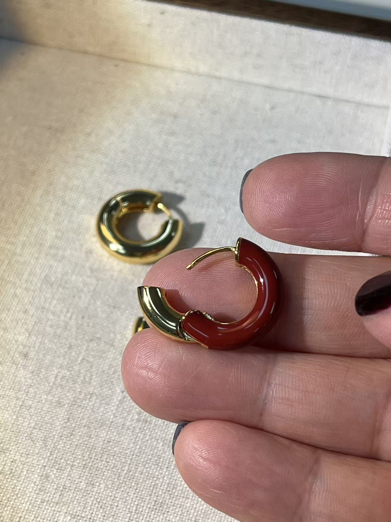 金色光晕耳扣 红色珐琅款(非质量问题不退换)更多美图群内见 详询烧饼