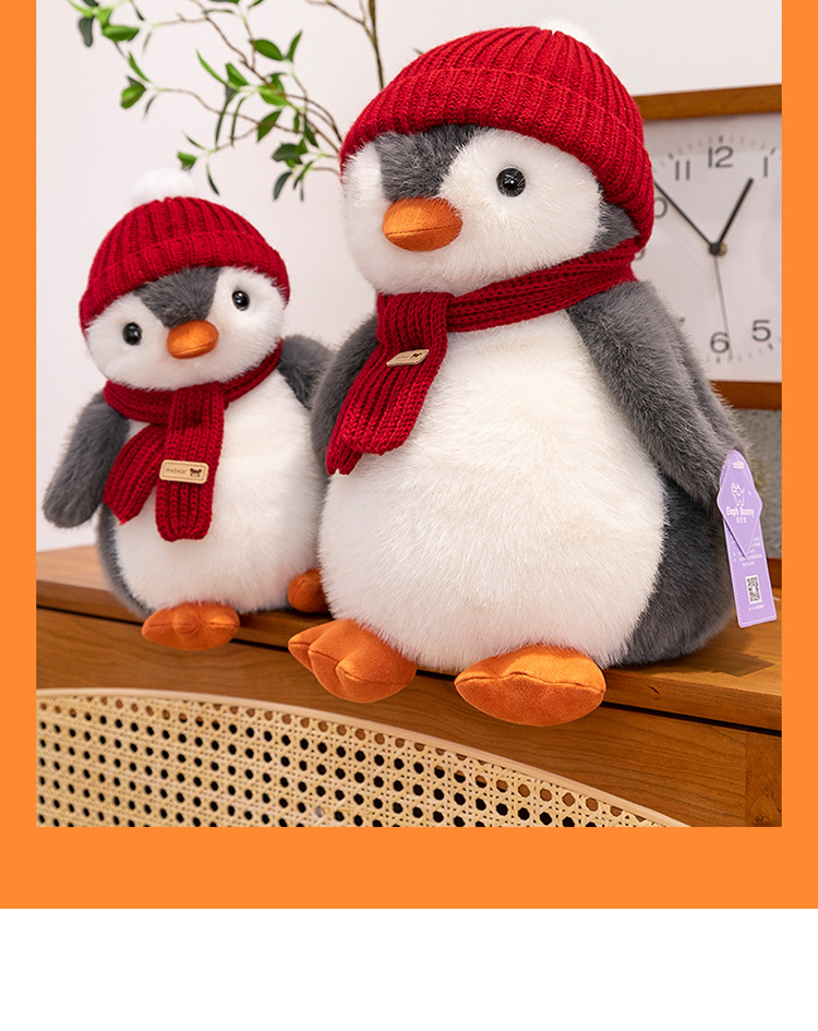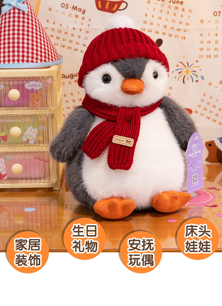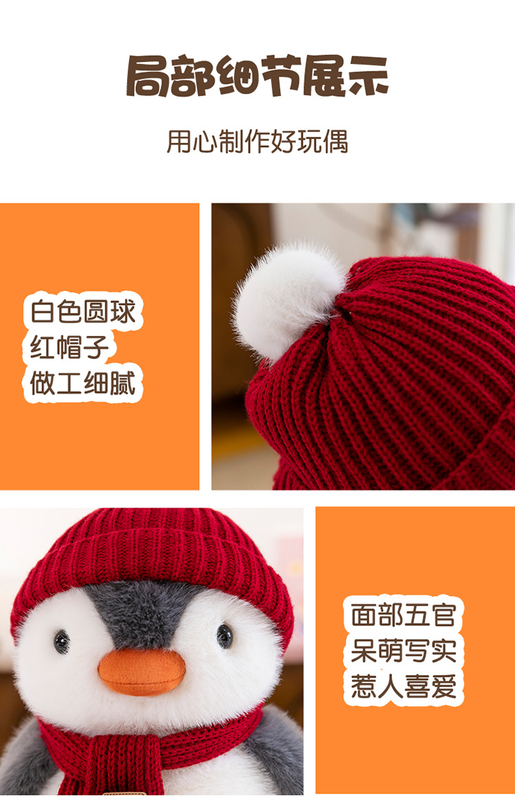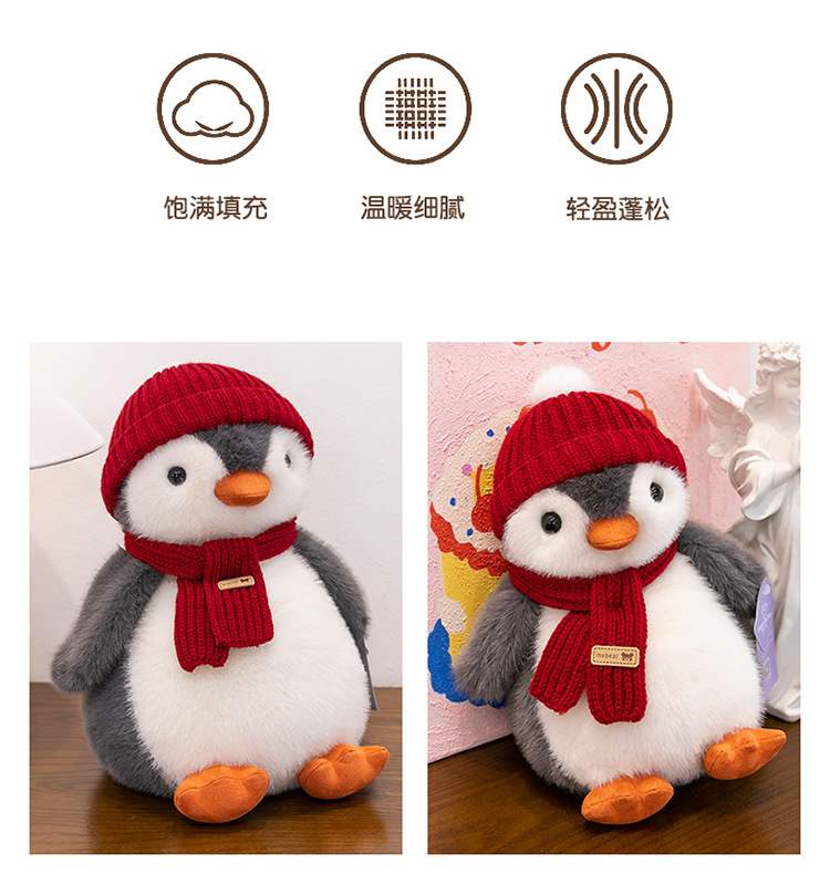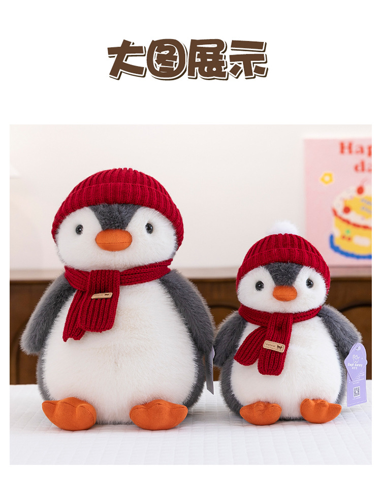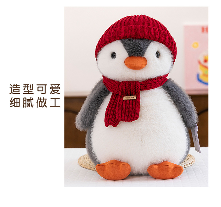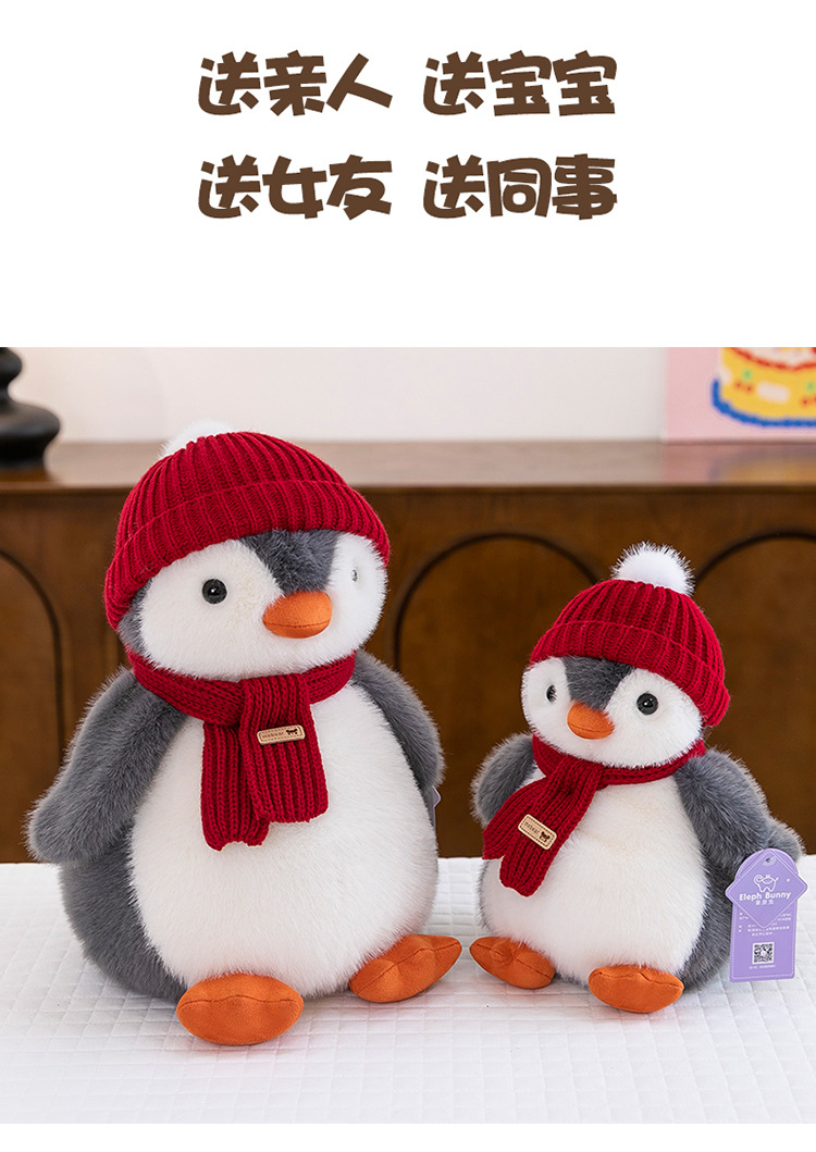 【呆萌可爱❗️节日惊喜送礼】玩偶公仔戴帽围巾喜宝企鹅毛绒玩具儿童抓机娃娃生日礼物。jd