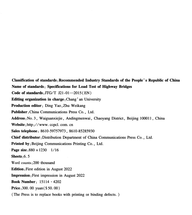 公路桥梁荷载试验规程(英文版)