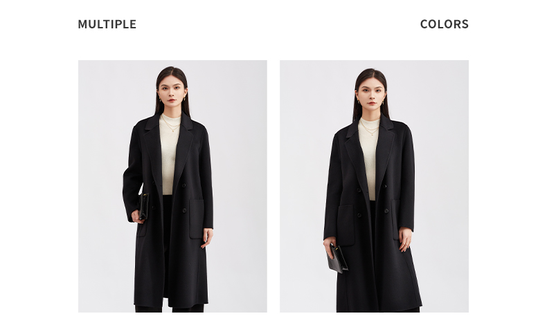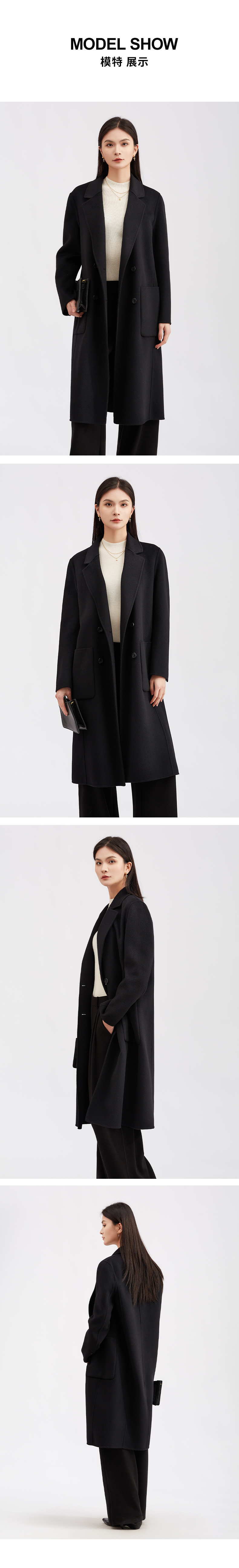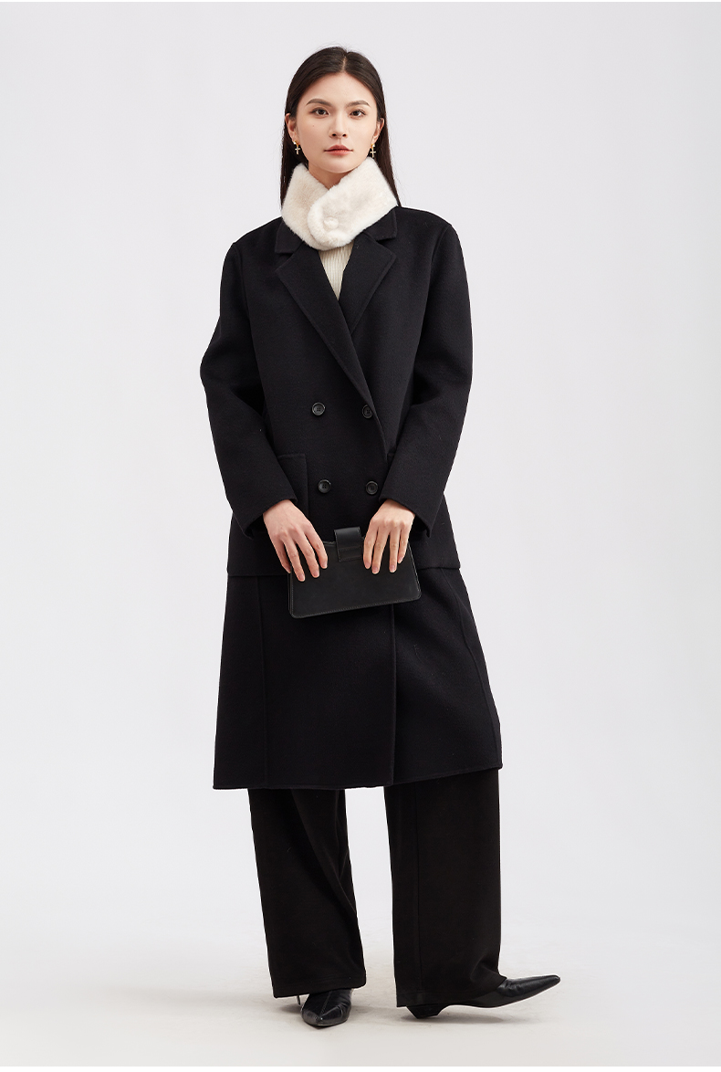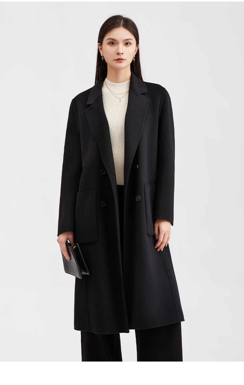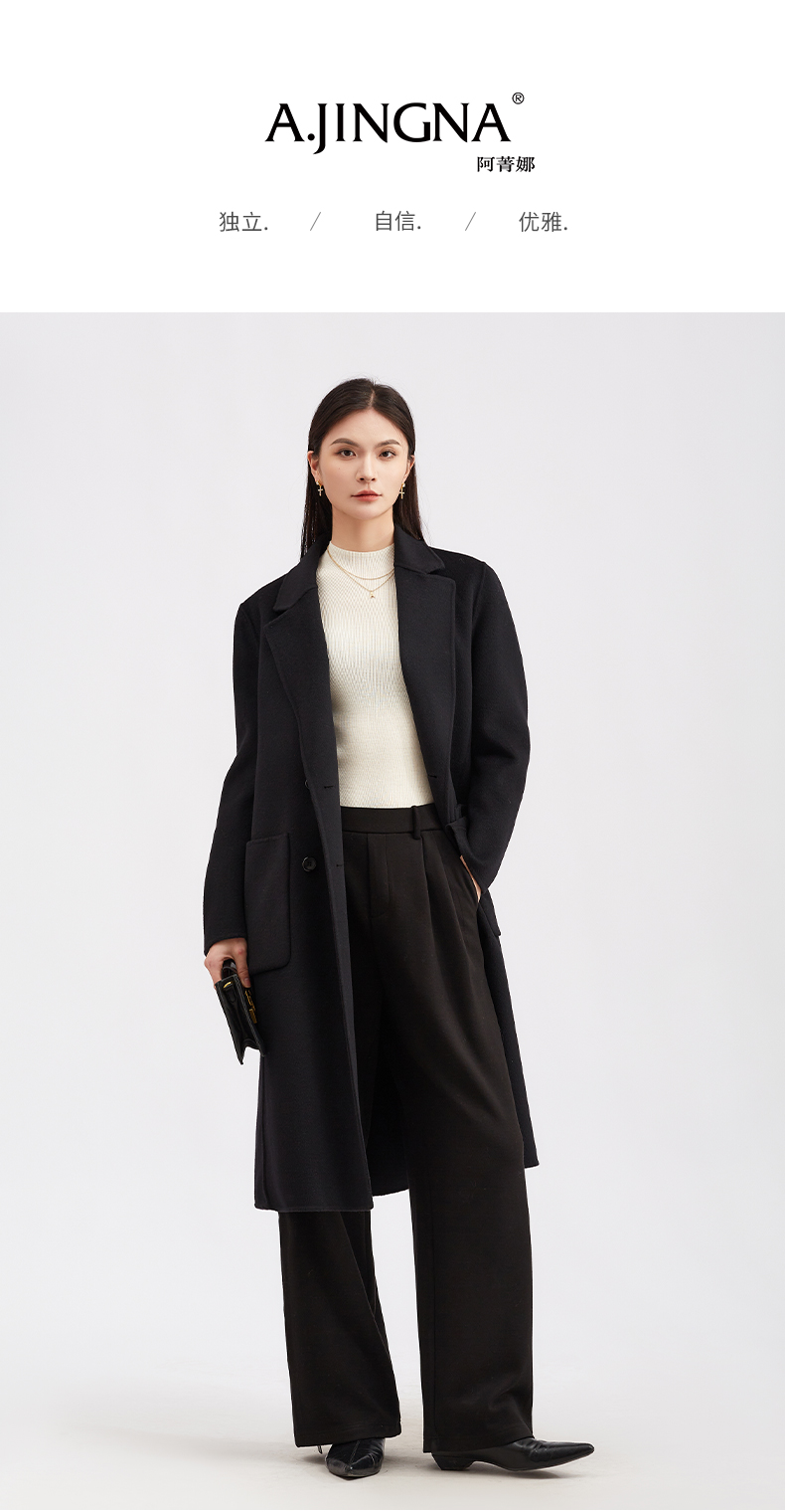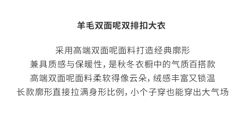 【羊毛双面呢】阿菁娜冬季新款复古感大衣双排扣西装领设计羊毛双面呢长款 F29D211026
