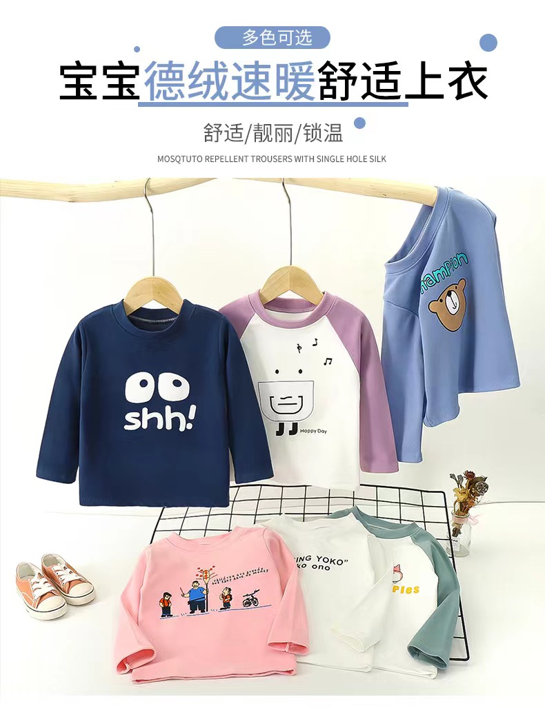 【39.9/两件】秋冬儿童A类打底衫宝宝纯棉长袖T恤男童打底上衣单件女童德绒打底衣