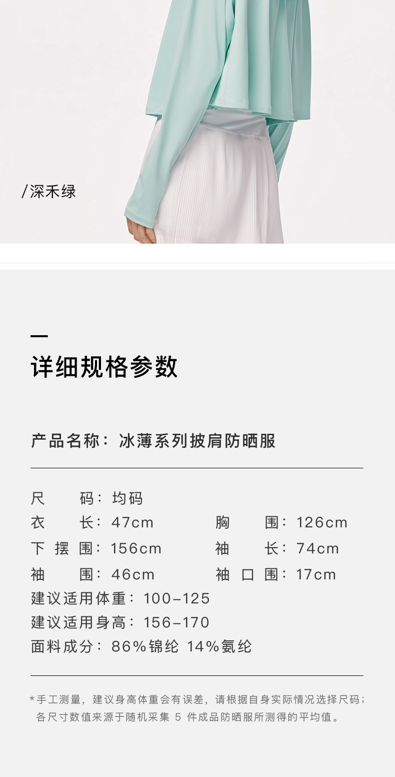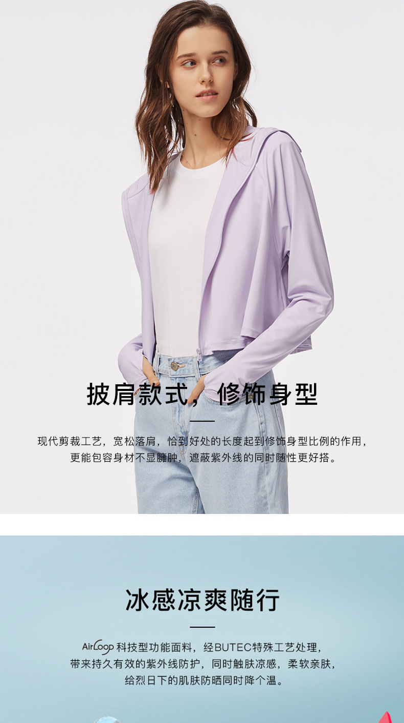 【一般贸易】蕉下披肩防晒衣经典款女夏季冰丝薄短防晒衣 均码