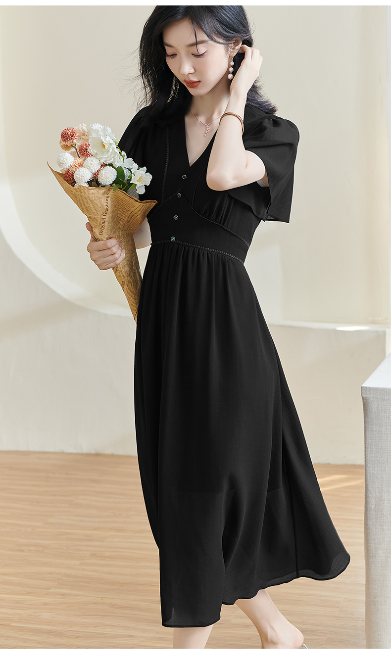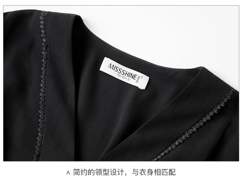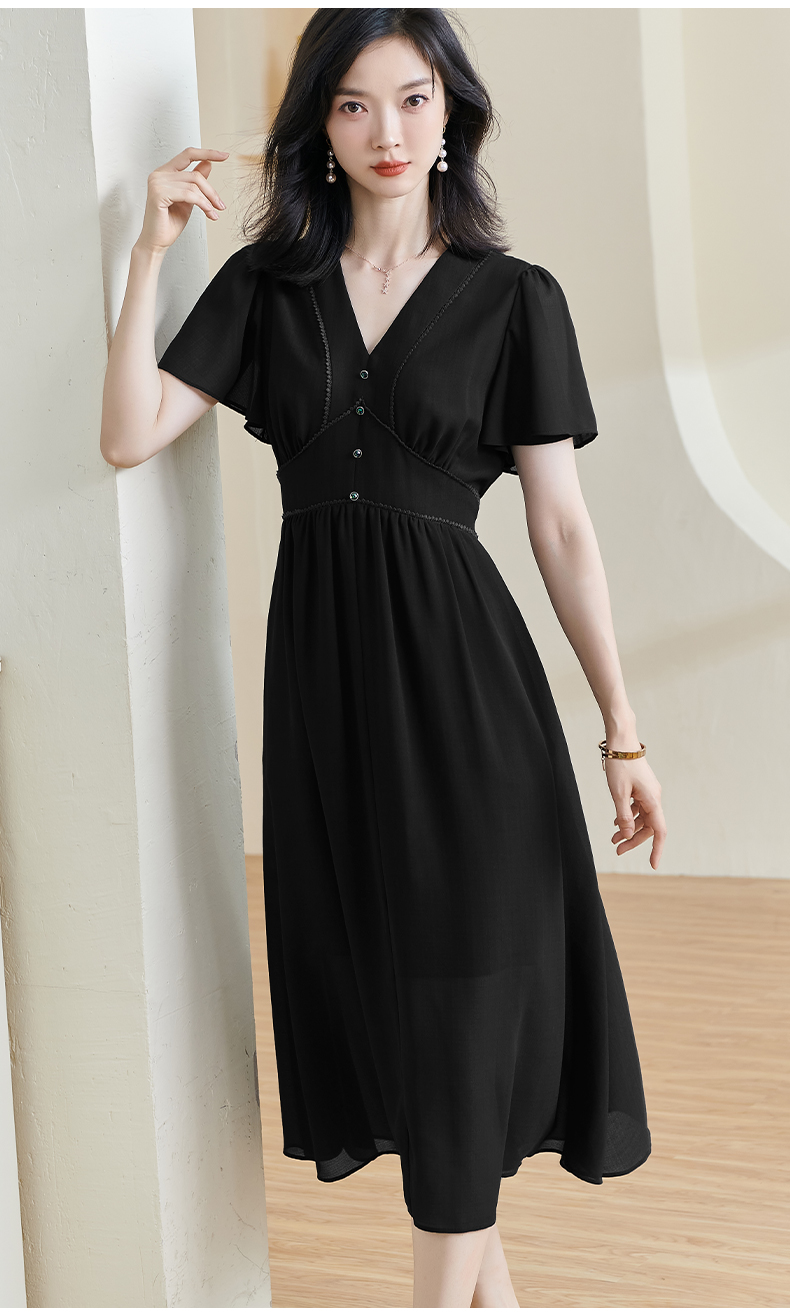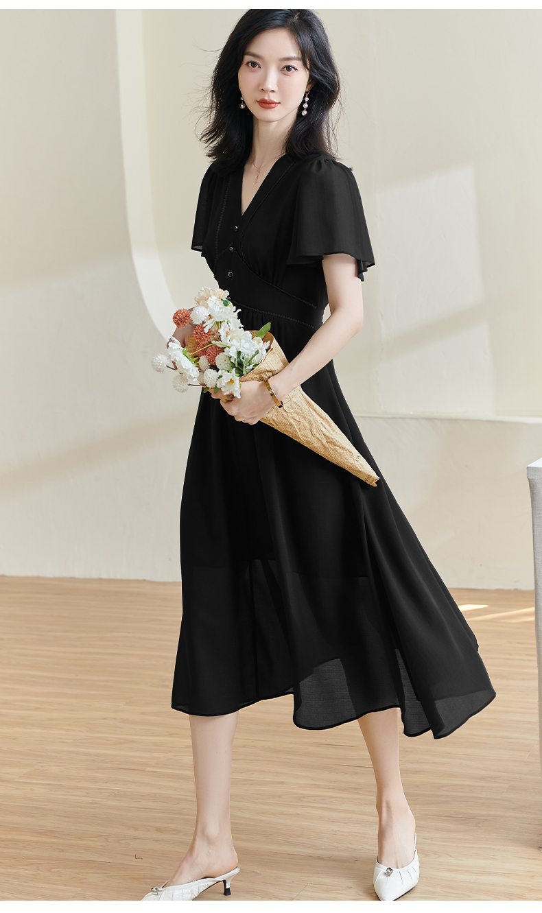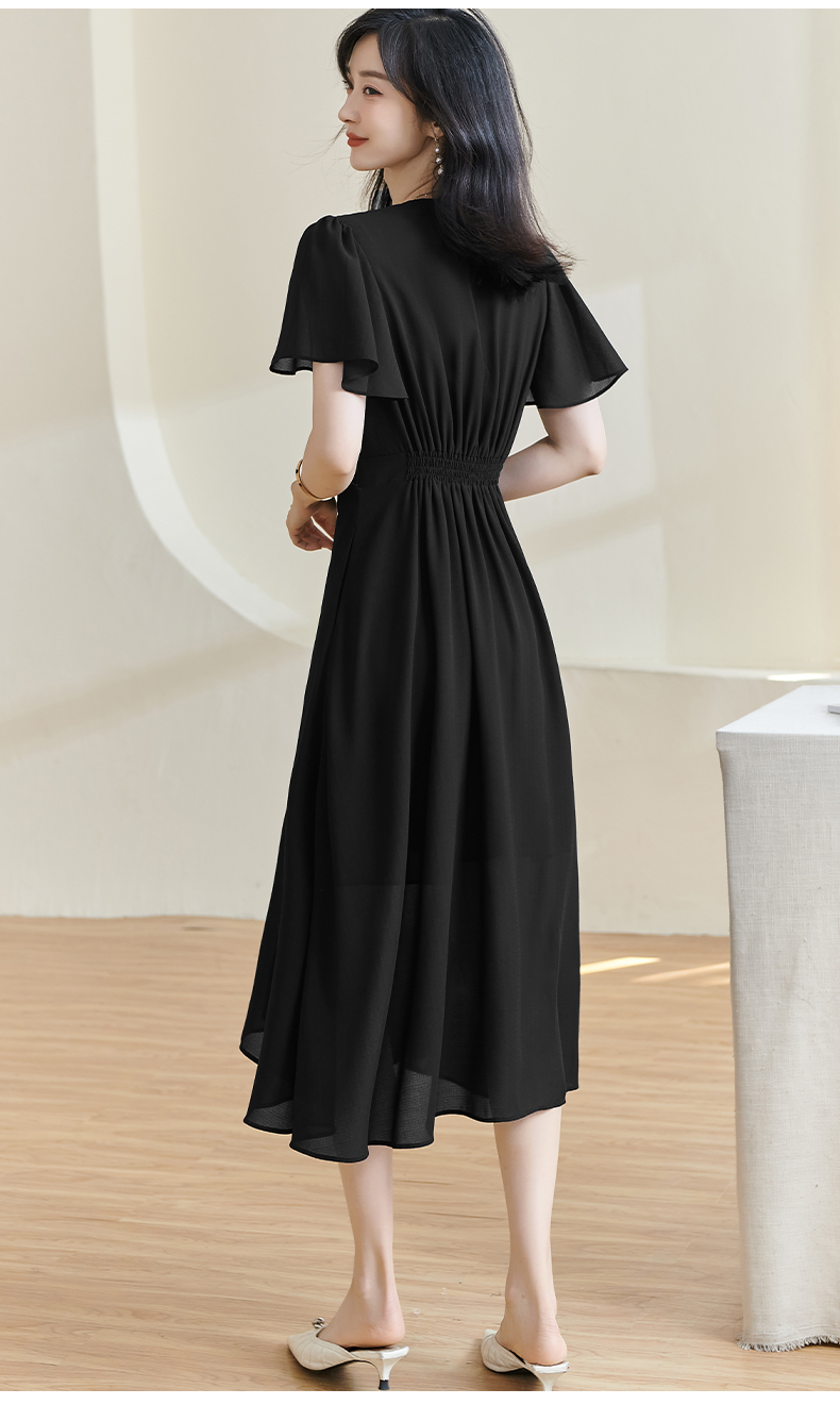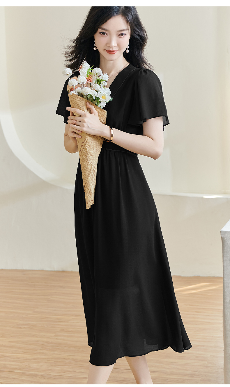 剩S 【现货】米思阳2025夏季新款气质优雅收腰显瘦黑色大摆裙飞飞袖连衣裙1689