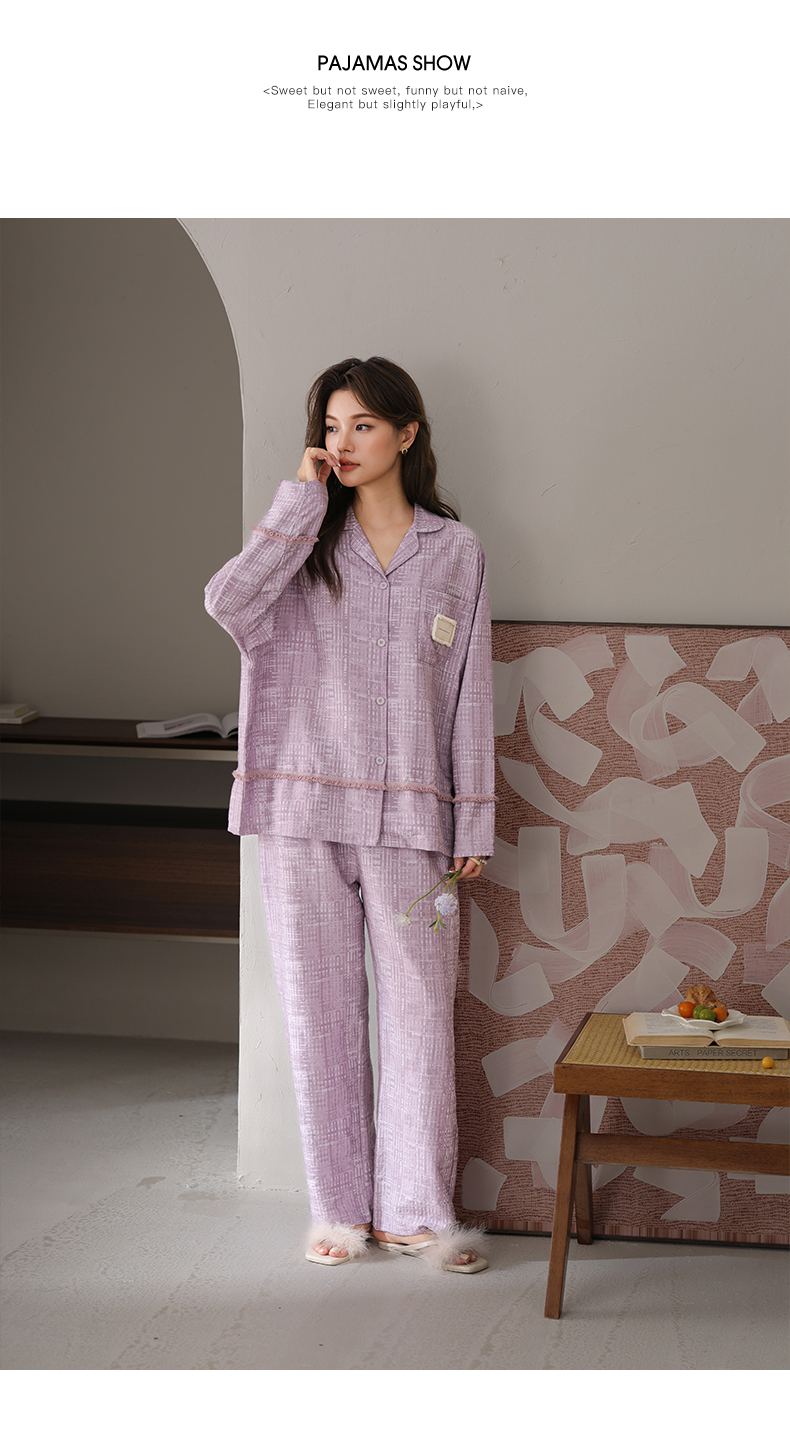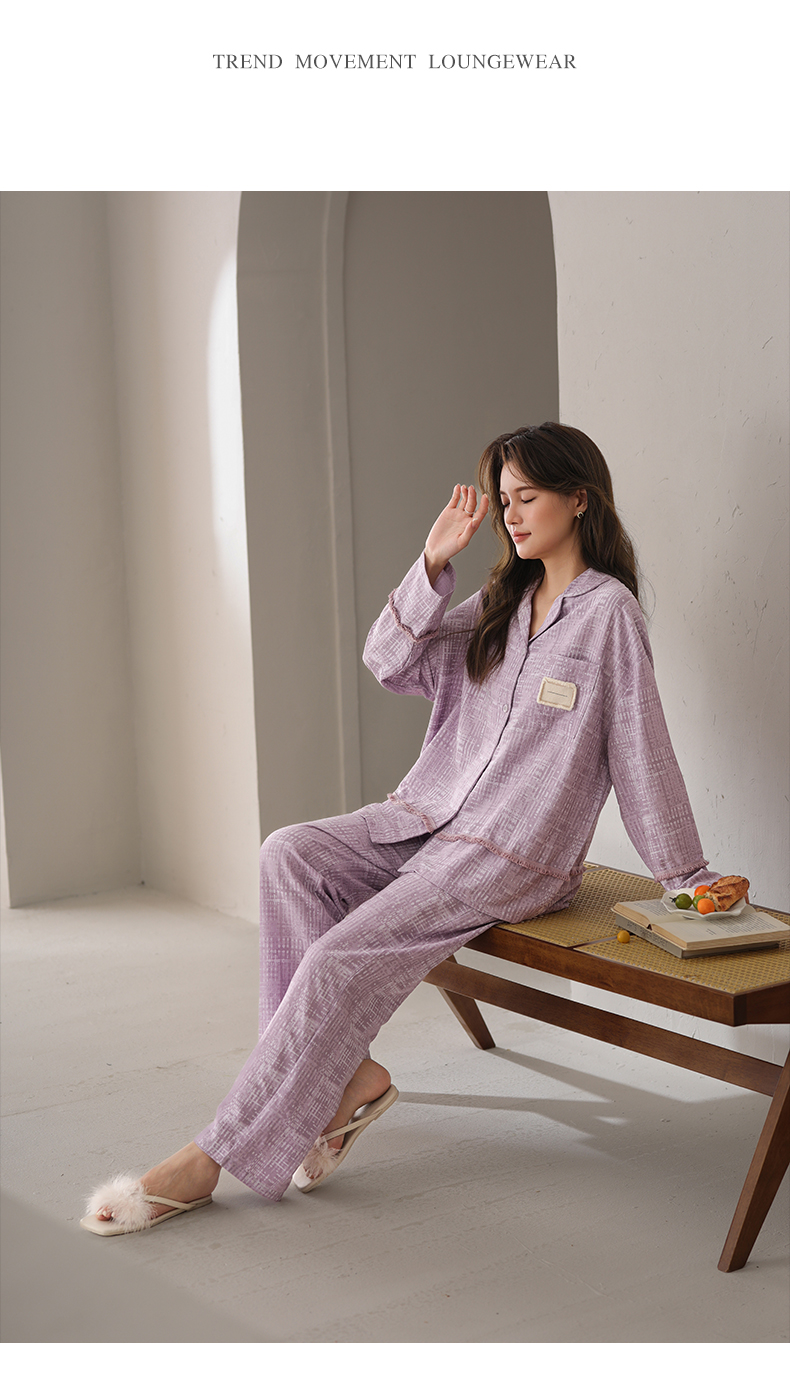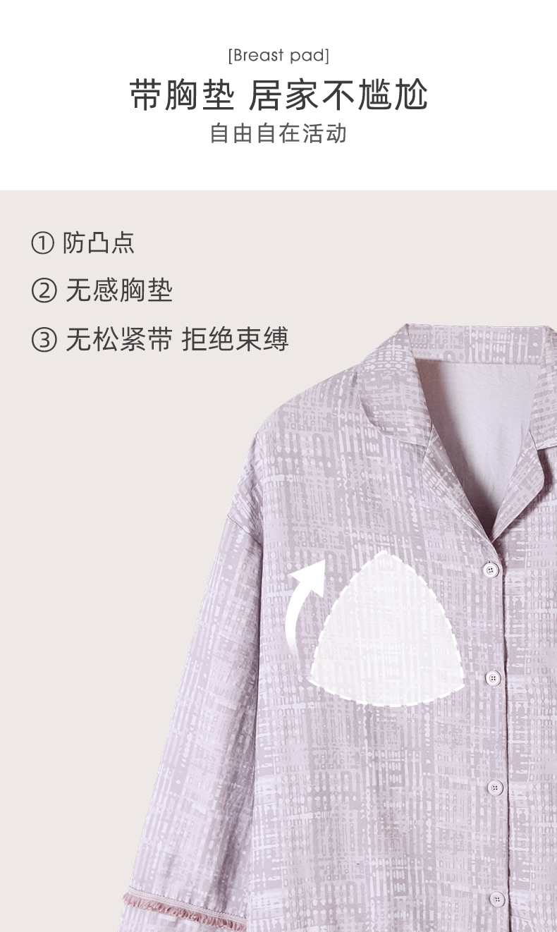 可人儿春秋季带bra泡泡绵女士长袖长裤睡衣可外出小众家居服套装