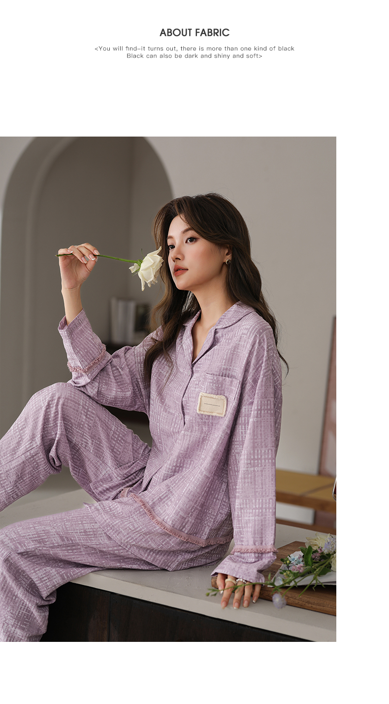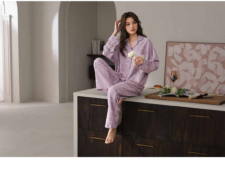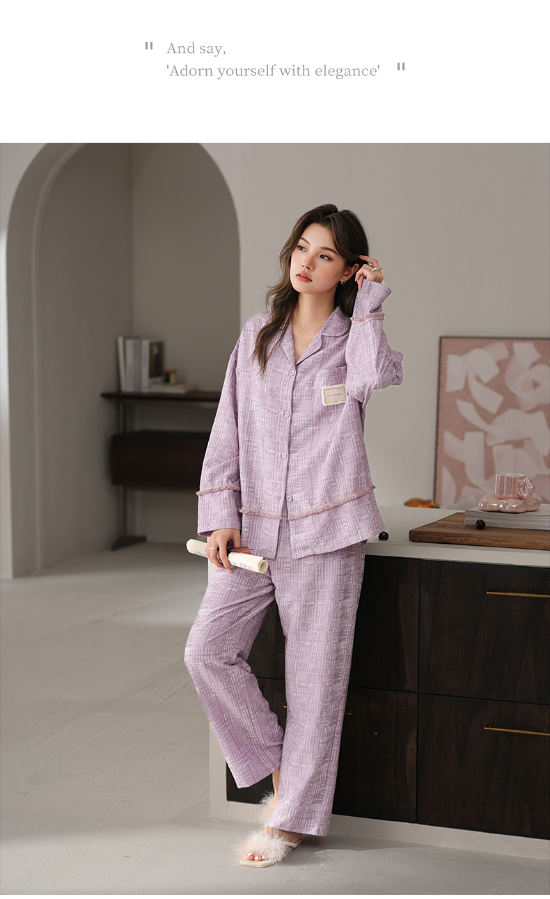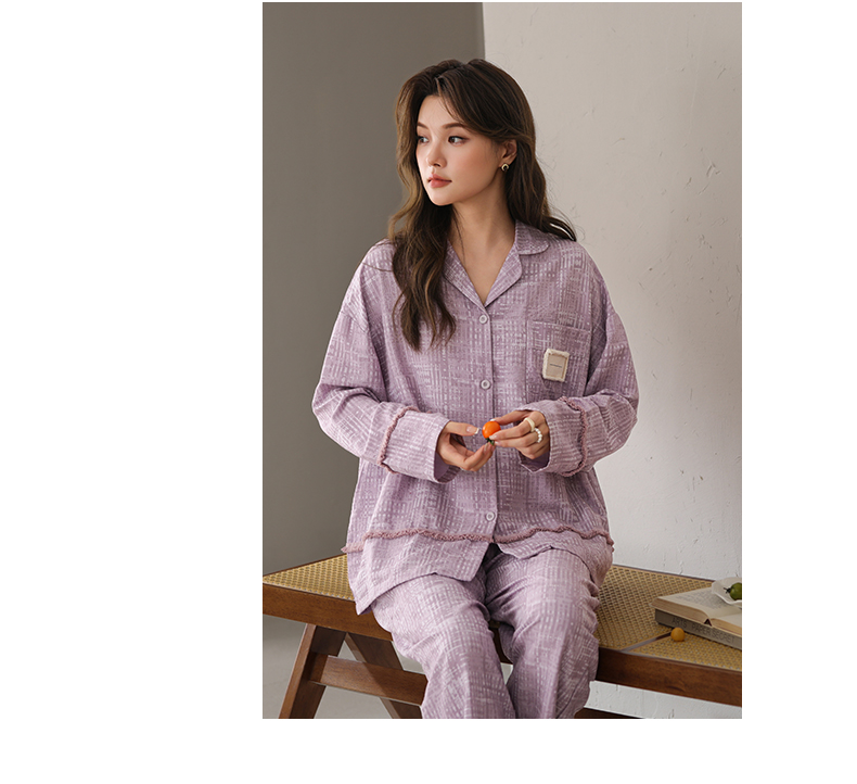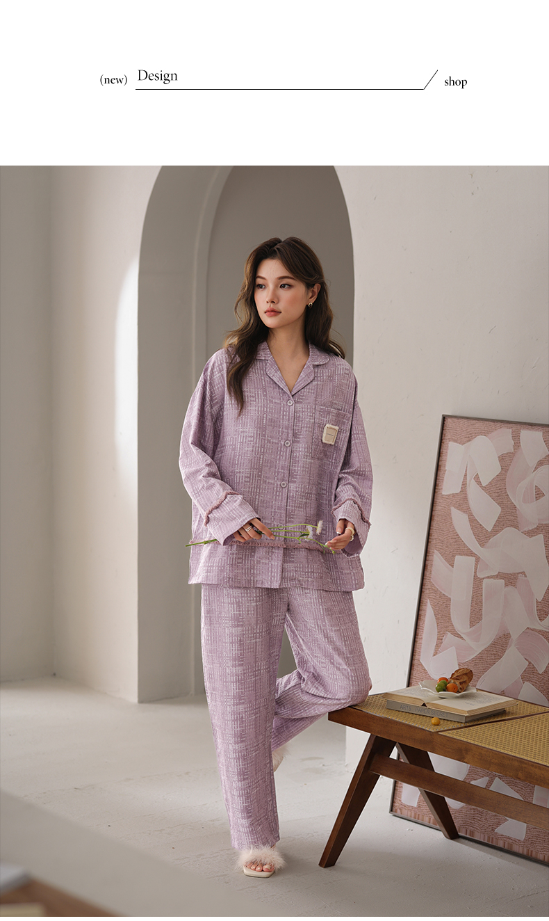 可人儿春秋季带bra泡泡绵女士长袖长裤睡衣可外出小众家居服套装