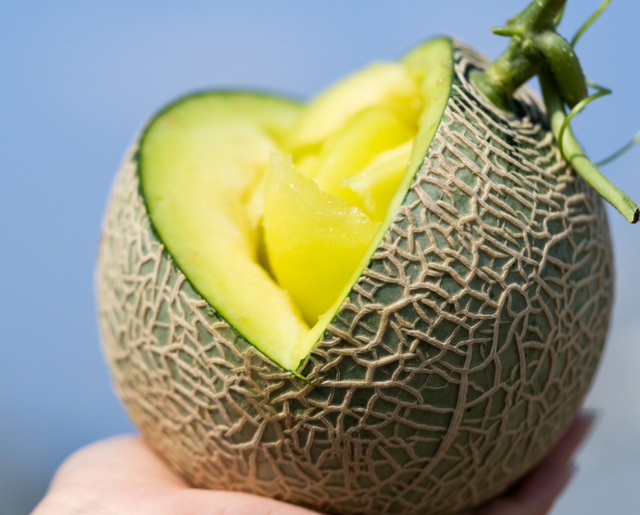 牛3玫珑瓜其实来自日本,属于网纹甜瓜中的贵族品种。日本专家在中国,历时三年反复栽培。才将美味根植中国
