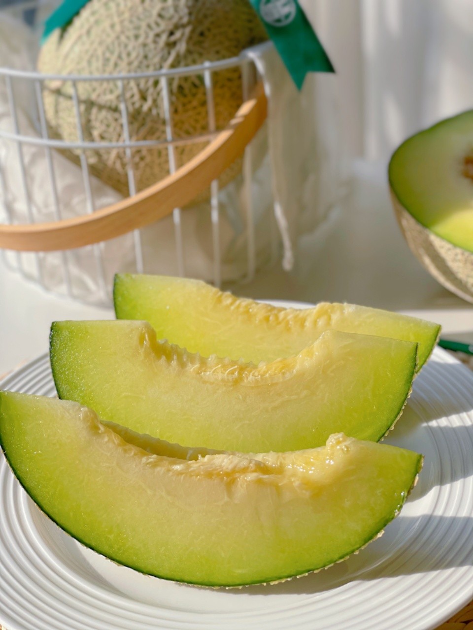 【口感】刚采摘下来的蜜瓜比较脆硬,口感偏脆甜爽口,放到2-3天后更软糯一些,更香甜。