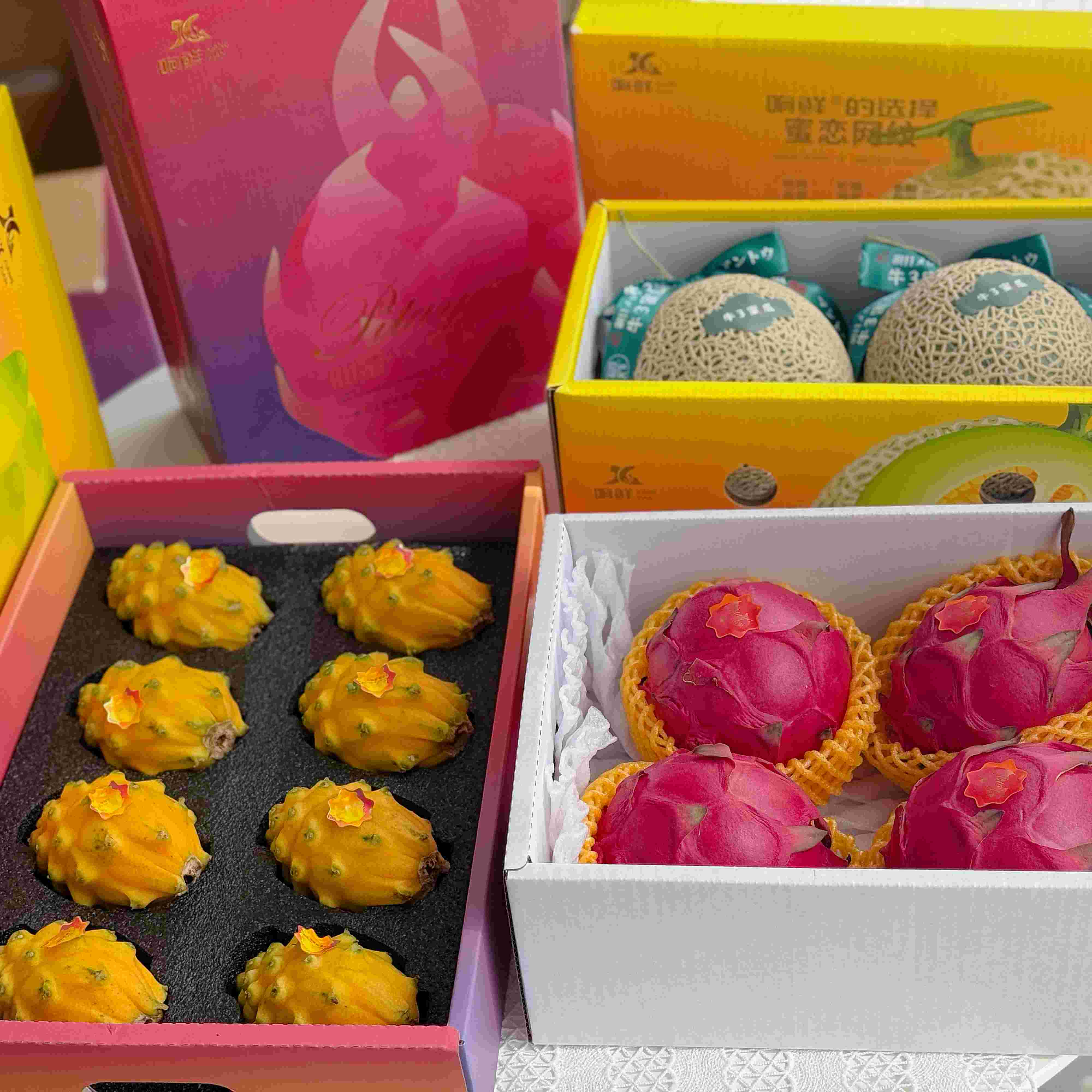 燕窝果礼盒装大果约3.5斤,牛3蜜瓜6斤礼盒装2枚,火龙果5斤特大果