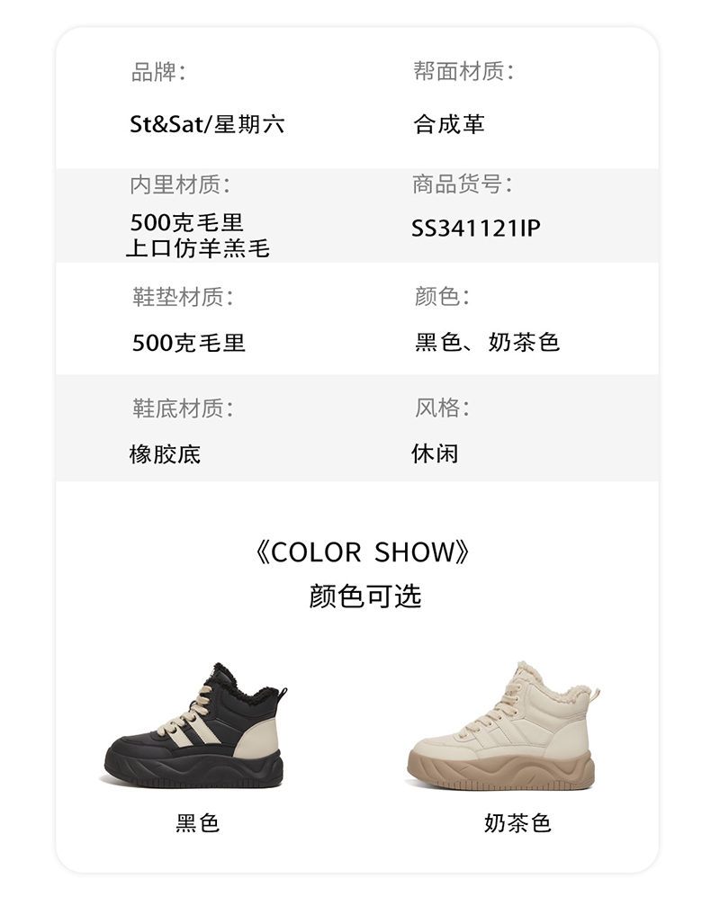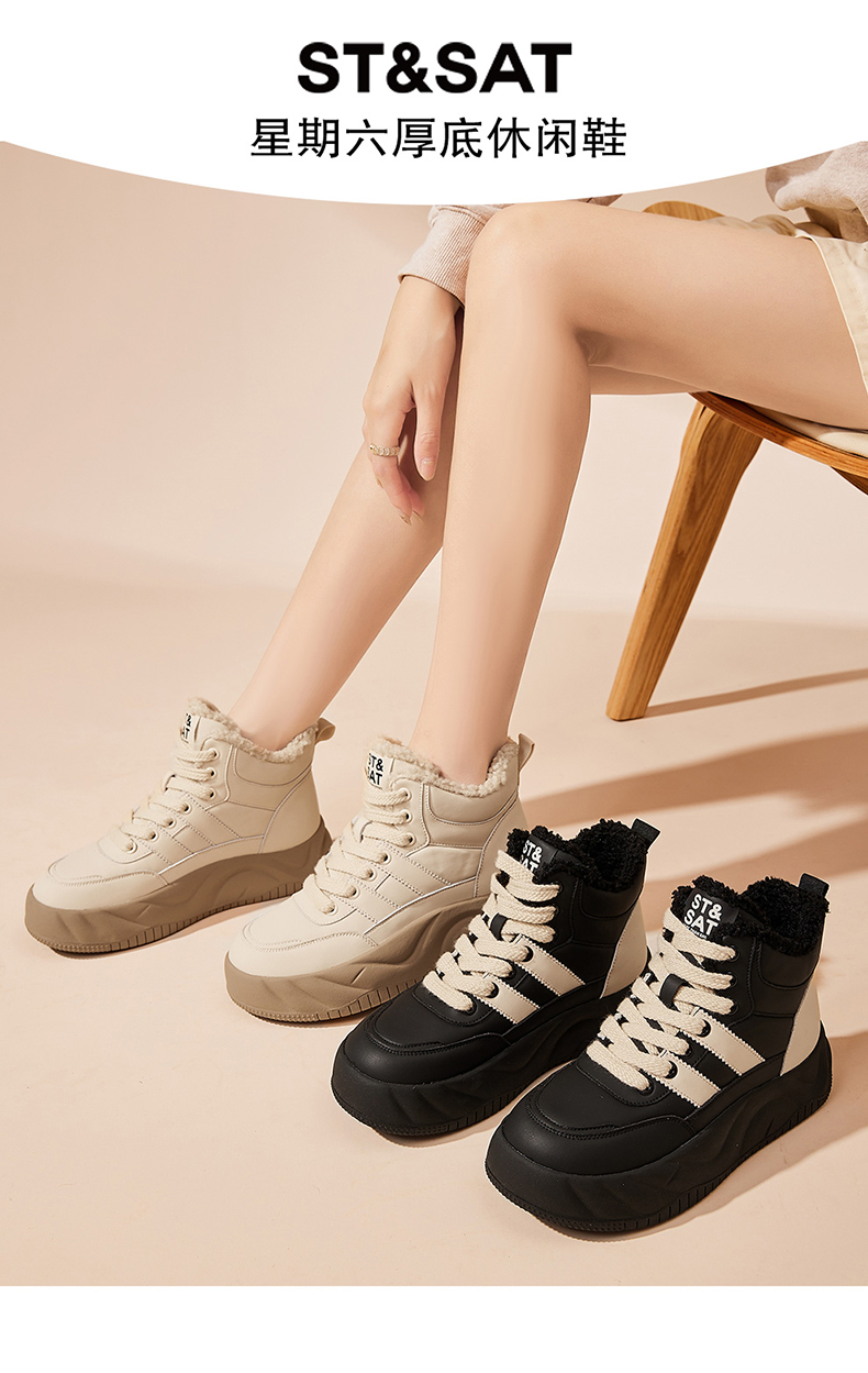星期六经典拼色保暖百搭厚底板鞋SS341121IP