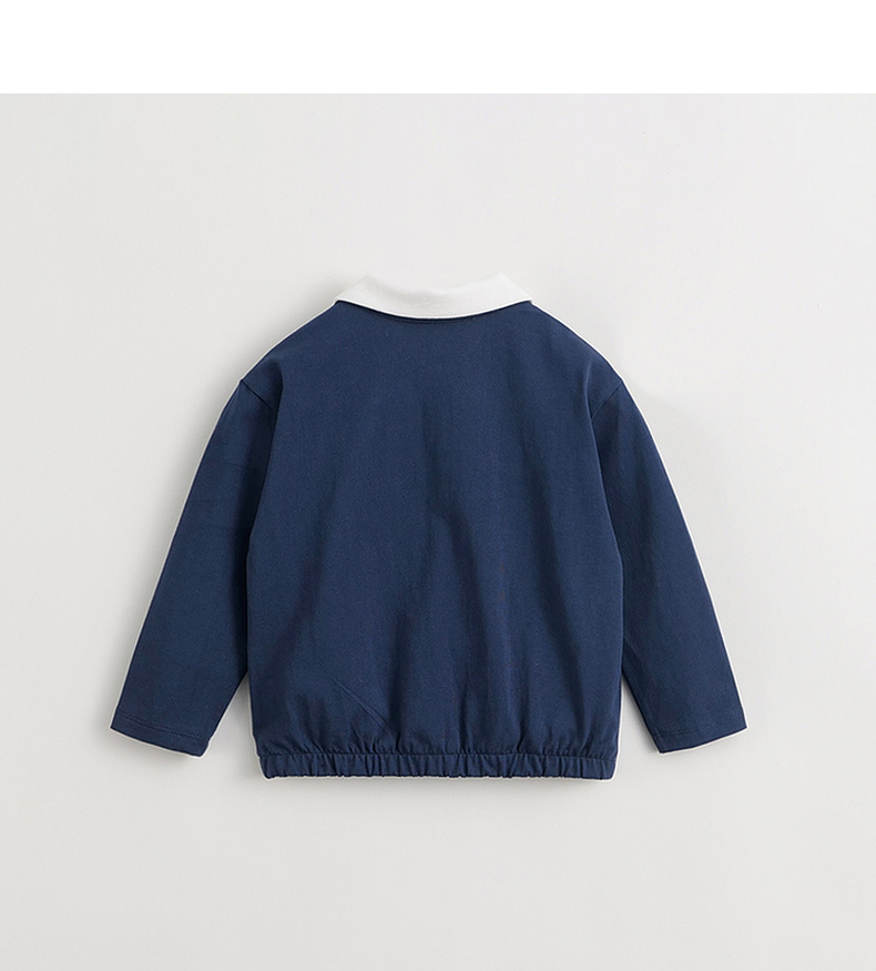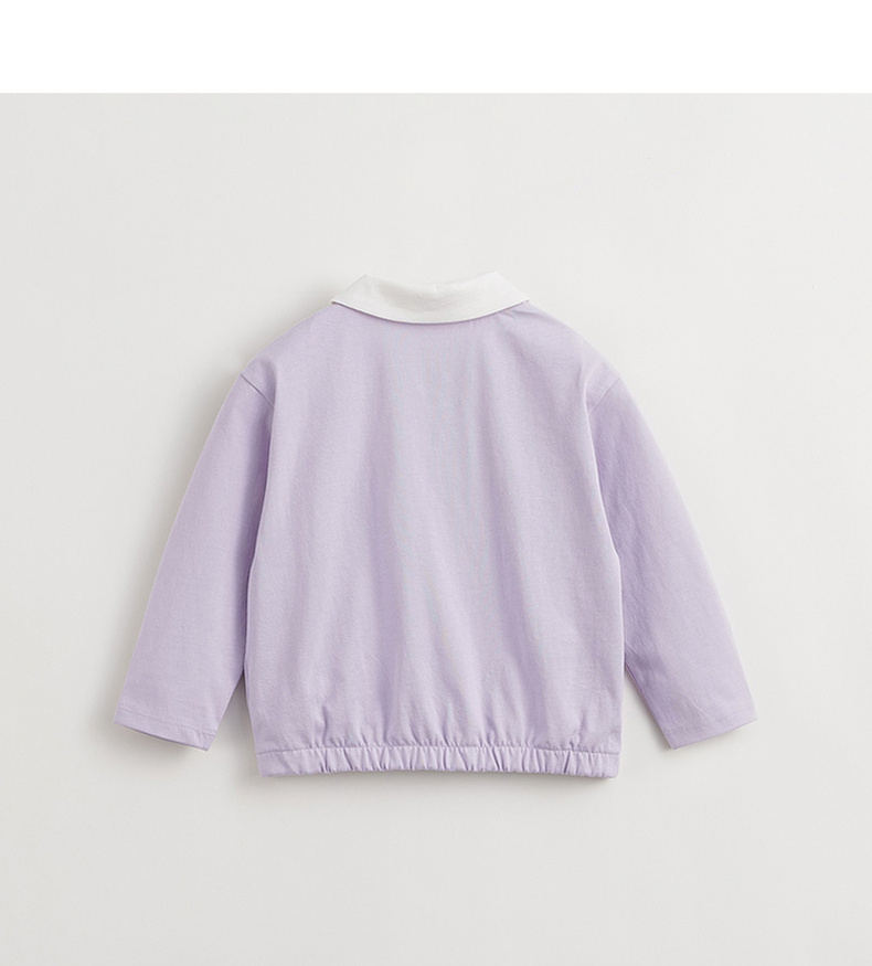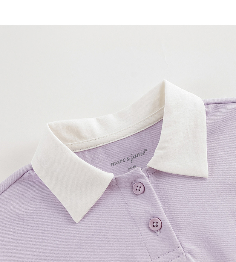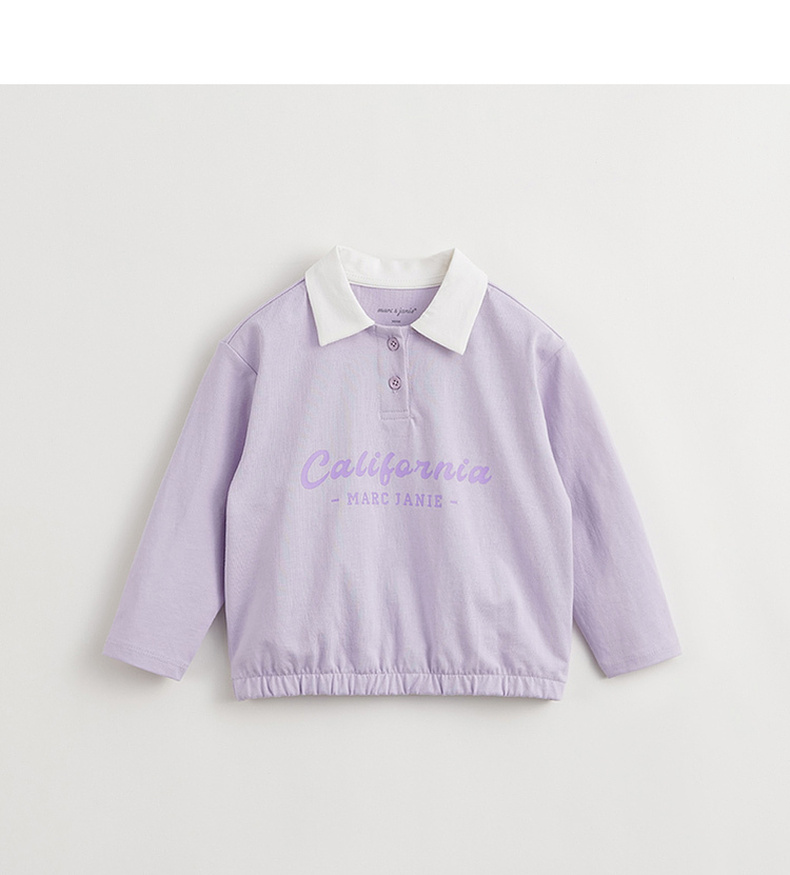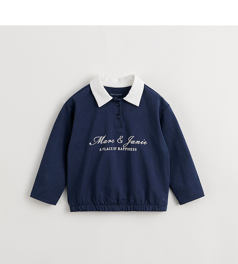 马克珍妮女童学院风polo领T恤 儿童纯棉撞色长袖上衣春款240235
