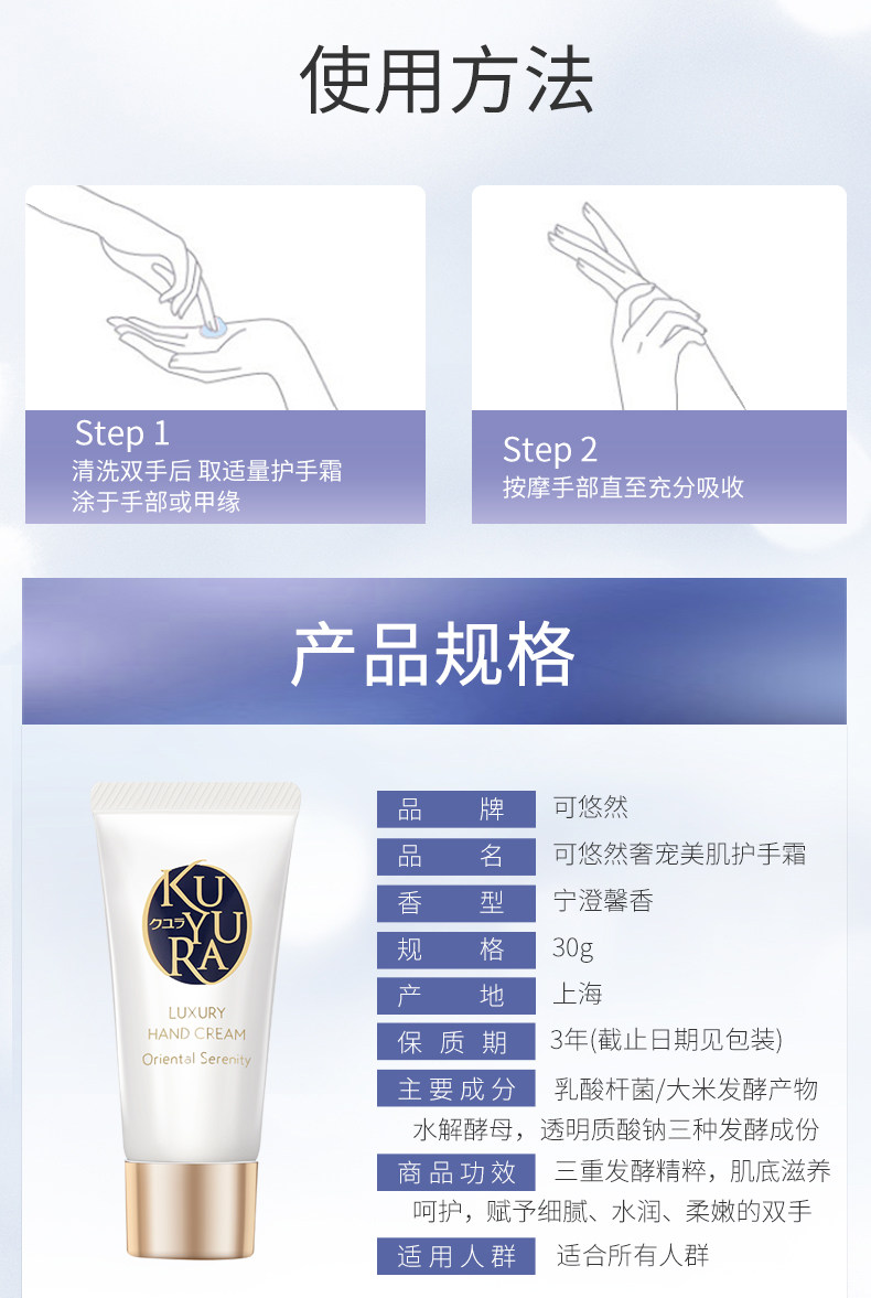 可悠然奢宠美肌护手霜30g男女滋润保湿清爽四季用