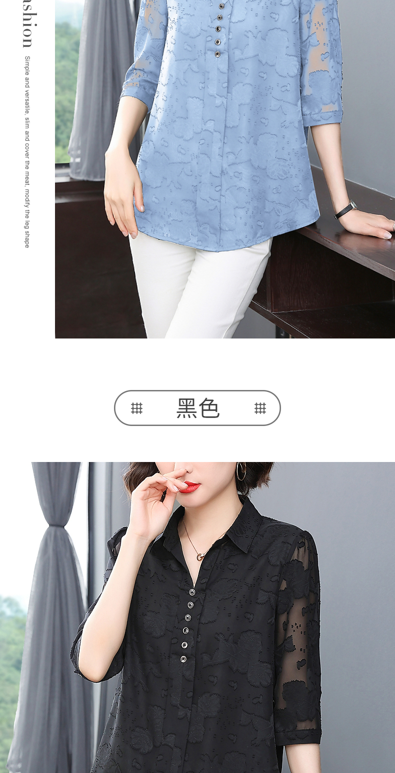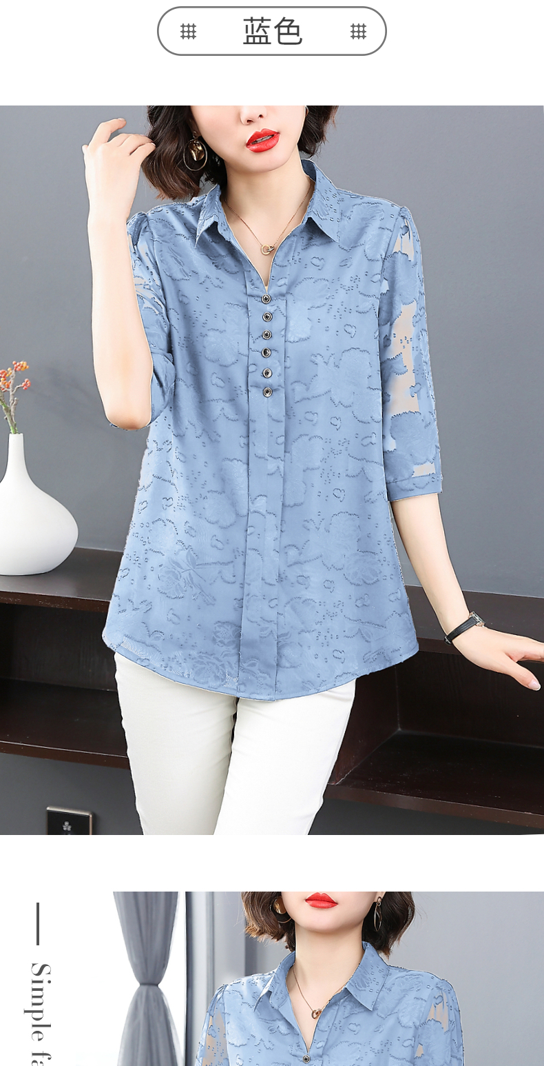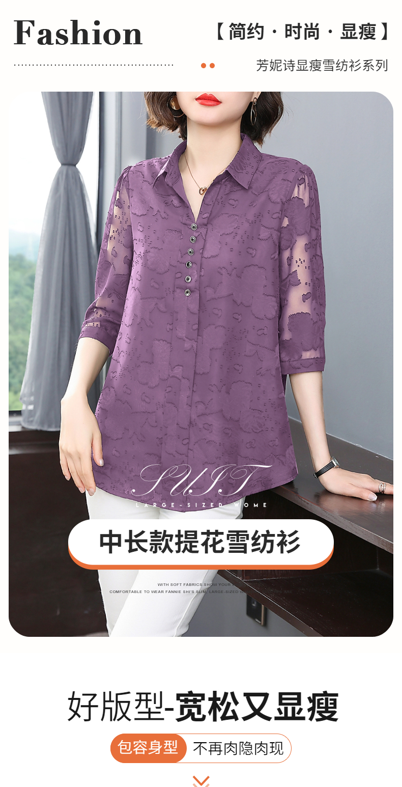 中年女雪纺衫夏季大码女装宽松遮肚子上衣新款妈妈中袖七分袖衬衫