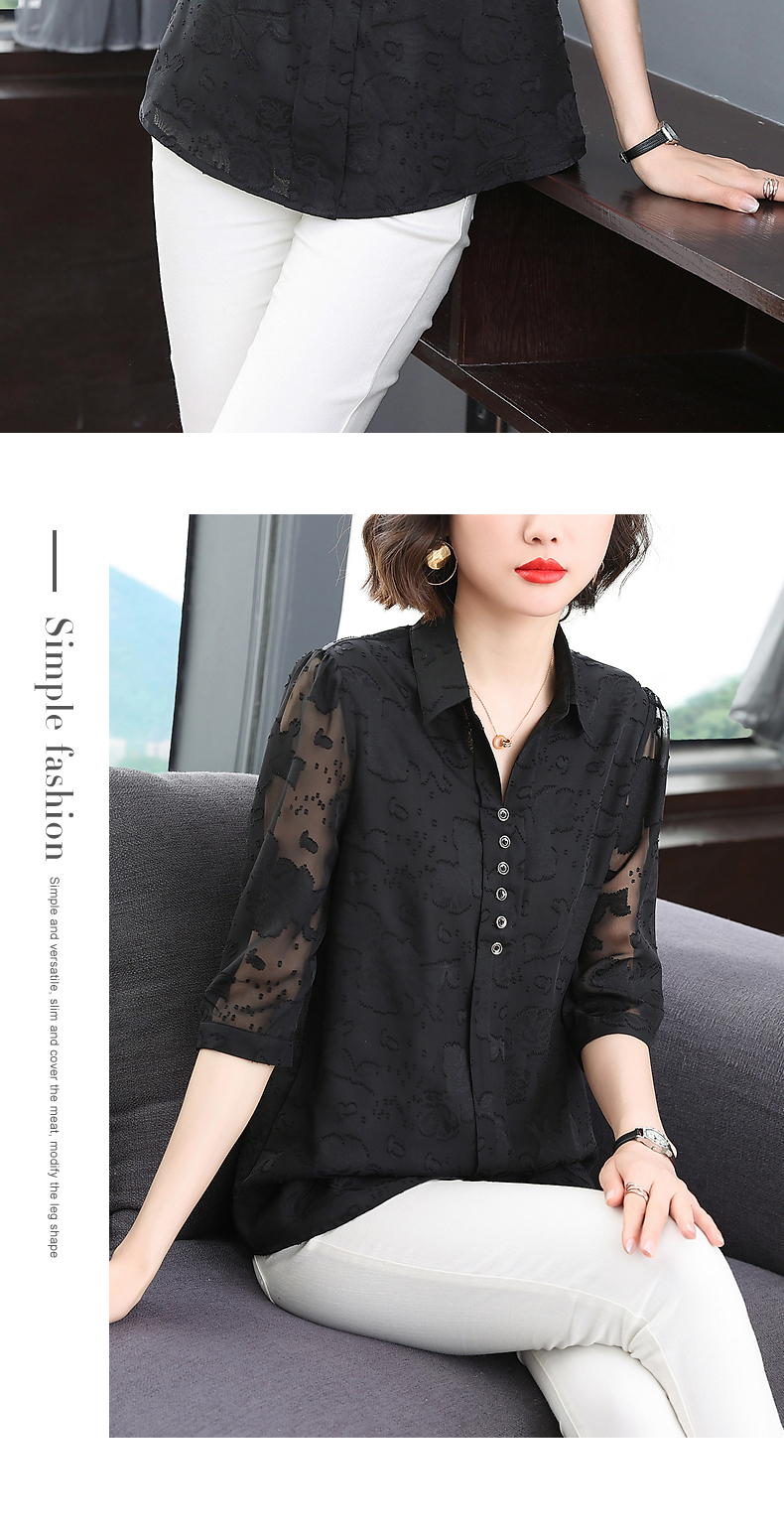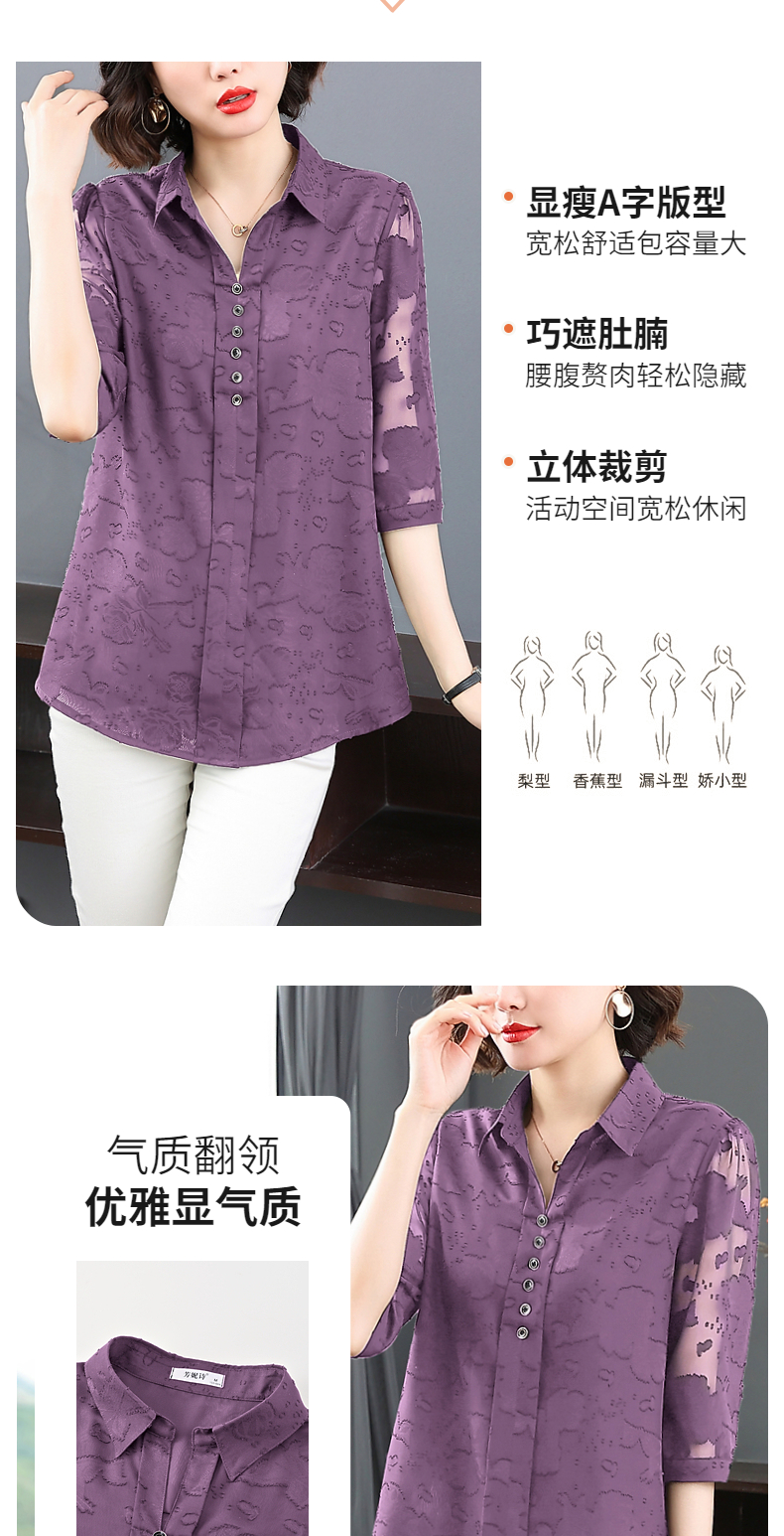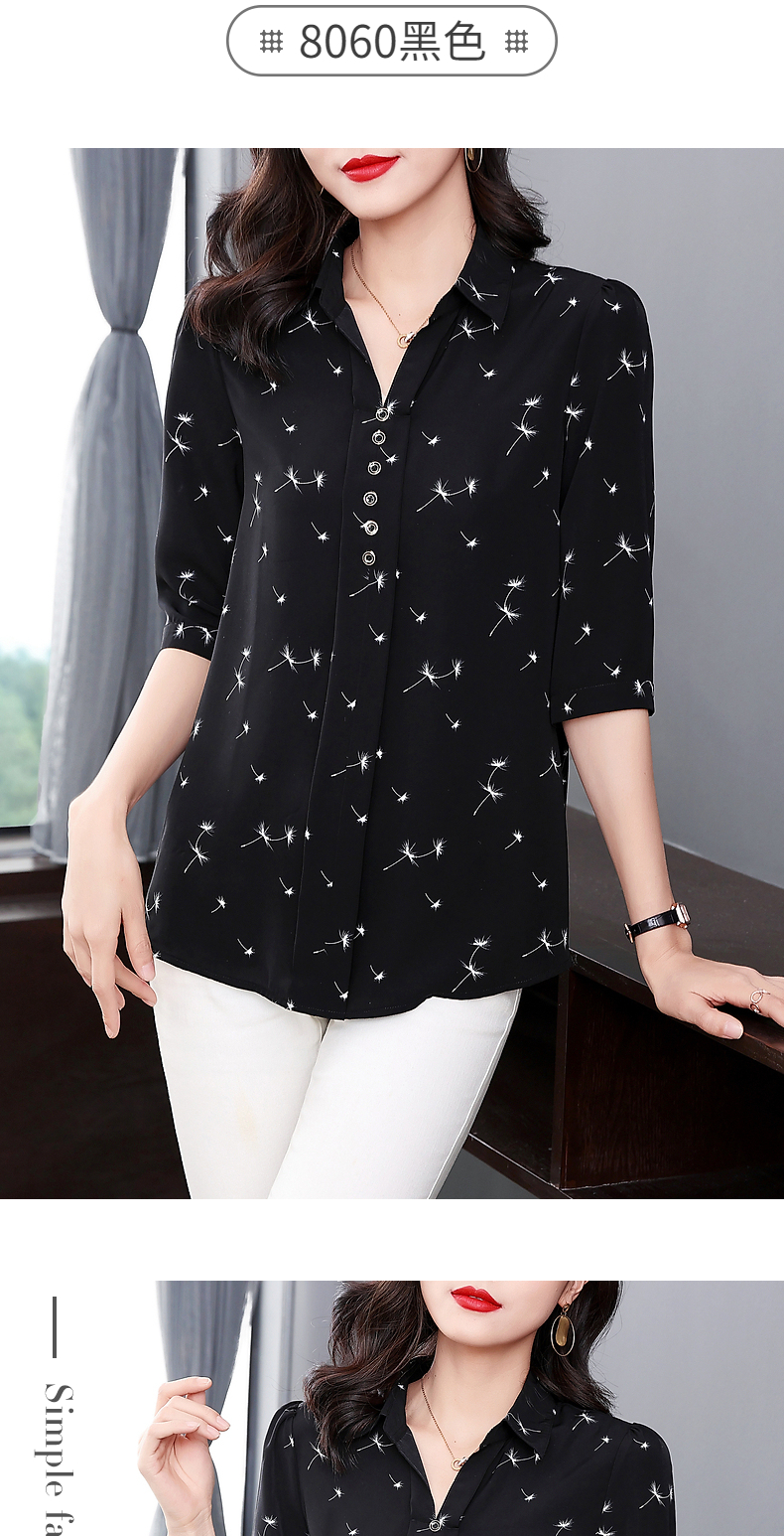 中年女雪纺衫夏季大码女装宽松遮肚子上衣新款妈妈中袖七分袖衬衫