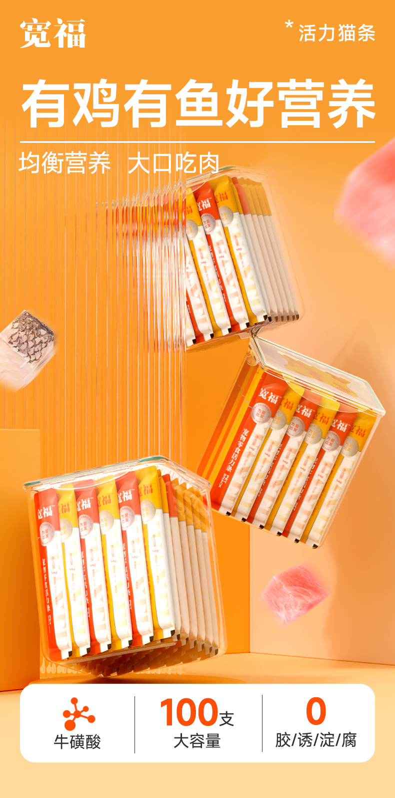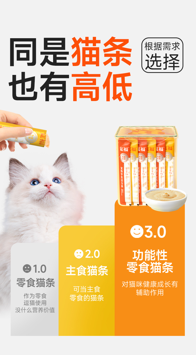 【限购2单】【19.9元3盒鳕鱼猫条】宽福 活力猫条 猫咪零食猫条 助于增肥发腮 鲜鸡肉更营养 质地细腻更易猫咪舔食