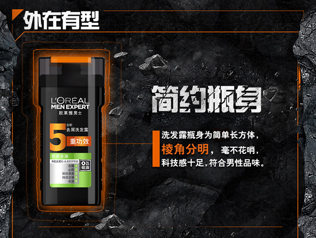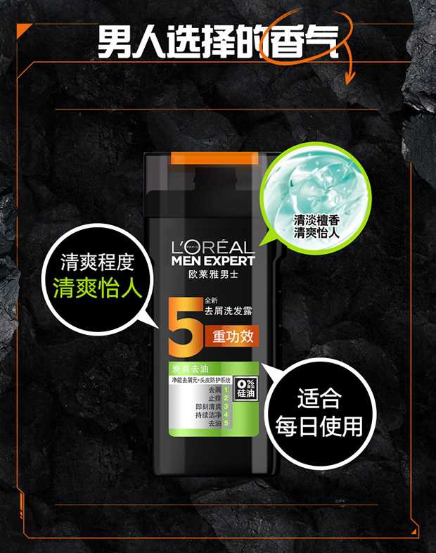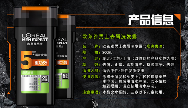 欧莱雅 (LOREAL) 男士去屑洗发露(炭爽去油)200ml(新老包装随机发货)