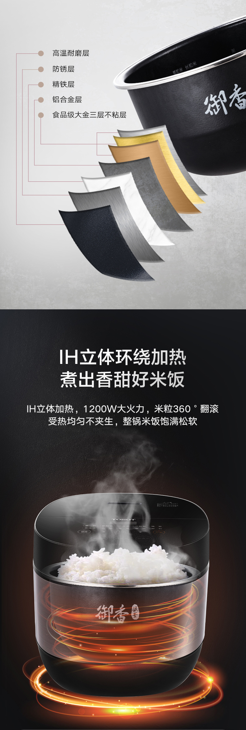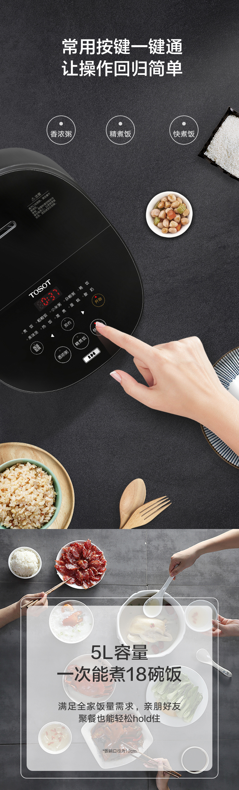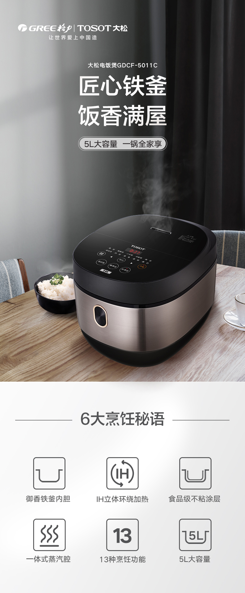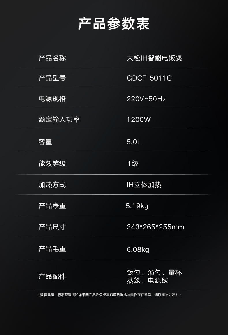 大松IH智能电饭煲 5L 匠心铁釜 米饭香甜 GDCF-5011C 黑色
