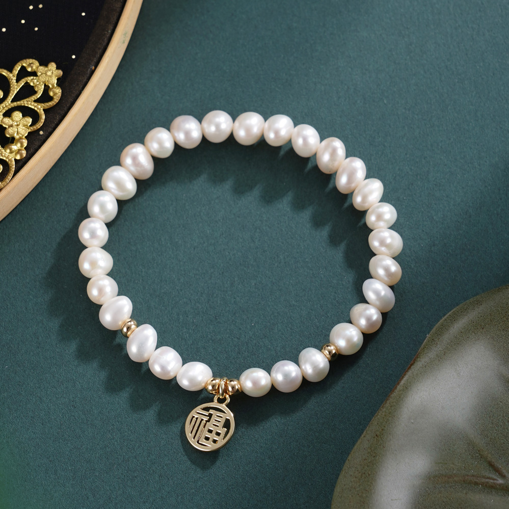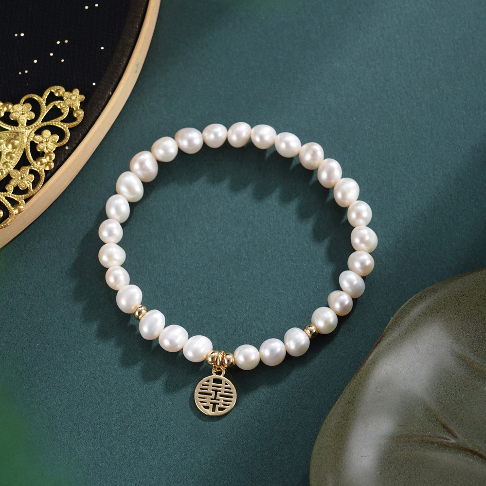 子佩集【福喜相伴】珍珠惜王妃手链【ZZSL019】5.5*7mm珠镀金福喜多规格2601