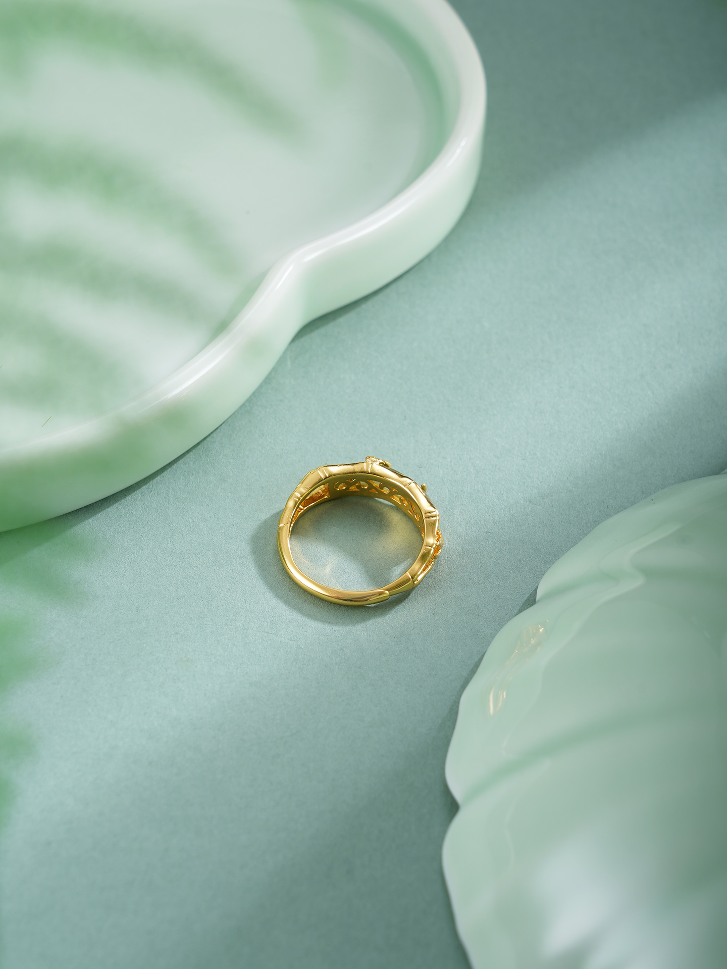 【寓意】:一款承载了满满福气的戒指。镀金线条赋予戒指华贵气息。竹叶元素点缀,蕴含福气满满的“竹福”。