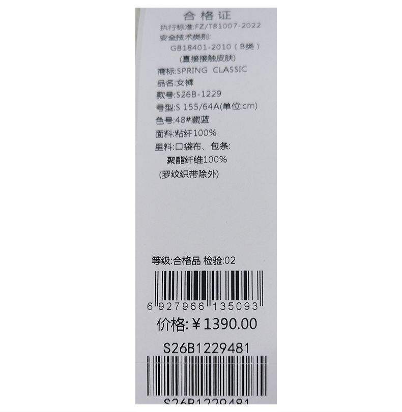 西贝伦长裤S26B1229