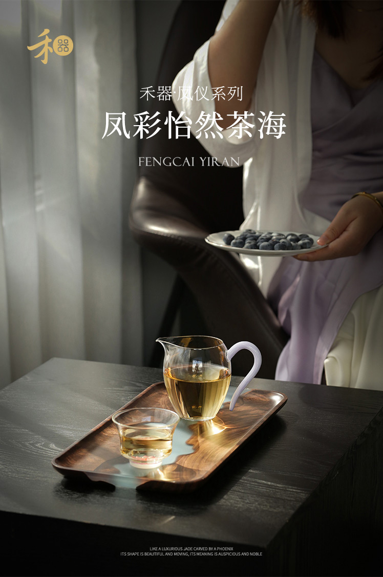禾器凤仪·怡然茶海 手工公道杯高档耐热防烫玻璃分茶器具碧彩栗彩