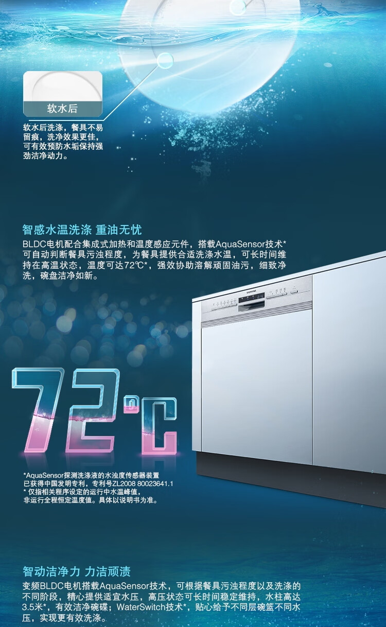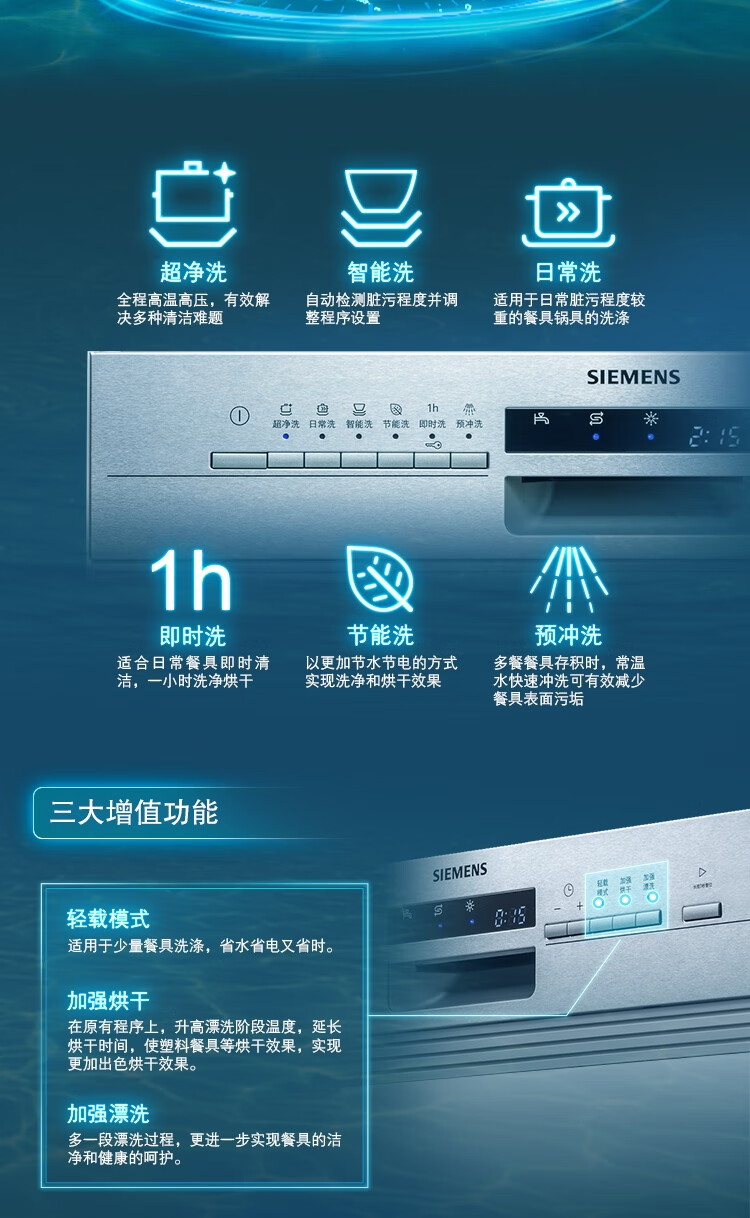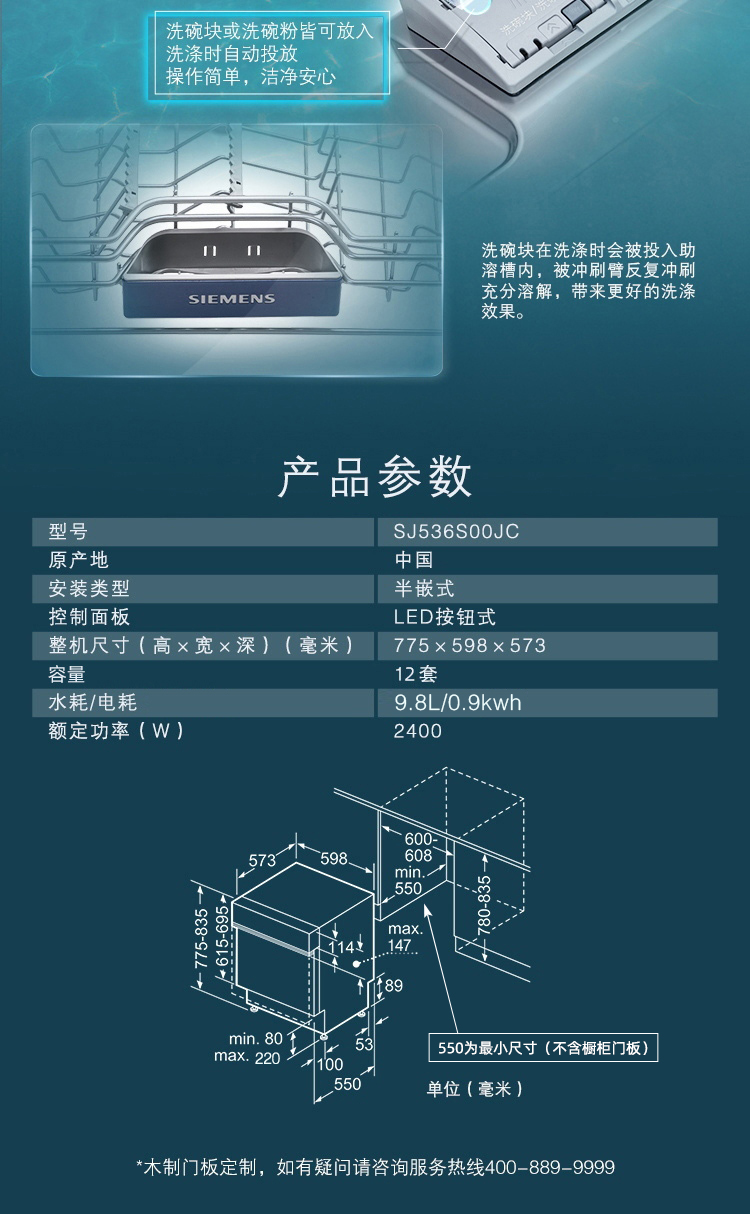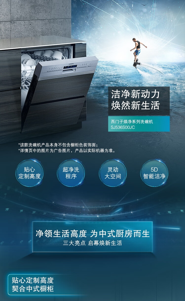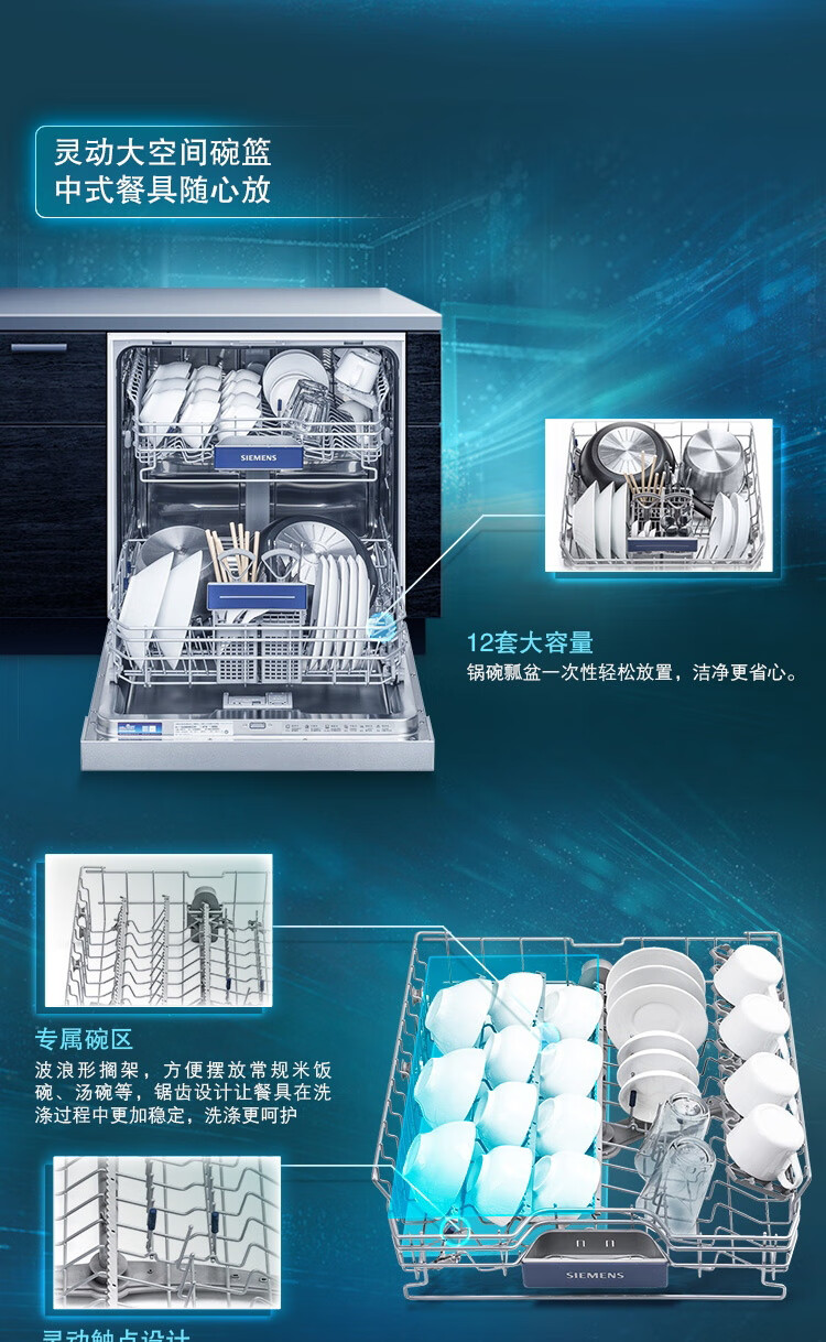 西门子(SIEMENS)SJ536S00JC 嵌入式12套家用洗碗机 5D智能洁净 可预约定时 智能烘干 不带面板