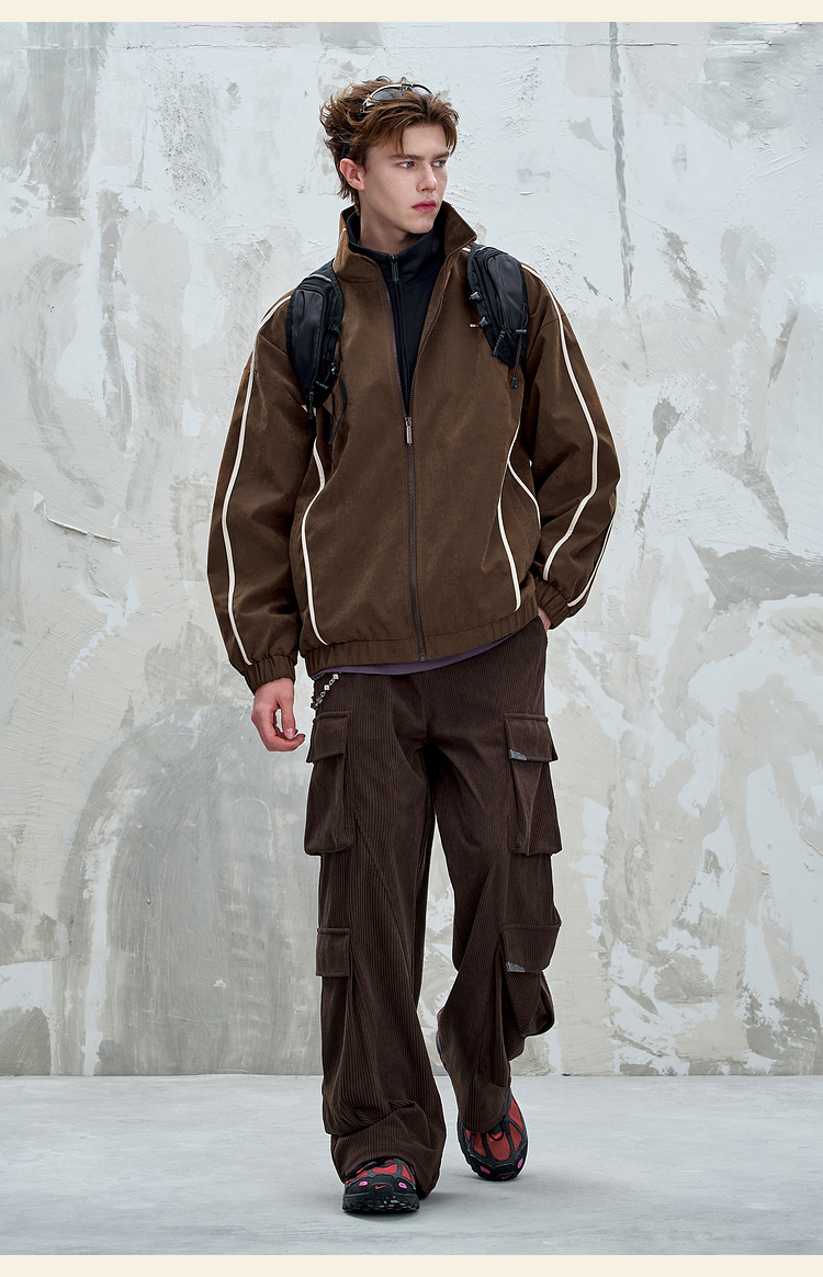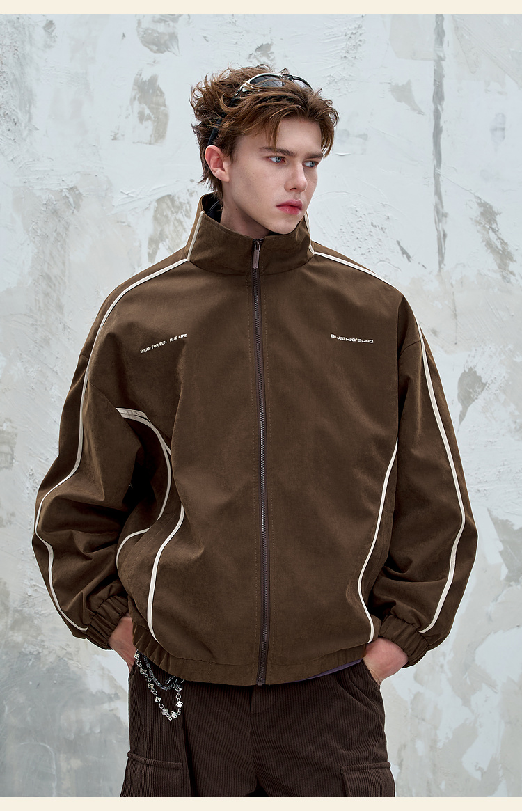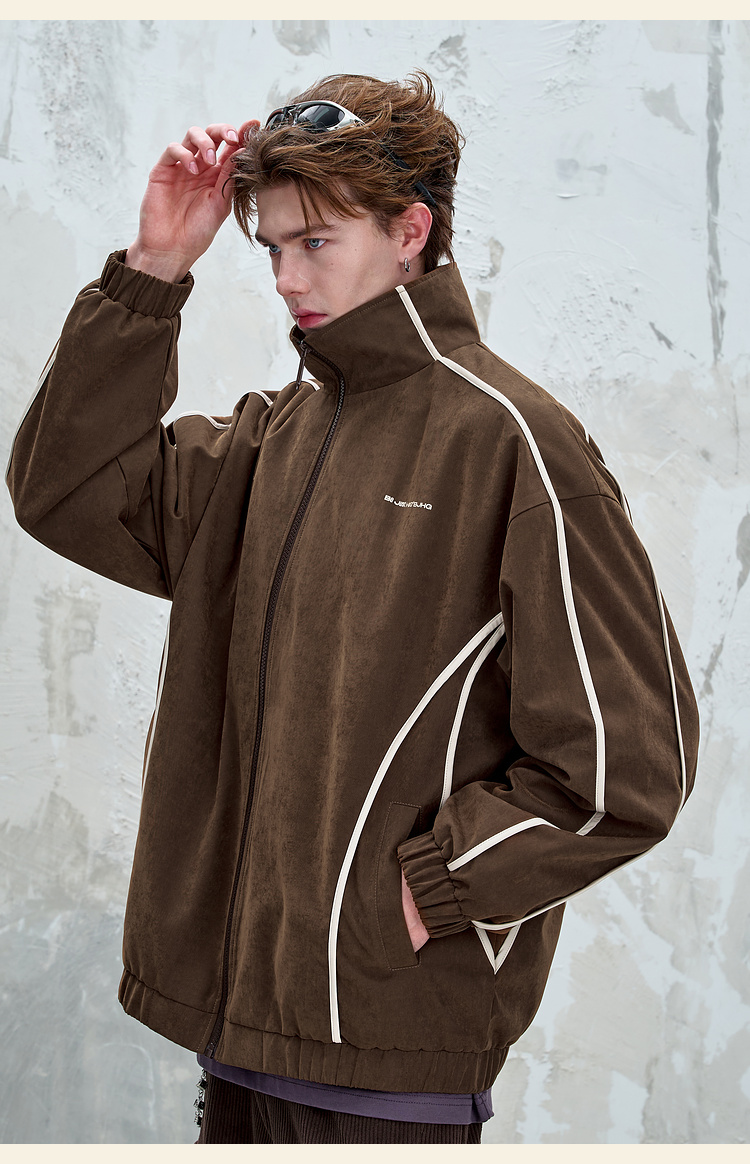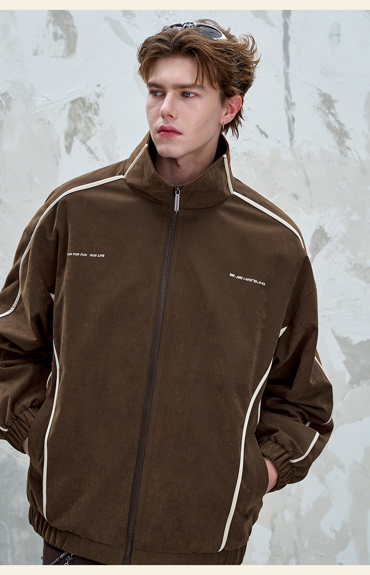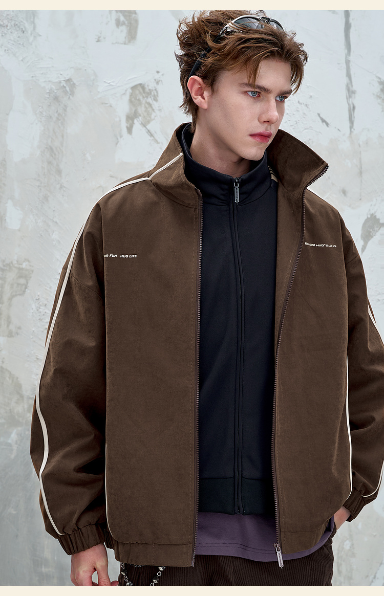 BJHG不计后果复古运动外套男女款秋季美式立领夹克柔丝绒休闲外套