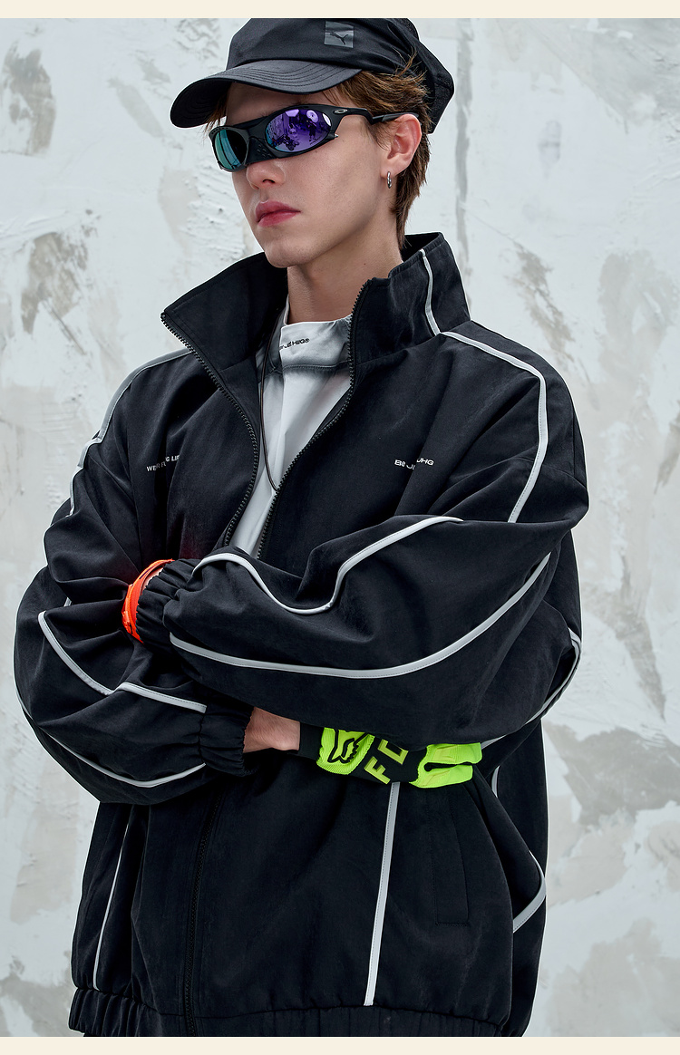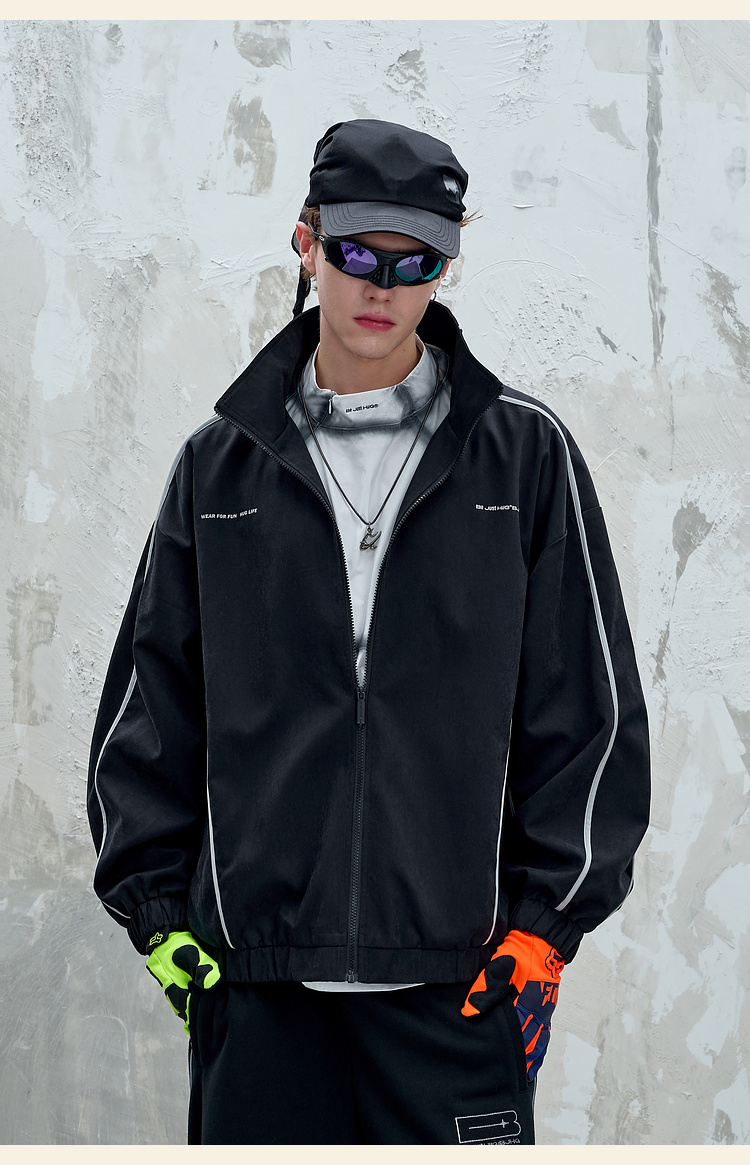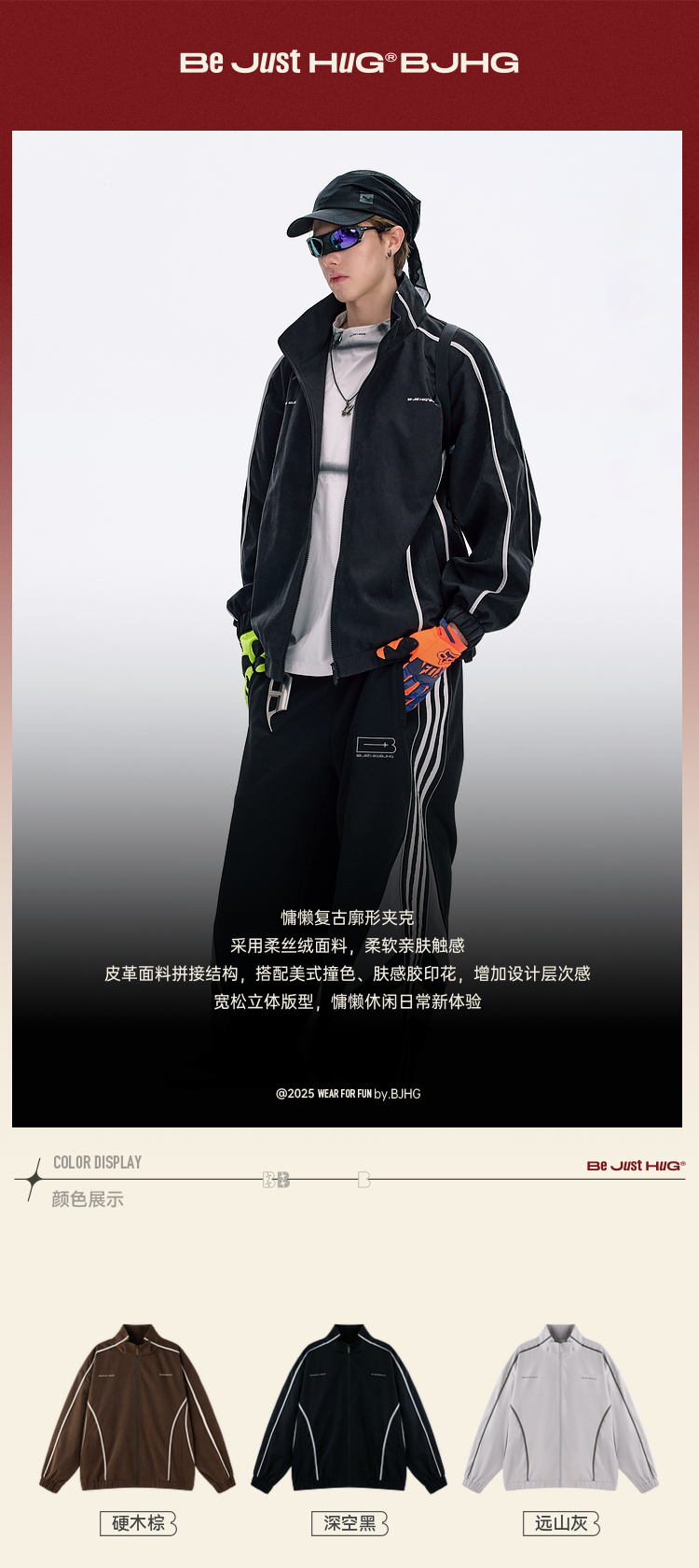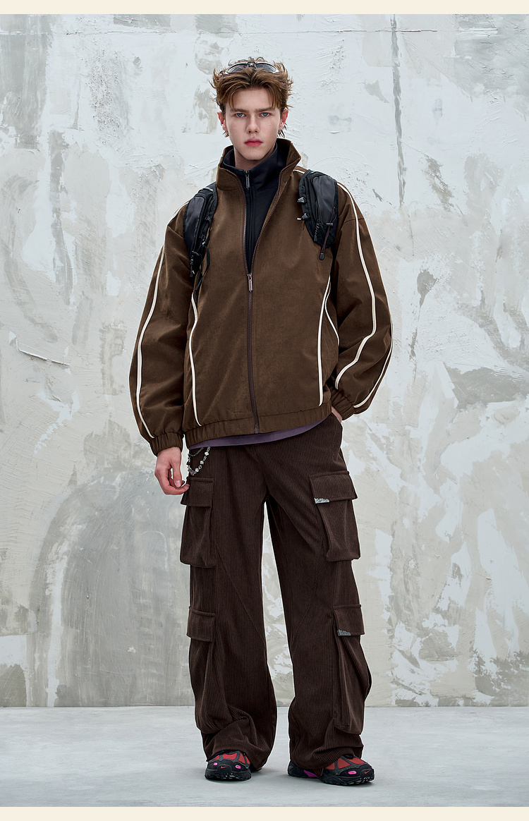 BJHG不计后果复古运动外套男女款秋季美式立领夹克柔丝绒休闲外套