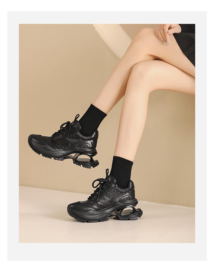 westory2024春季新款休闲厚底镂空气垫底超轻圆头百搭老爹鞋S24AM57041