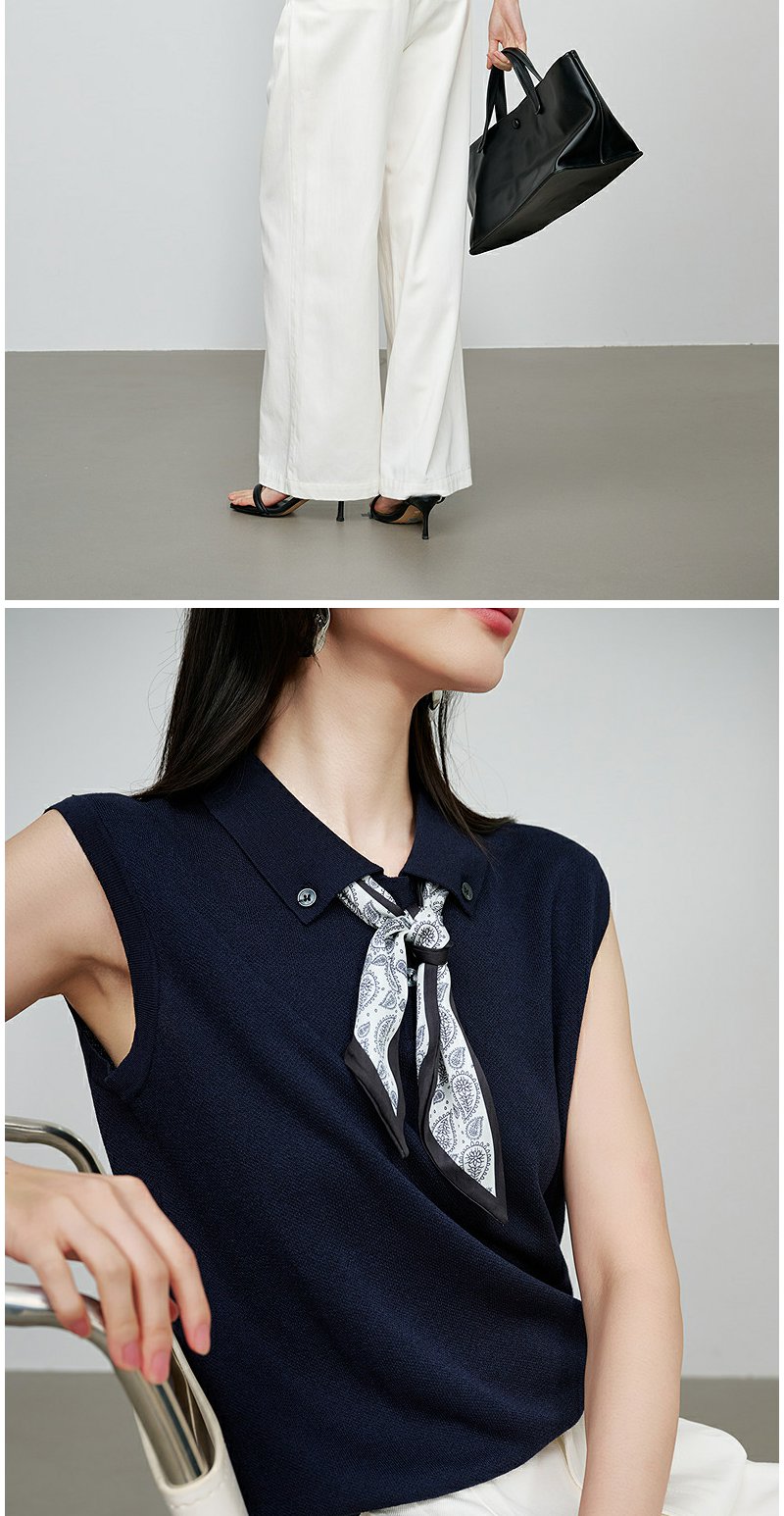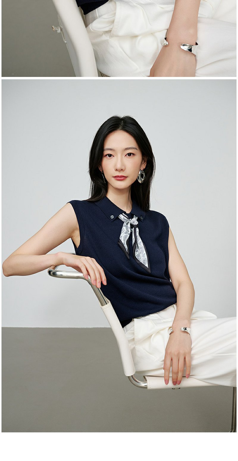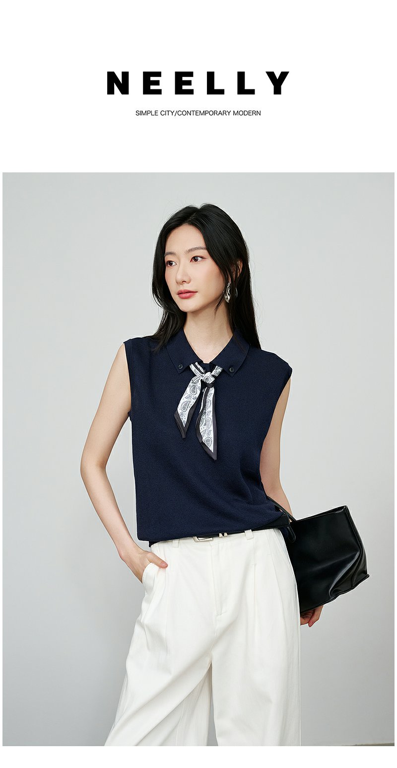 NEELLY纳俪商场同款秋季新款简约休闲无袖针织衫女气质百搭上衣N25074A06604