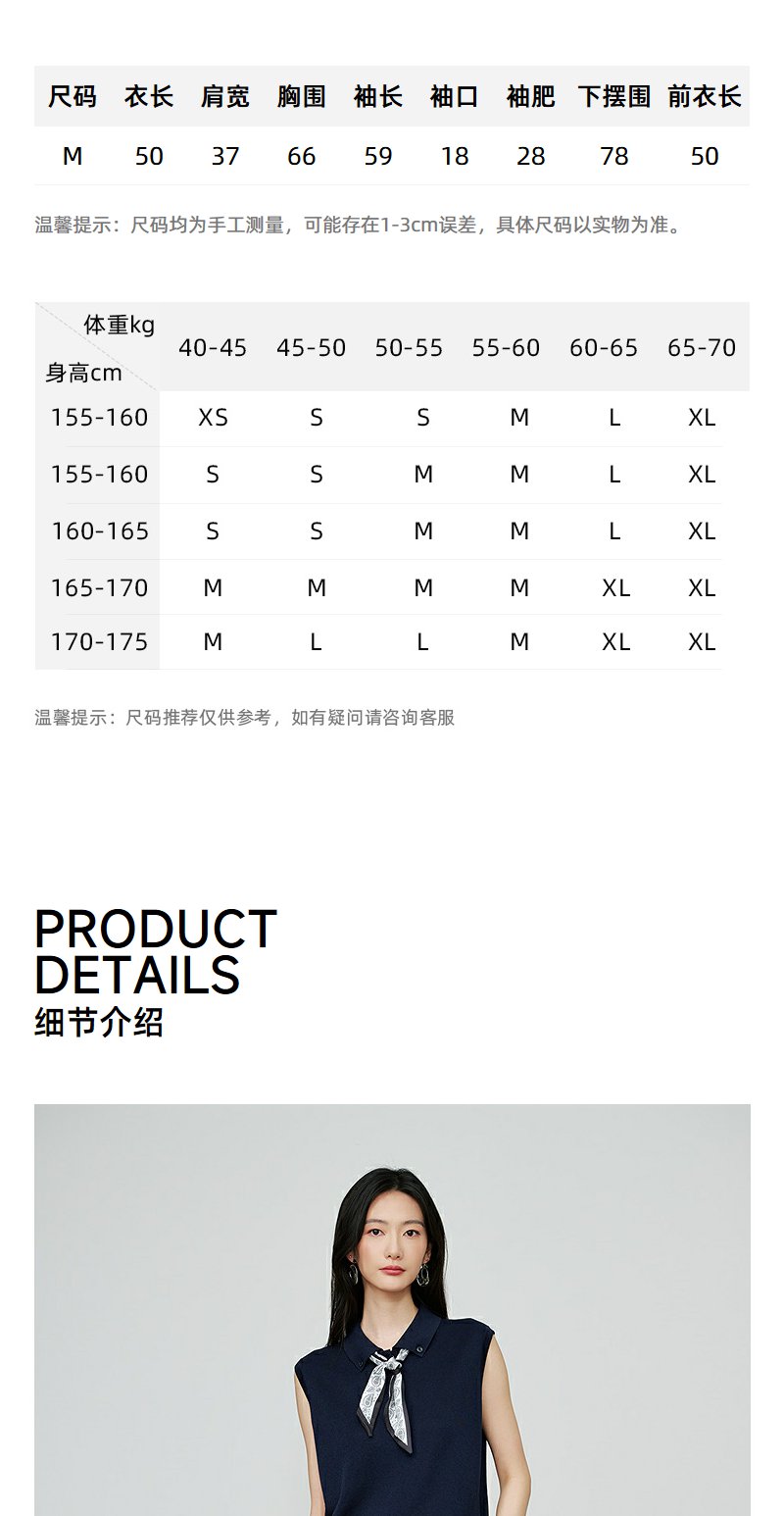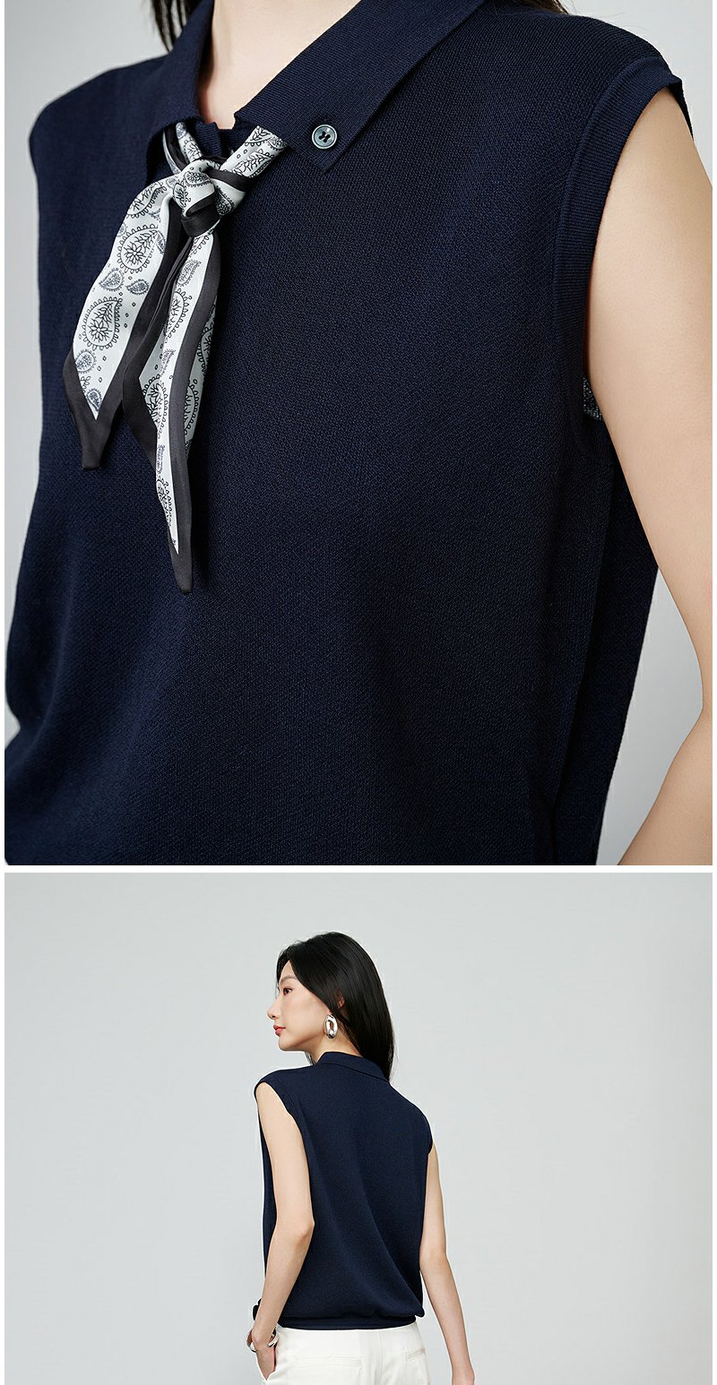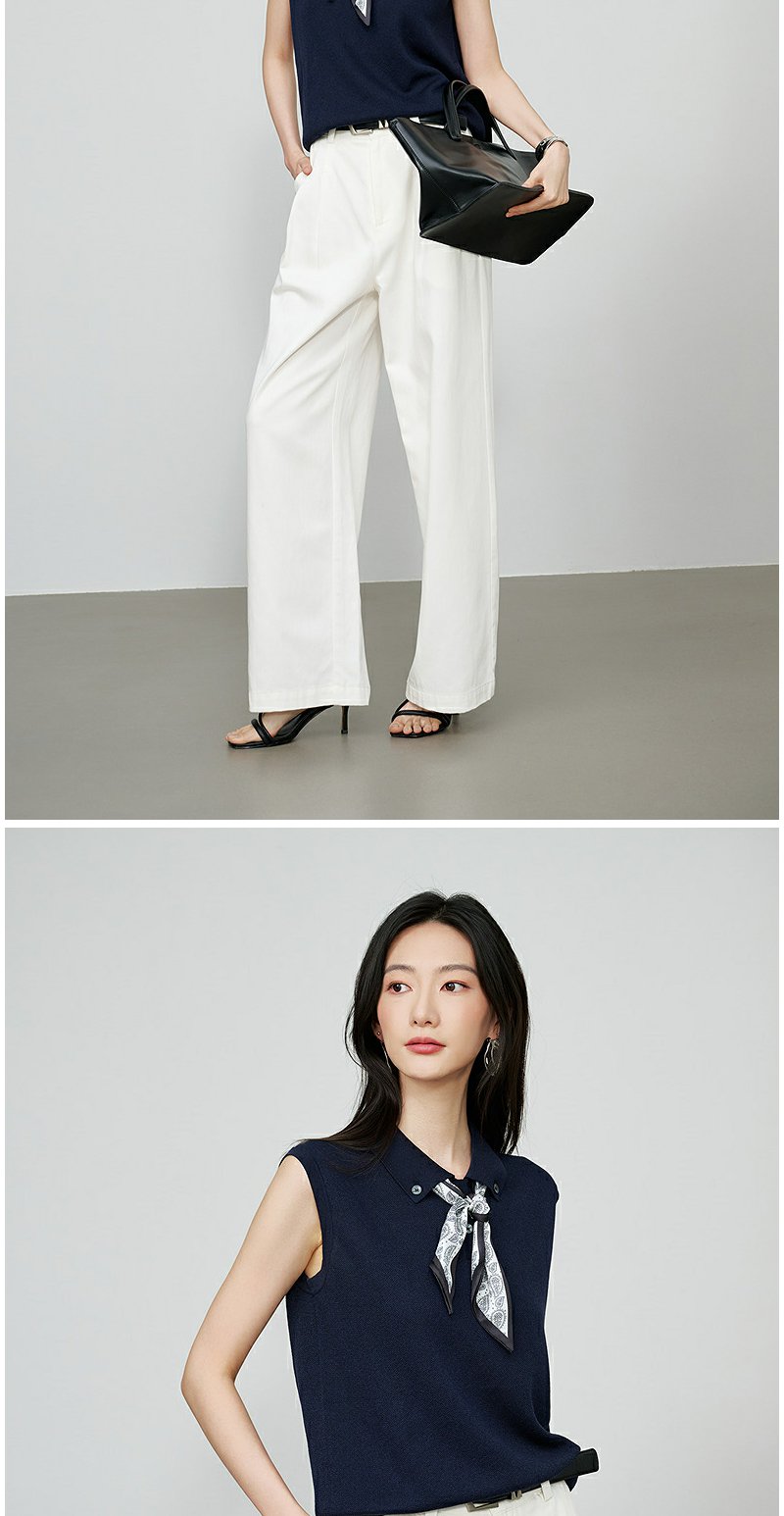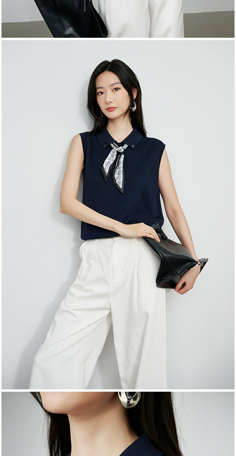 NEELLY纳俪商场同款秋季新款简约休闲无袖针织衫女气质百搭上衣N25074A06604