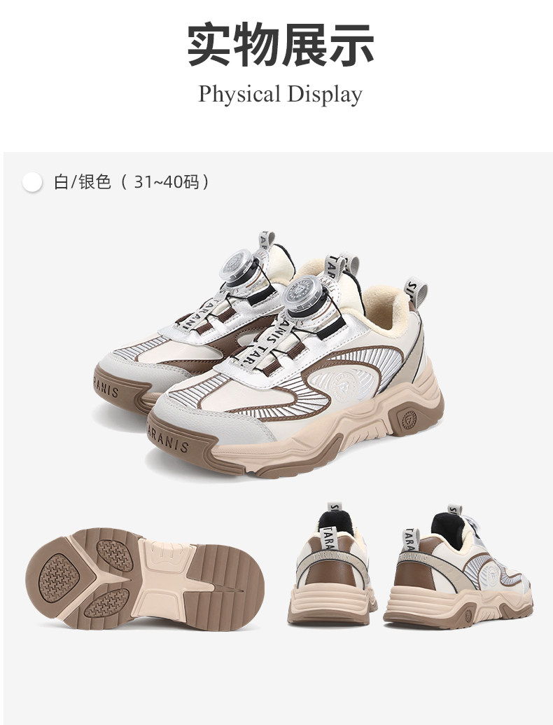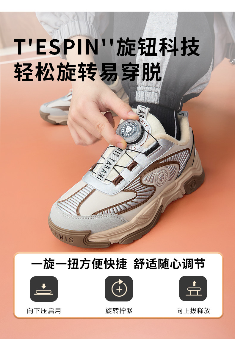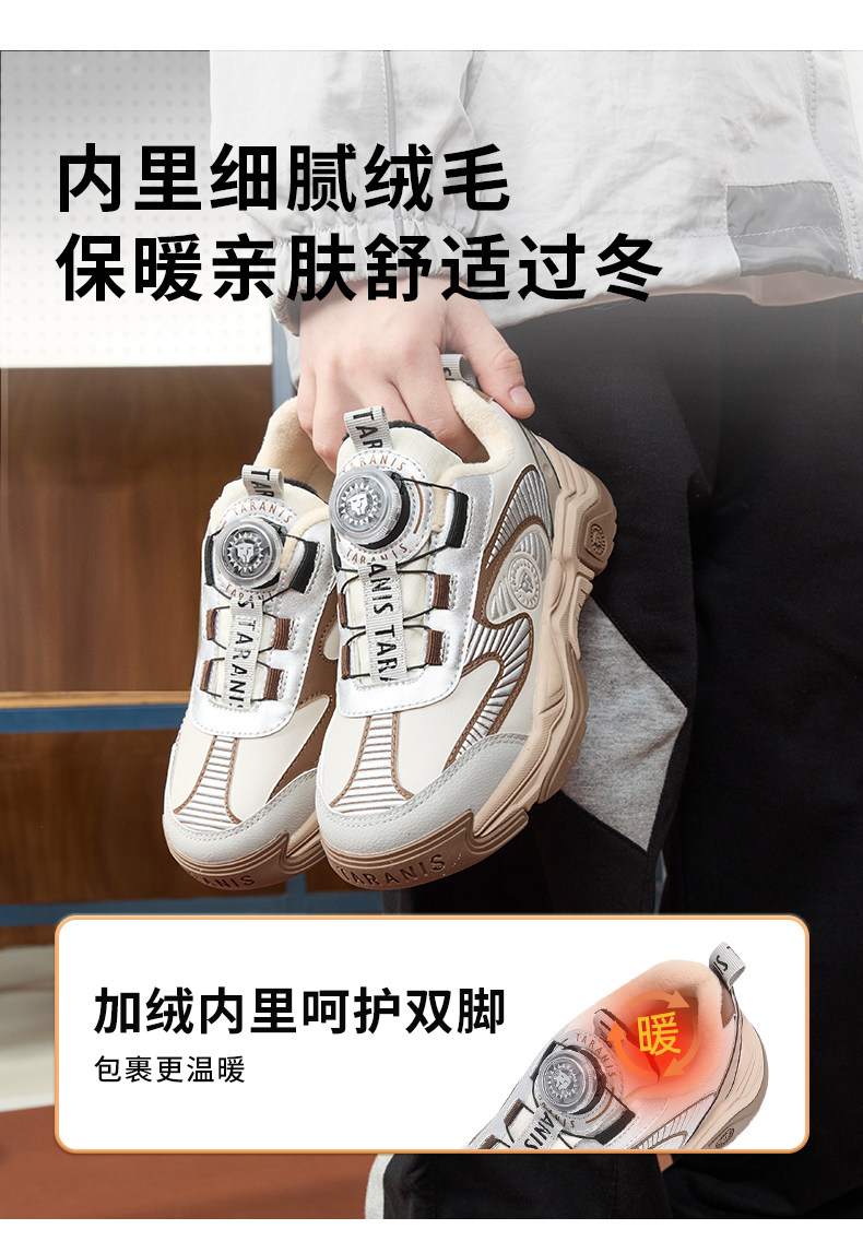 泰兰尼斯儿童运动鞋2025冬季新款男女童加绒保暖棉靴中大童跑步鞋T01D5D8163