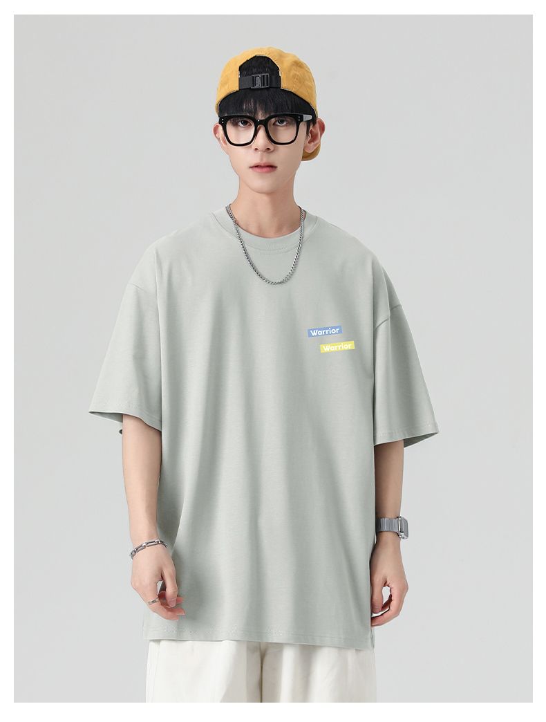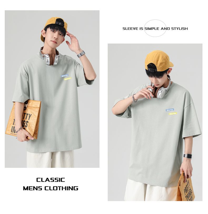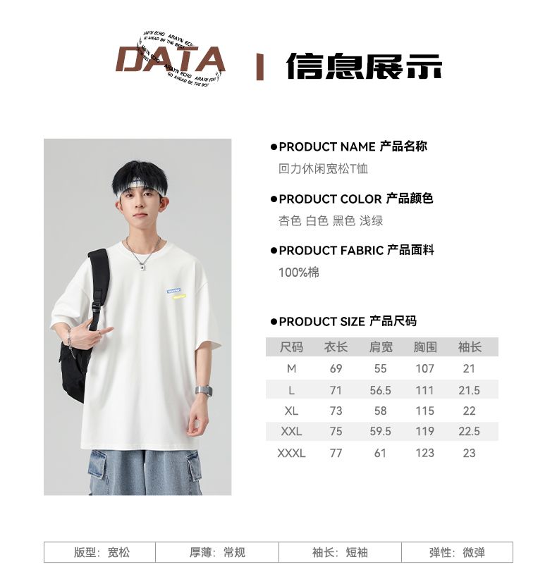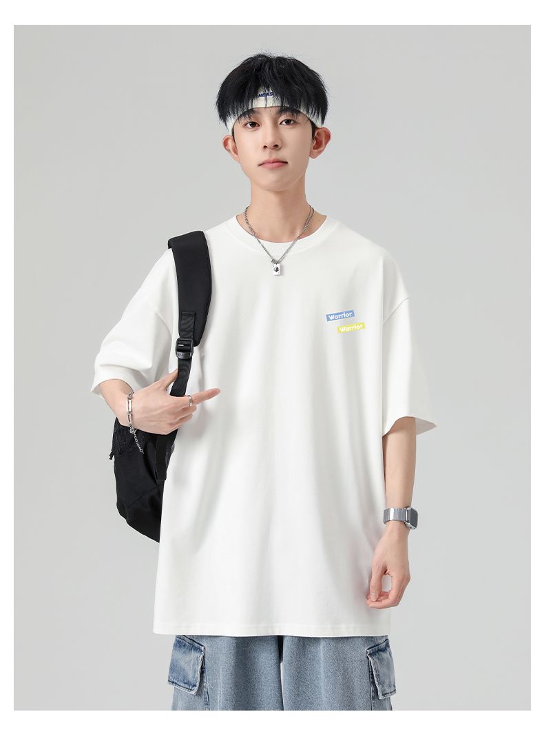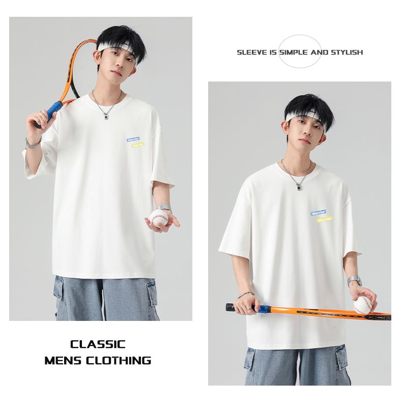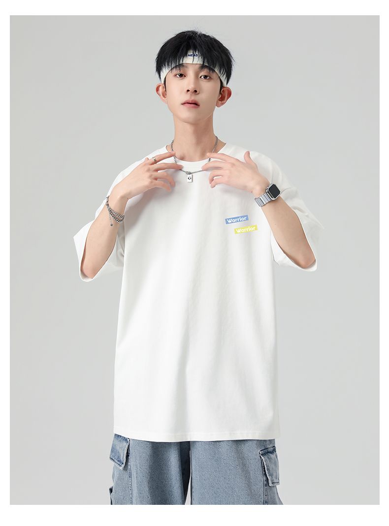 回力重磅纯棉t恤男士夏季新款宽松百搭印花圆领短袖内搭上衣