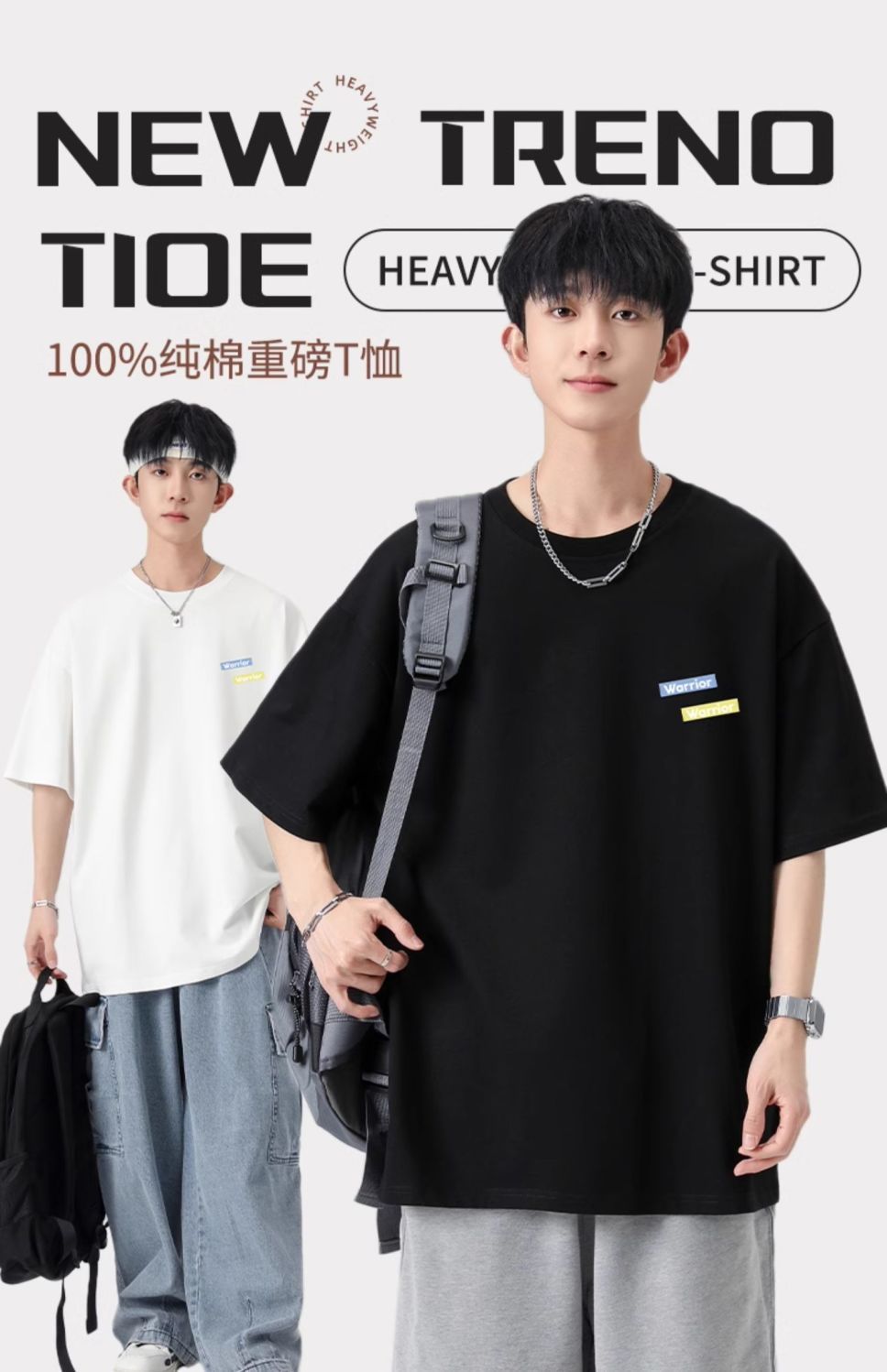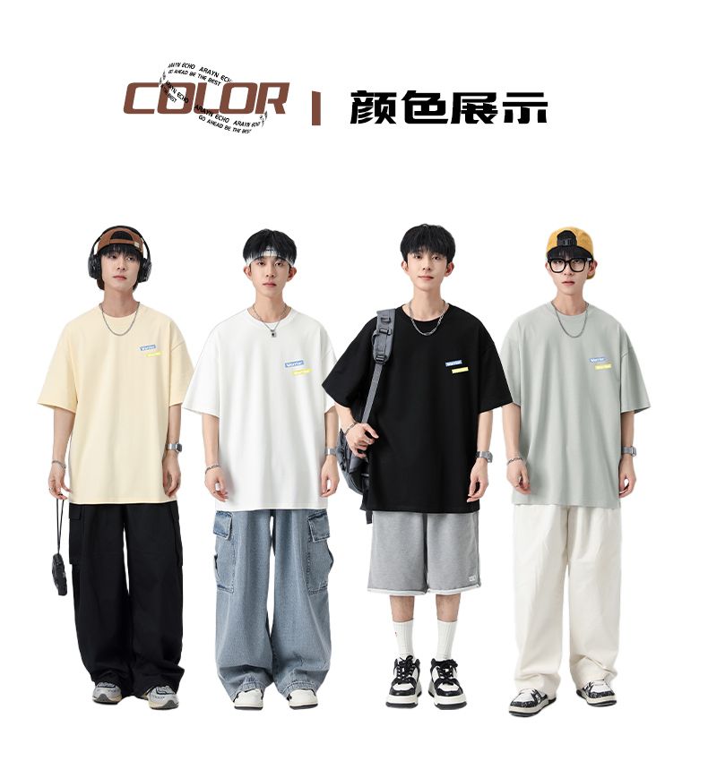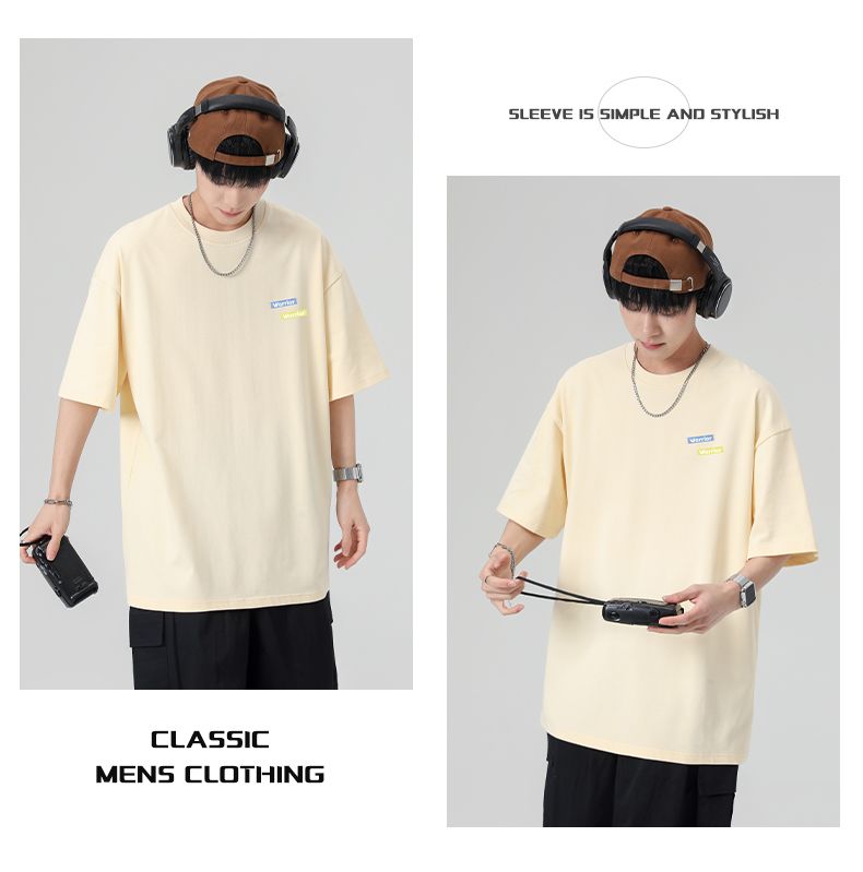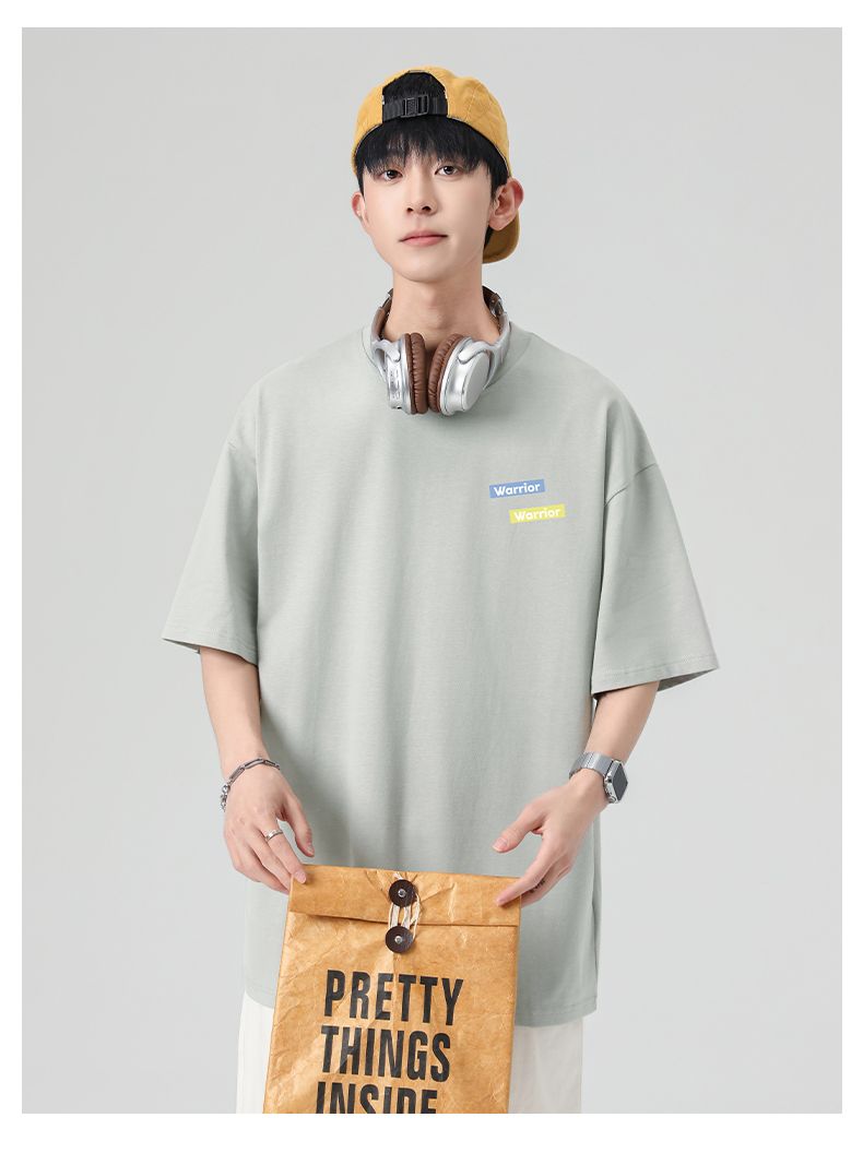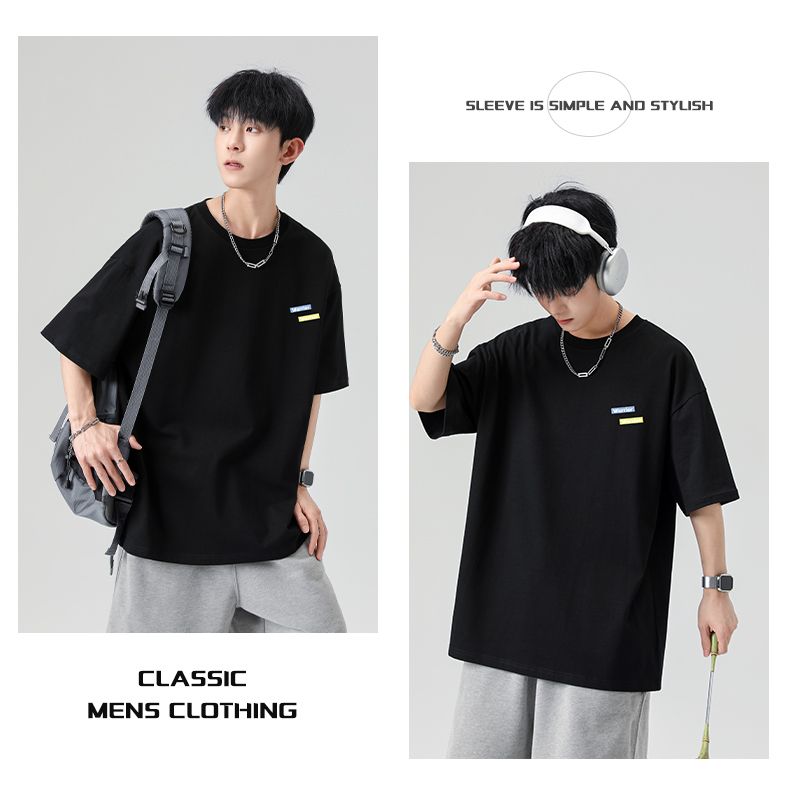 回力重磅纯棉t恤男士夏季新款宽松百搭印花圆领短袖内搭上衣