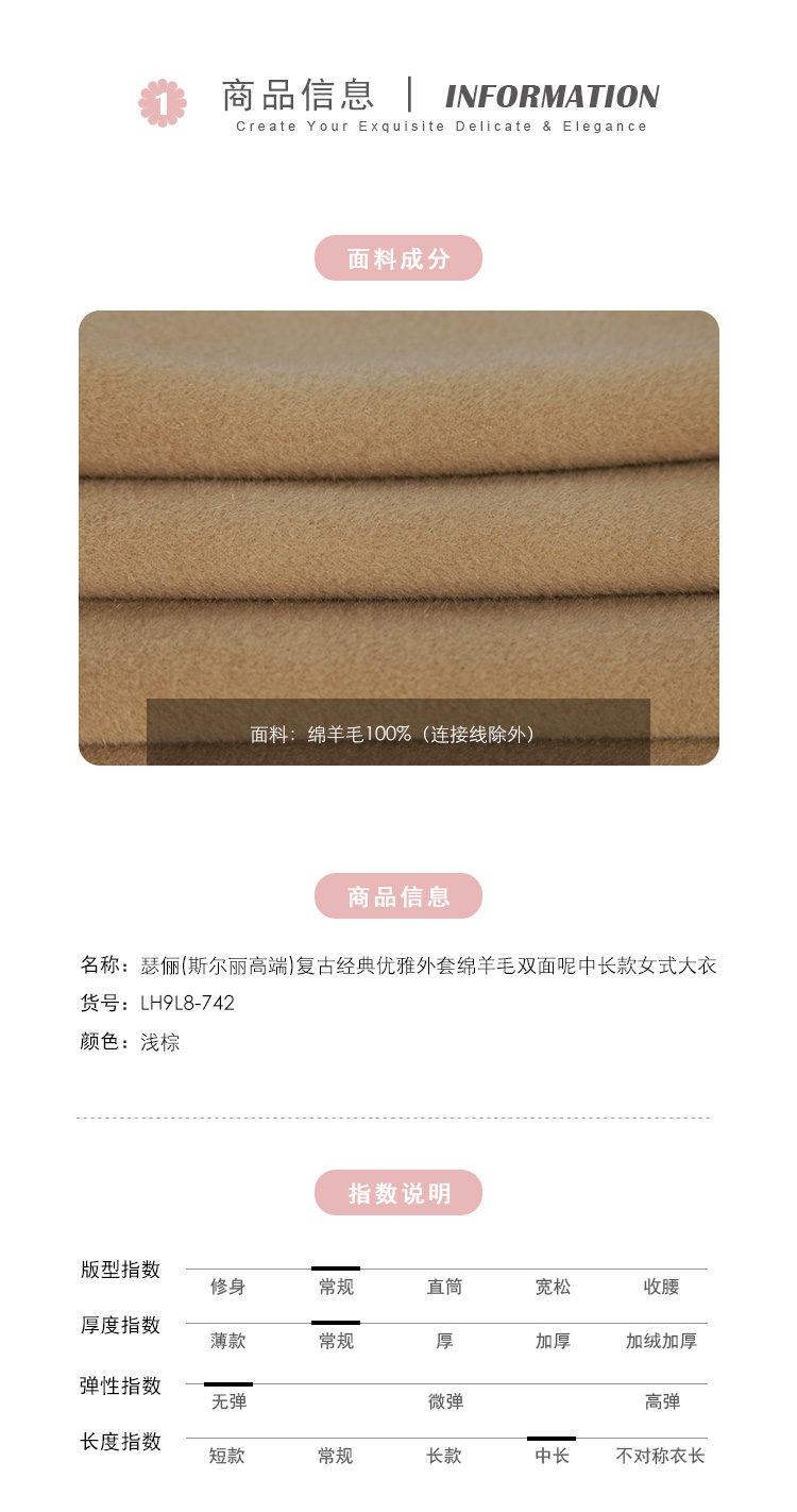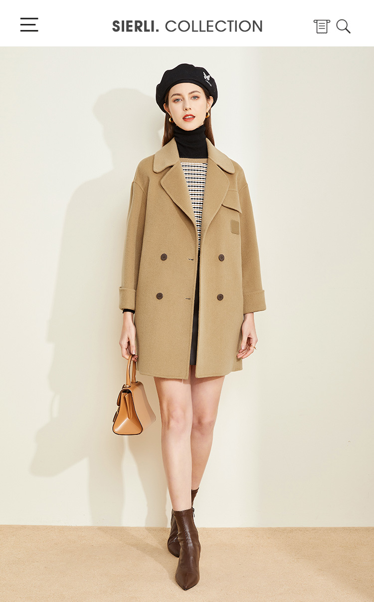 LH9L8斯尔丽2021瑟俪秋冬新款复古经典优雅外套绵羊毛双面呢女式大衣