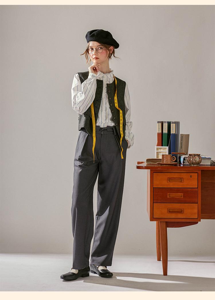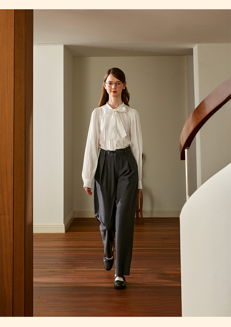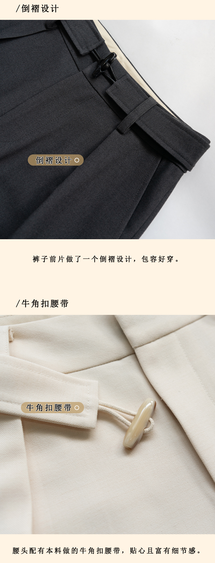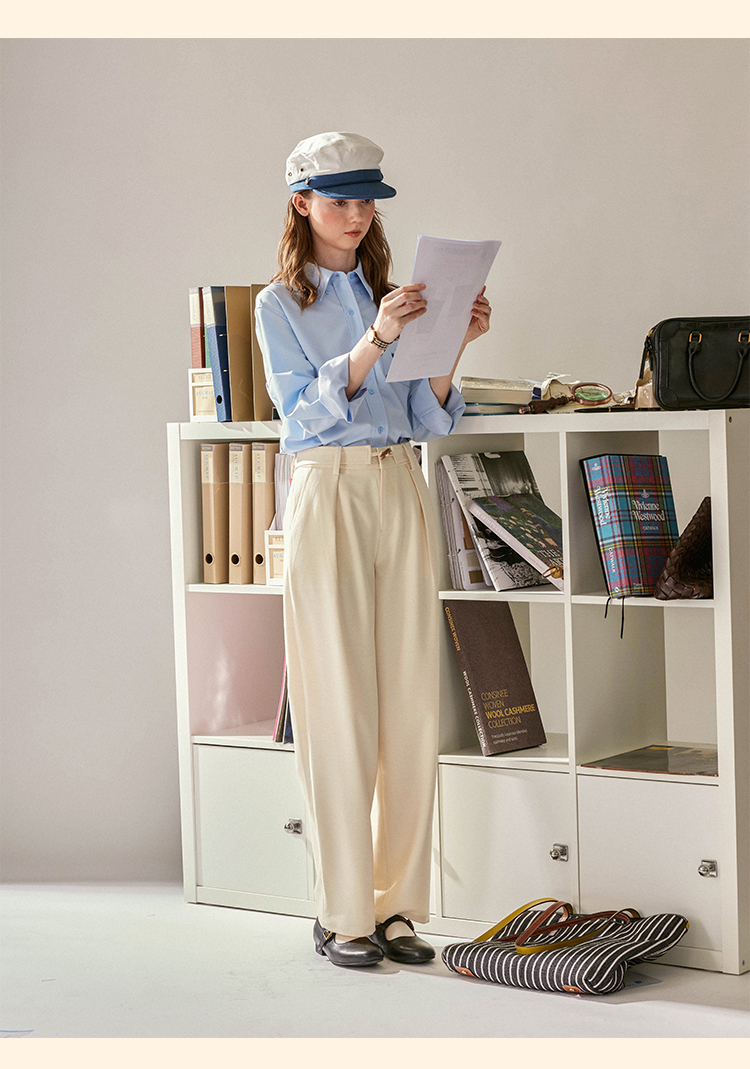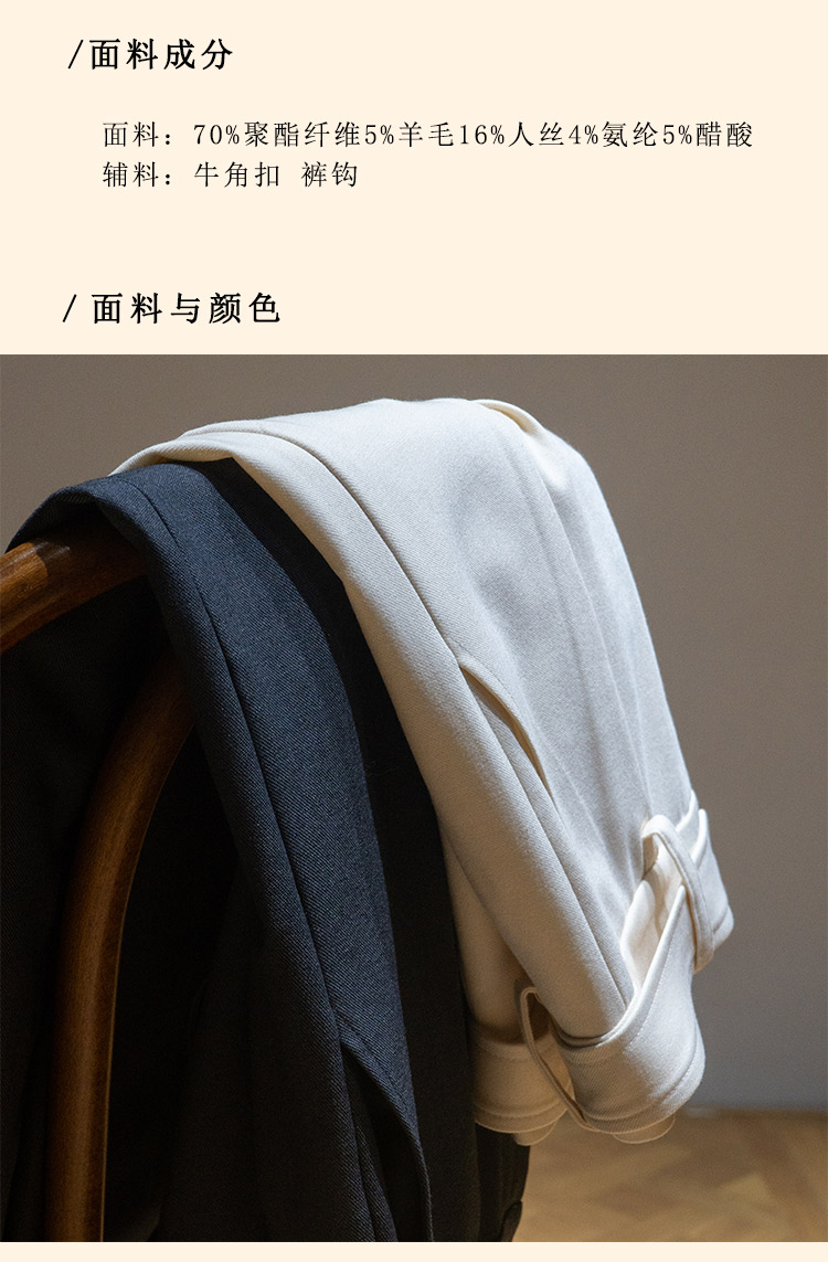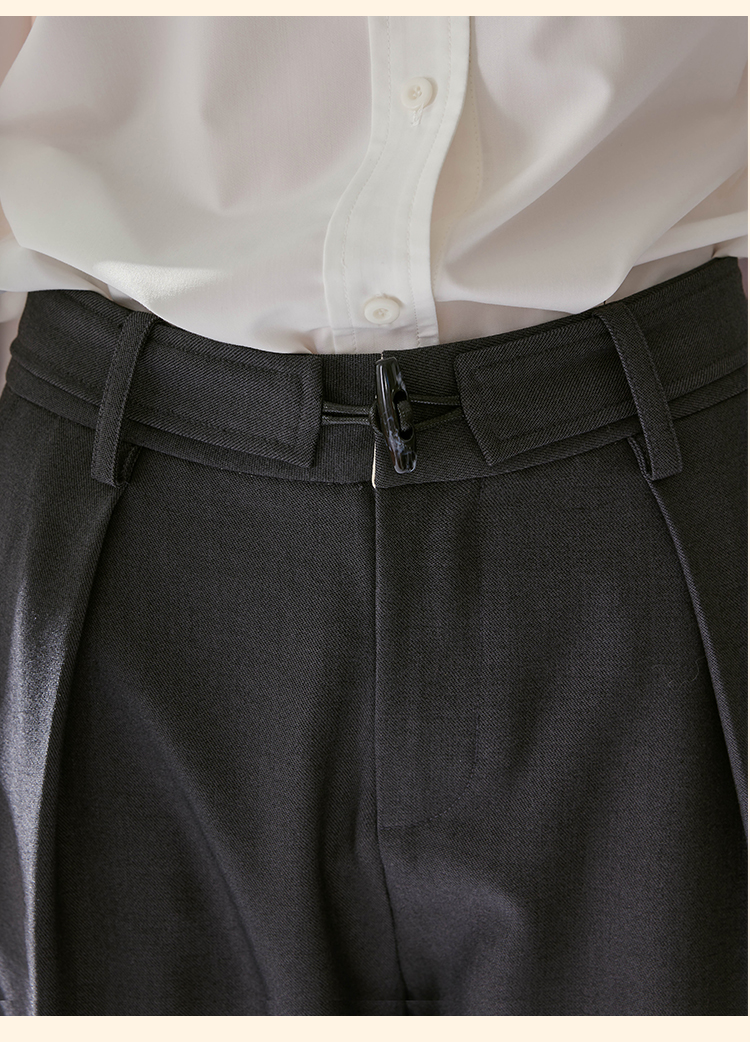 浮生八记/24C088/醋酸羊毛打褶西装裤牛角扣腰带休闲裤