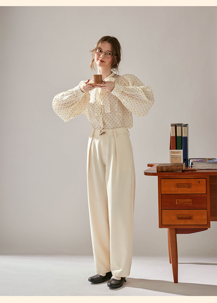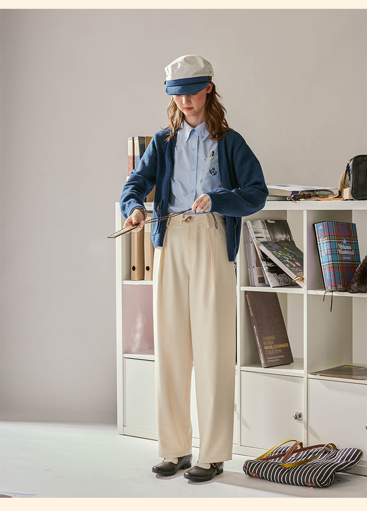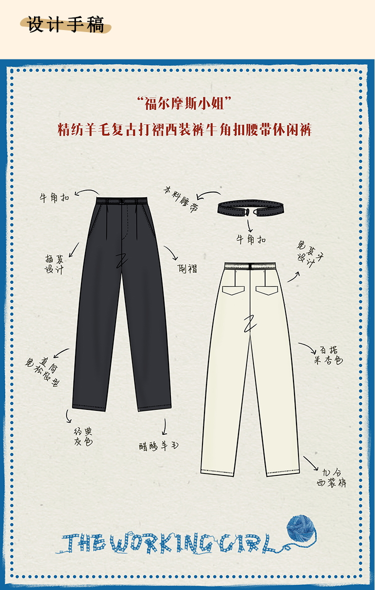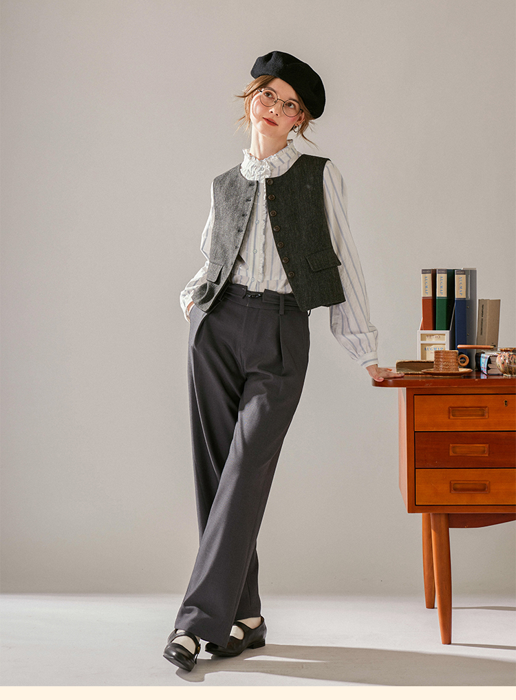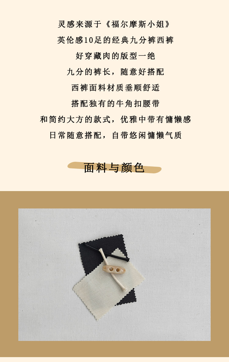 浮生八记/24C088/醋酸羊毛打褶西装裤牛角扣腰带休闲裤