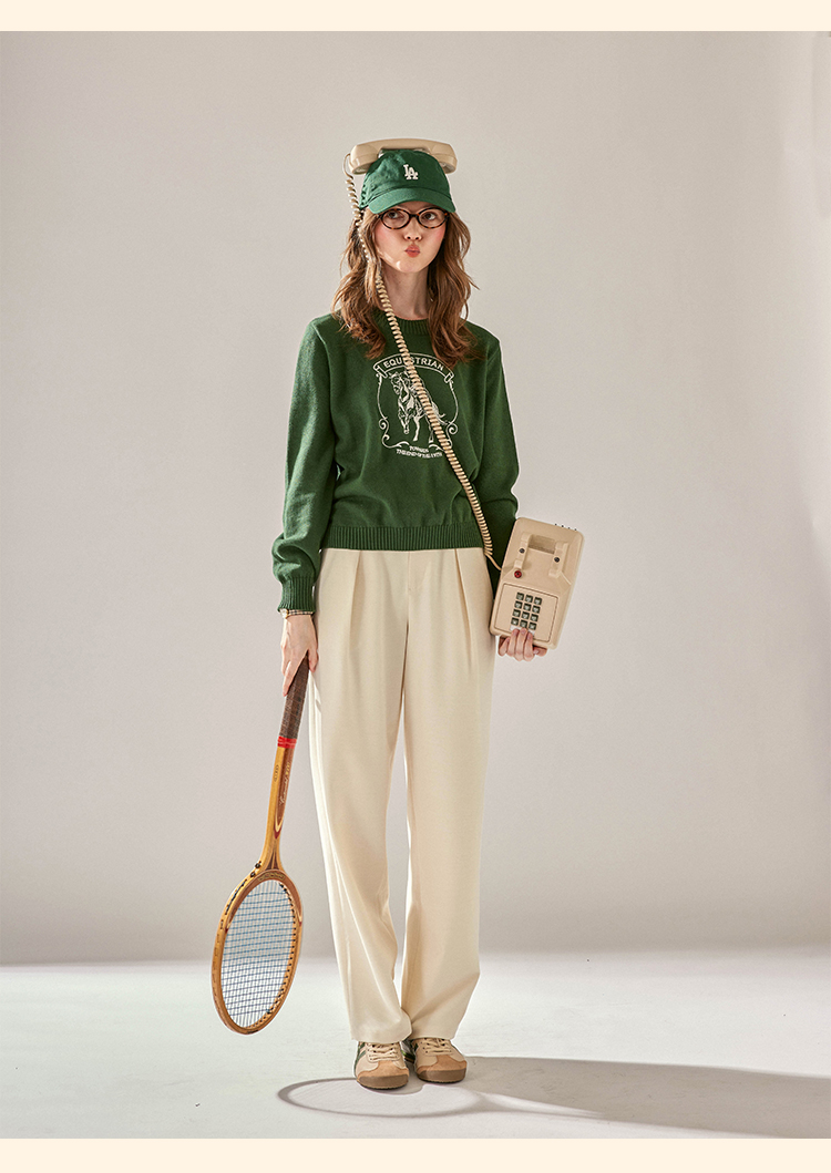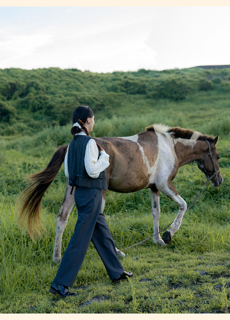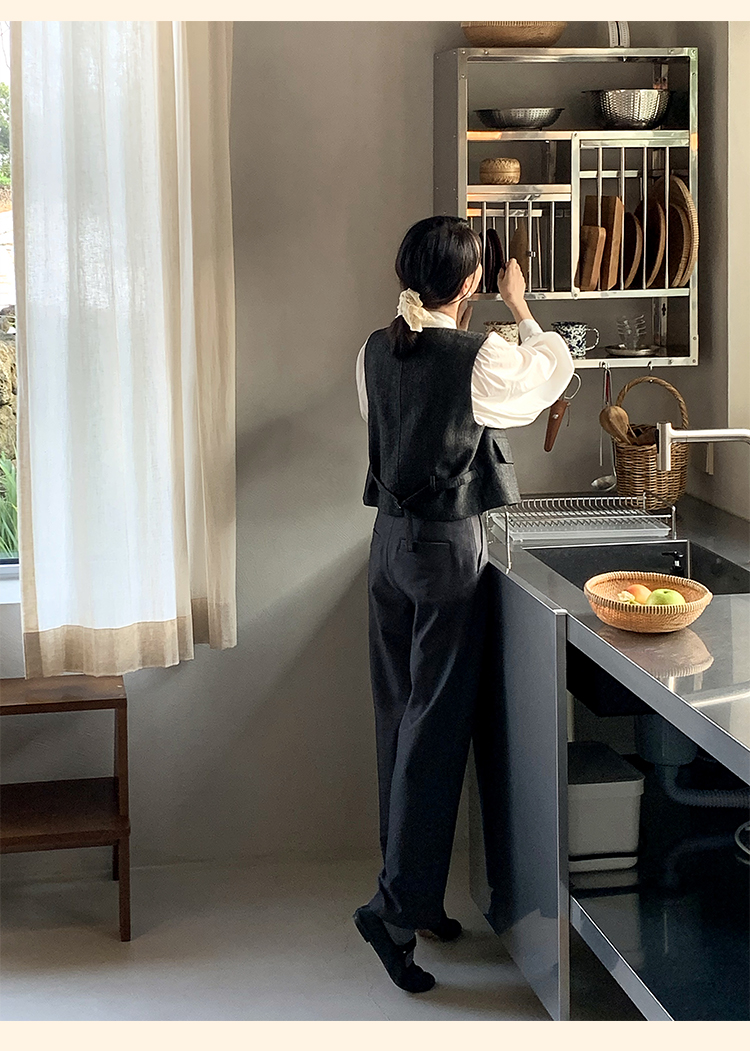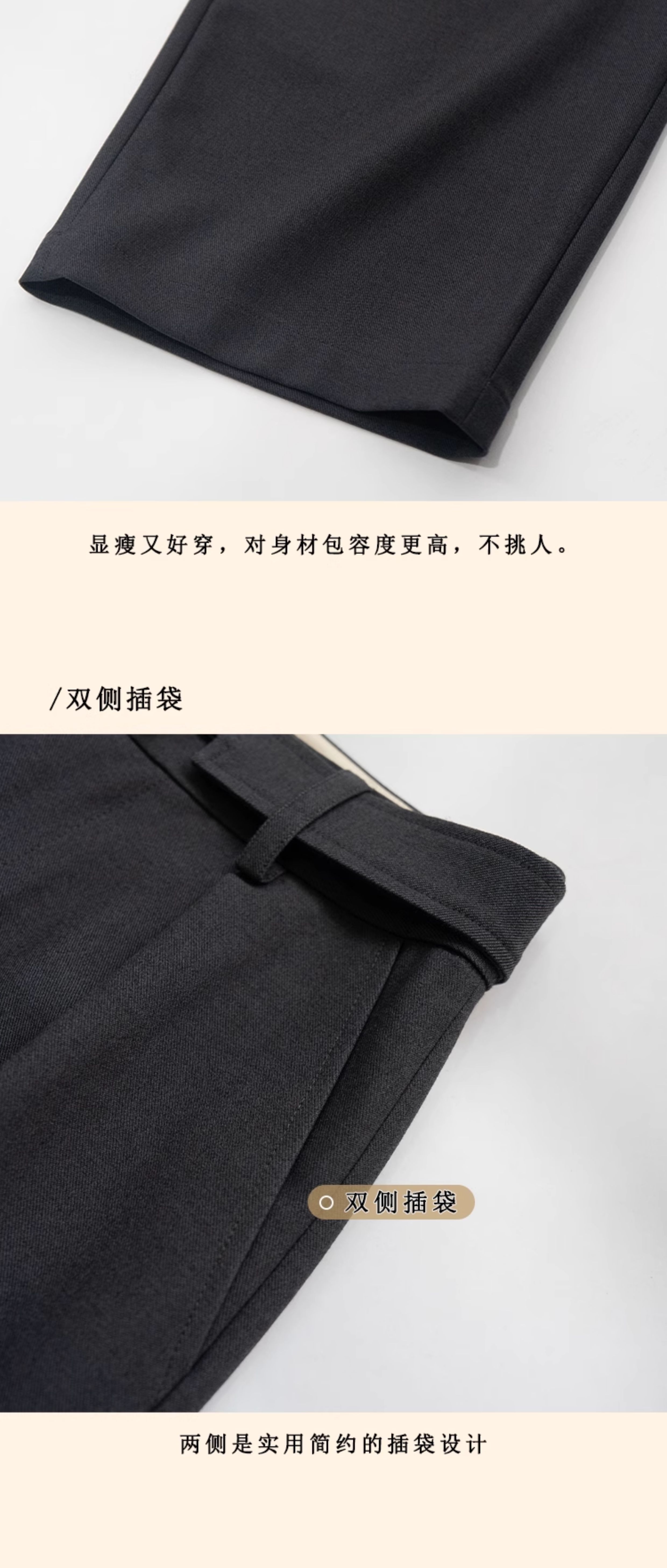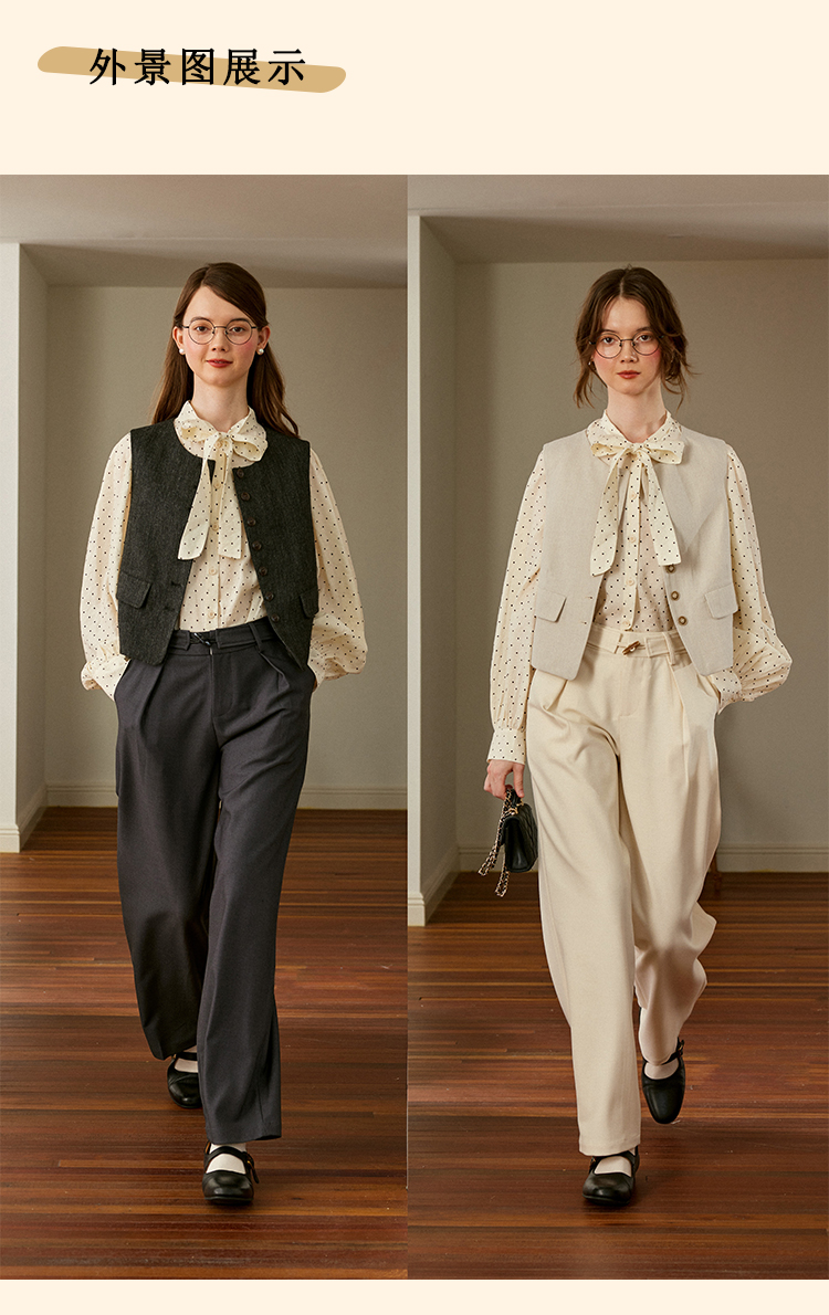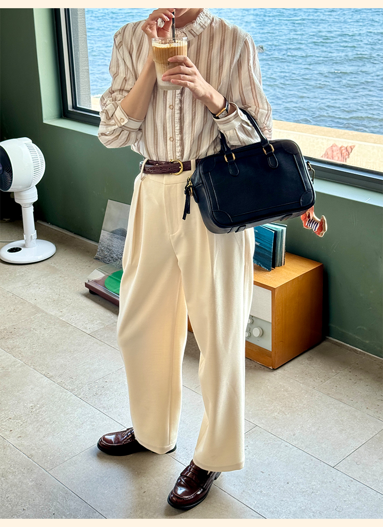 浮生八记/24C088/醋酸羊毛打褶西装裤牛角扣腰带休闲裤