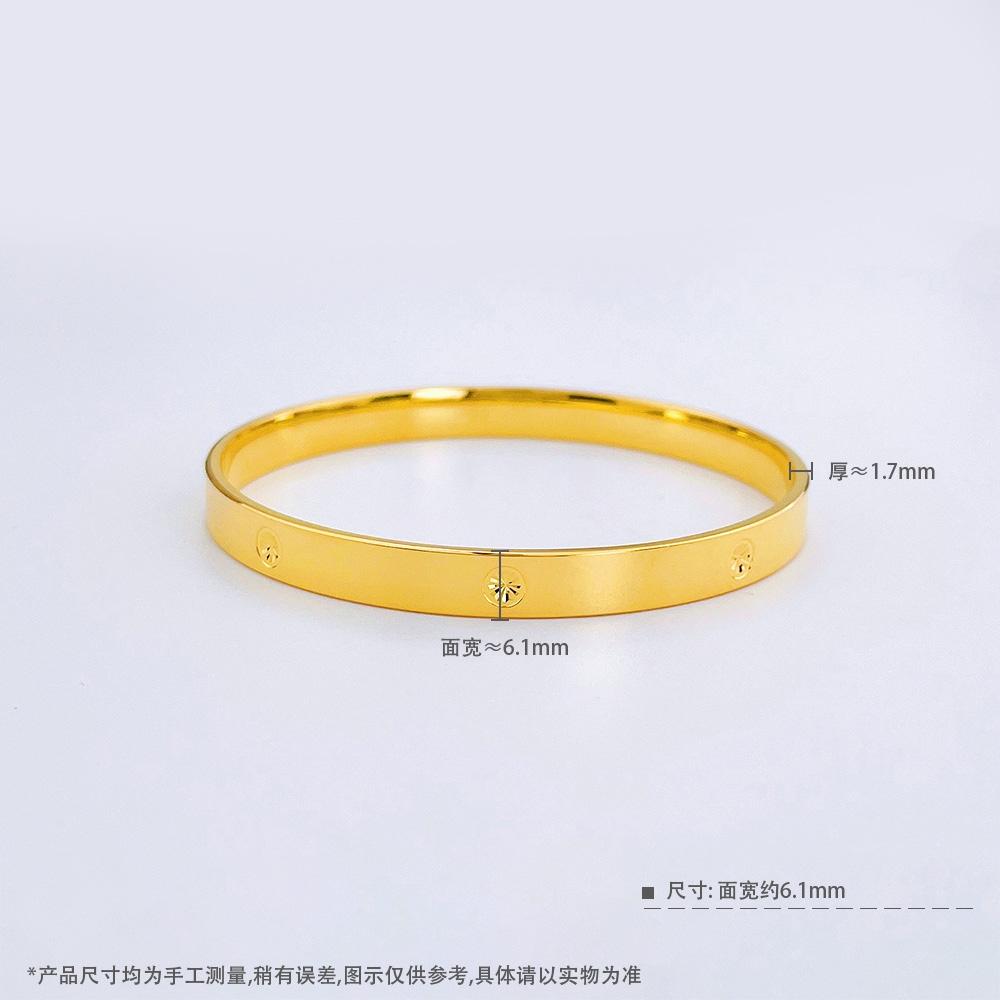 【限时克减150元】足金999.9 实心固口镜面金螺丝纹手镯米字纹手镯(面宽约5.9-6.3mm,厚度约1.7mm)(ANWZSZ00014-1)(预售产品下单后不退款不退货不换货不补差价)