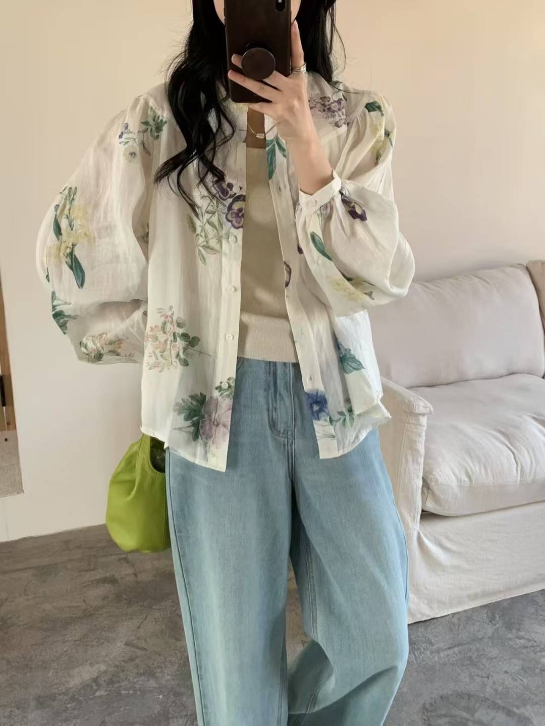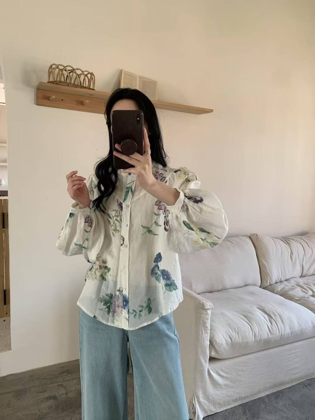 老米优品🎈3-5天!夏日风里的诗意《纯植物印染苎麻衬衫》慵懒灯笼袖,自带呼吸感,植物印染的繁花,是大自然的笔触~CY250629A 下架