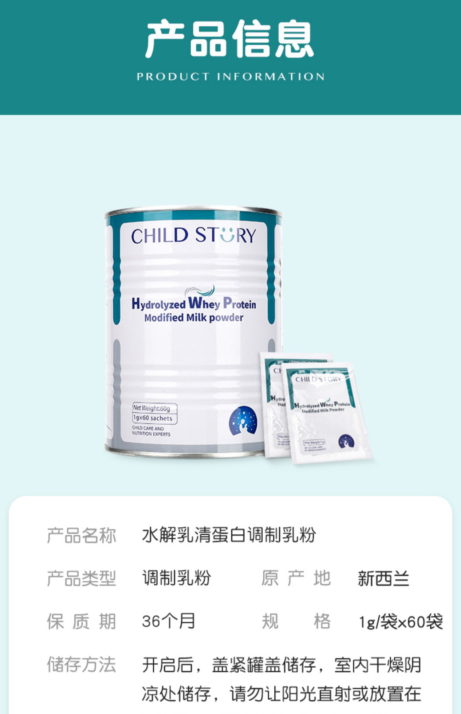 童年故事 水解乳清蛋白调制乳粉 1g*60袋