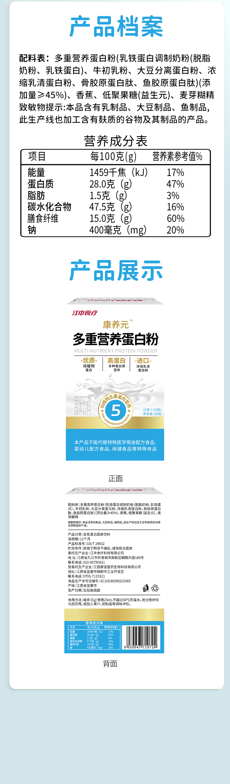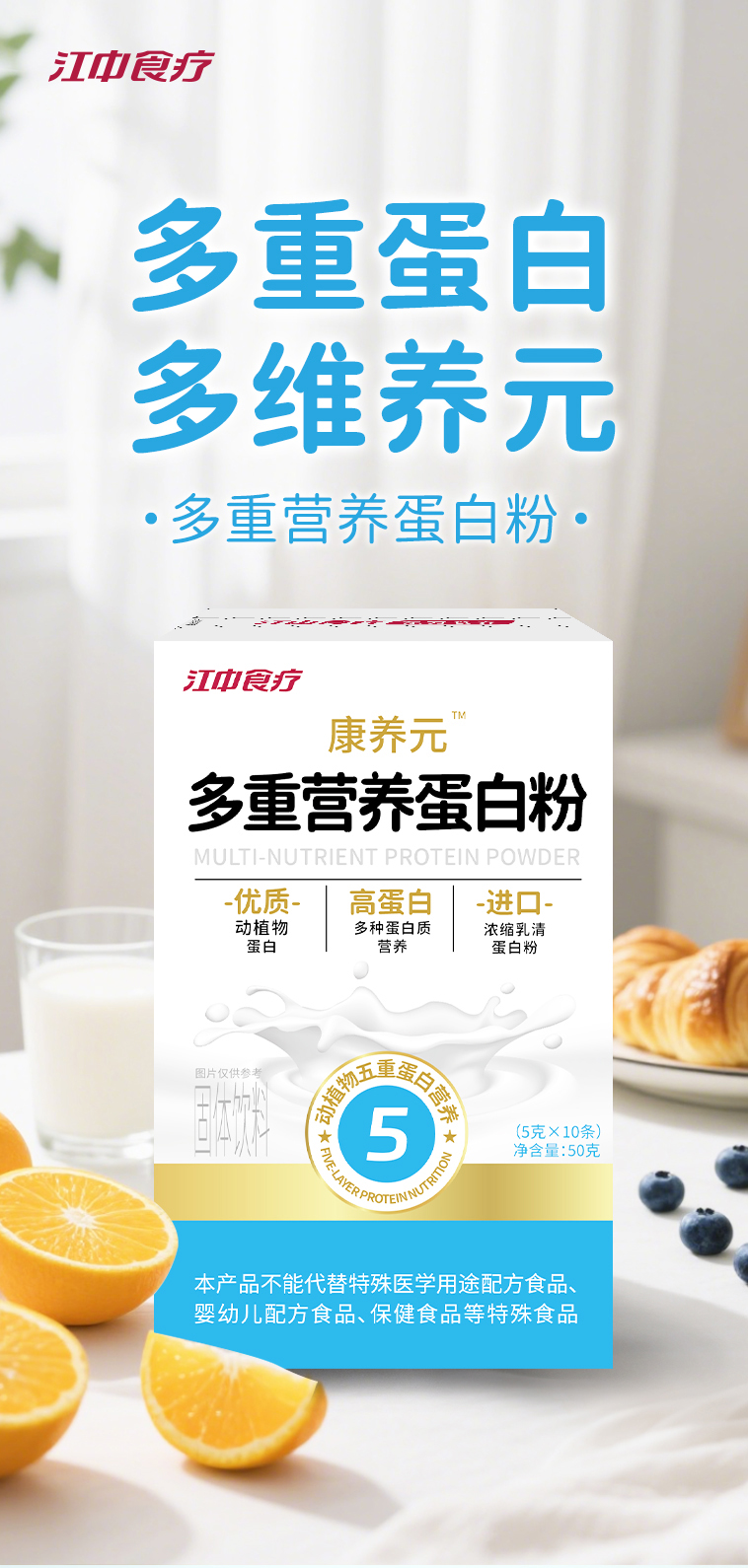 【新品上新】2盒*江中食疗 康养元多重营养蛋白粉50克/10支/盒 2025年11月生产 保质期12个月