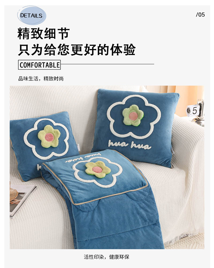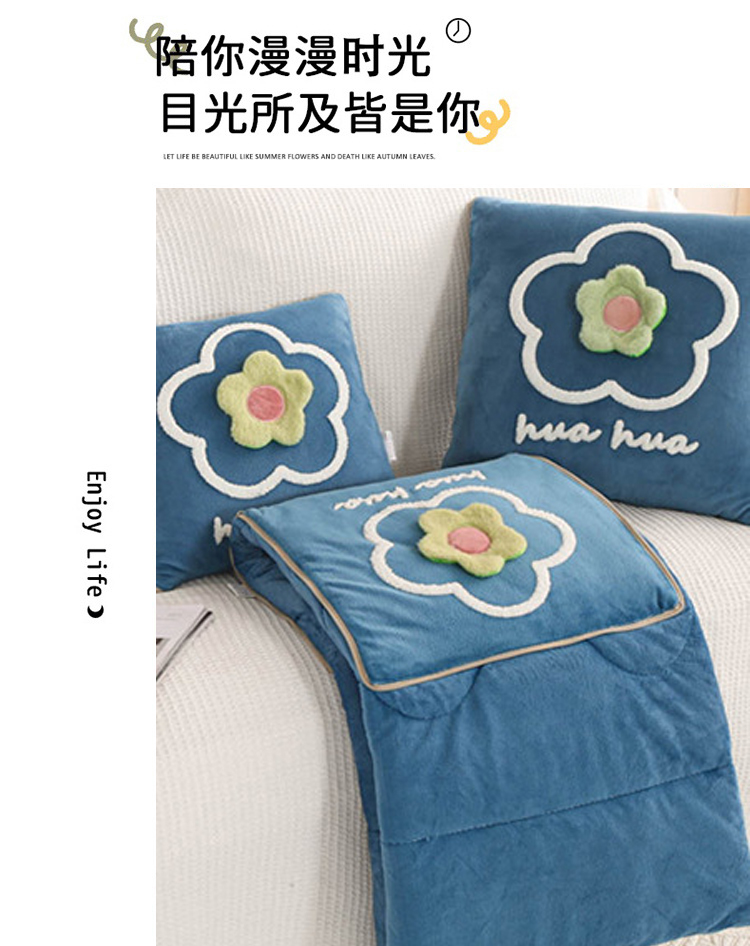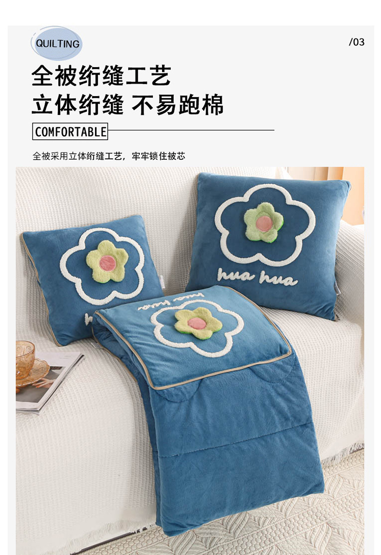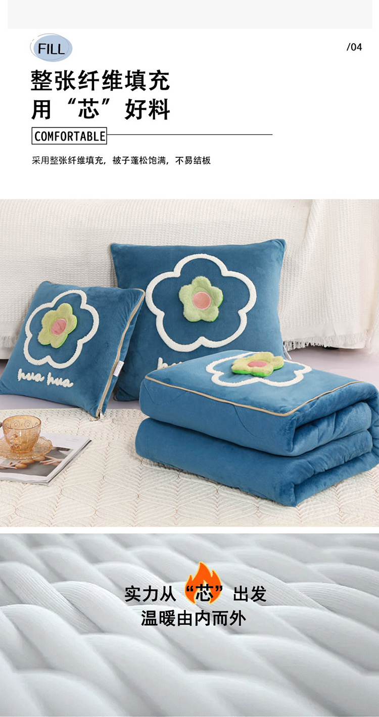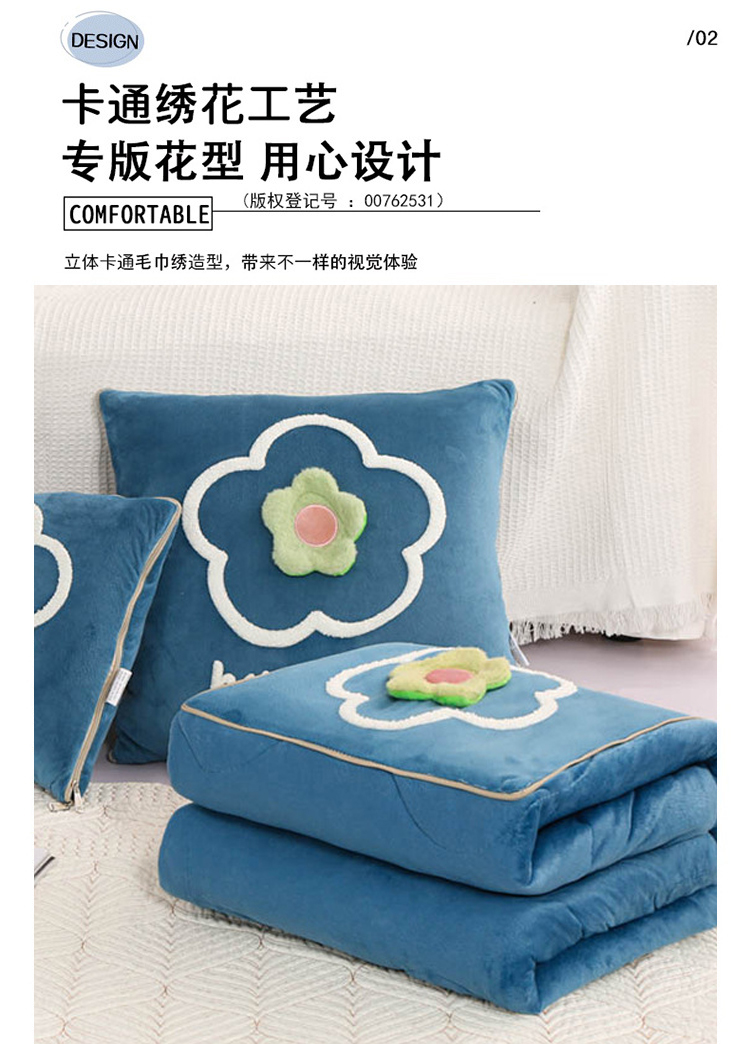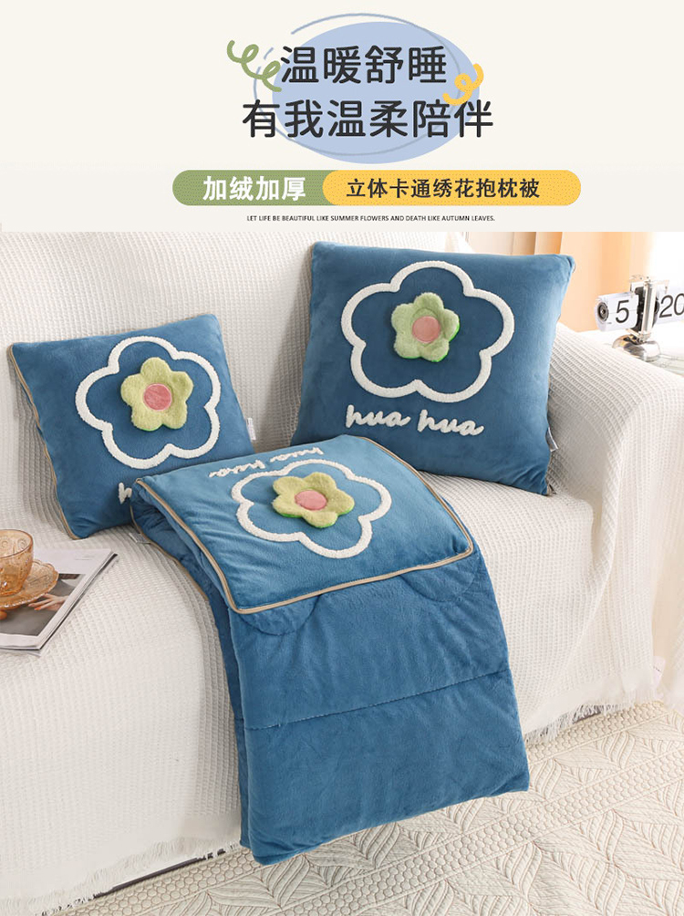 多功能加厚加绒抱枕被子两用折叠汽车内靠枕办公室保暖午睡空调毯 FYJ-QF