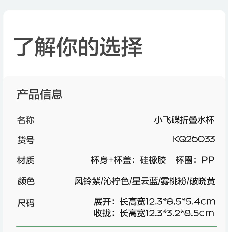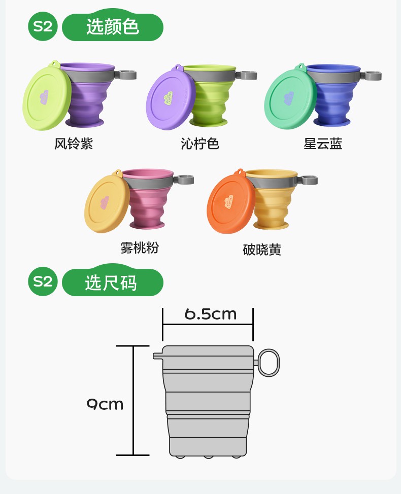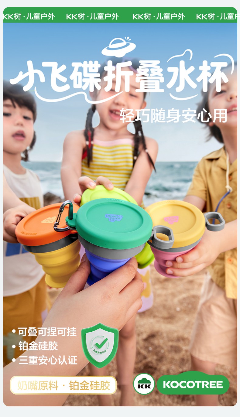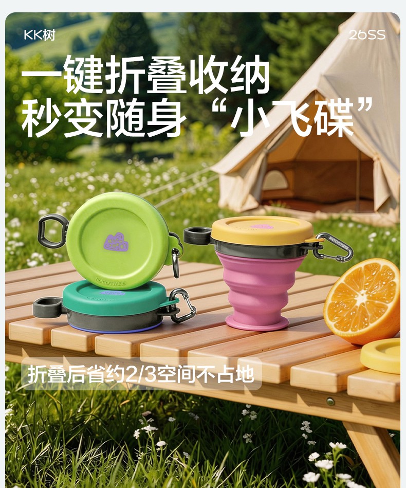KK树折叠杯子耐高温便携式旅行漱口杯食品级硅胶户外露营压缩水杯小飞碟折叠水杯