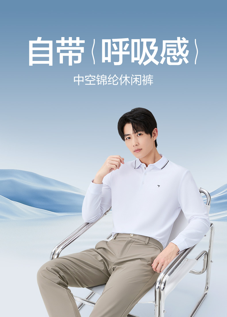 【中空休闲裤】柒牌男装2026春季新品修身微弹清爽舒适休闲长裤130H71590