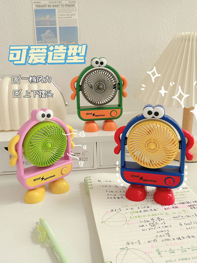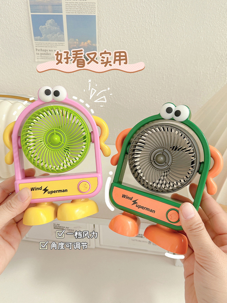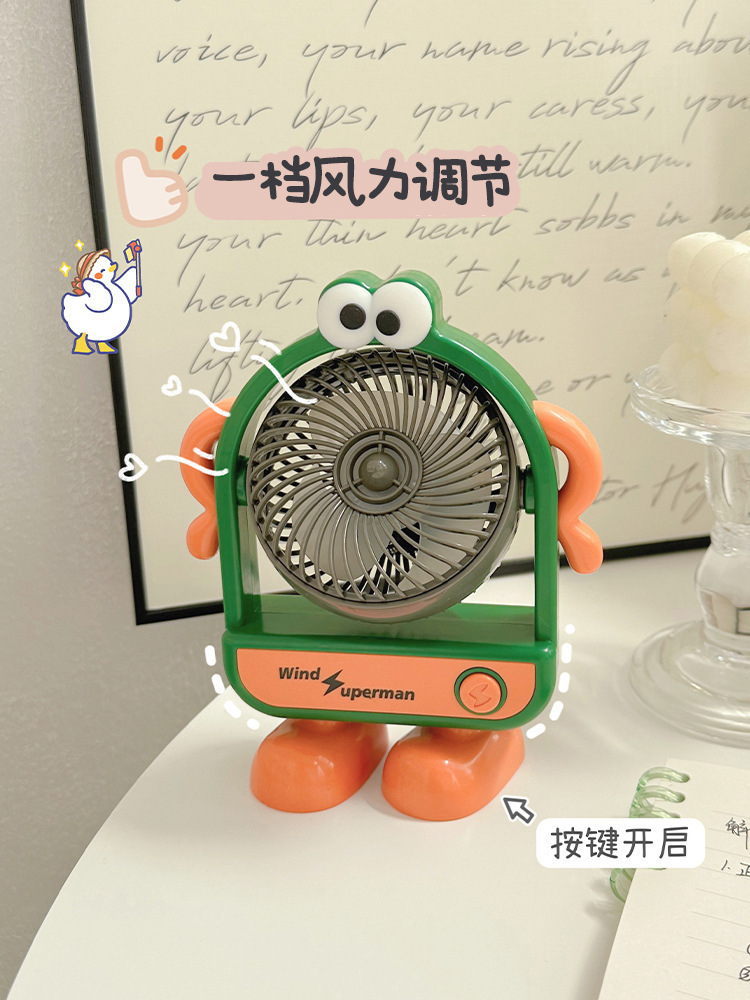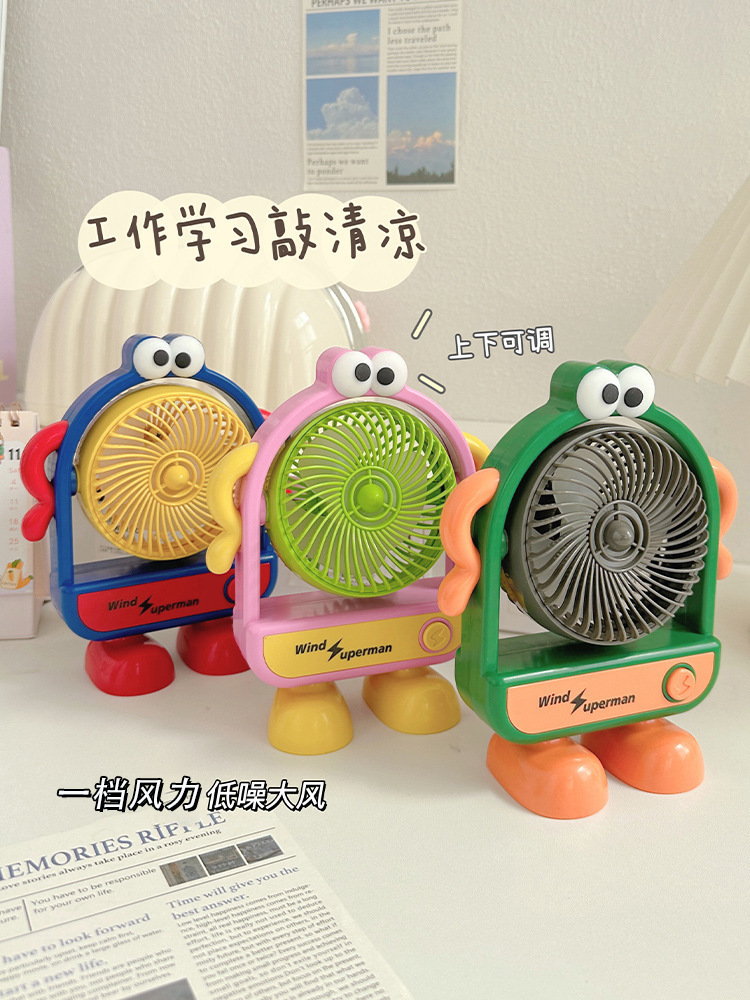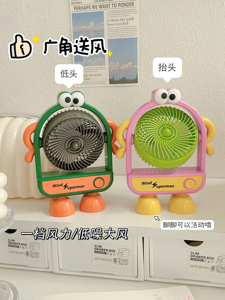 【可爱造型!工作学习敲清凉】便携随身小型卡通青蛙办公室桌面静音桌上学生儿童桌面USB电风扇。ry