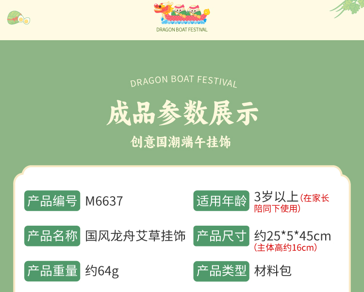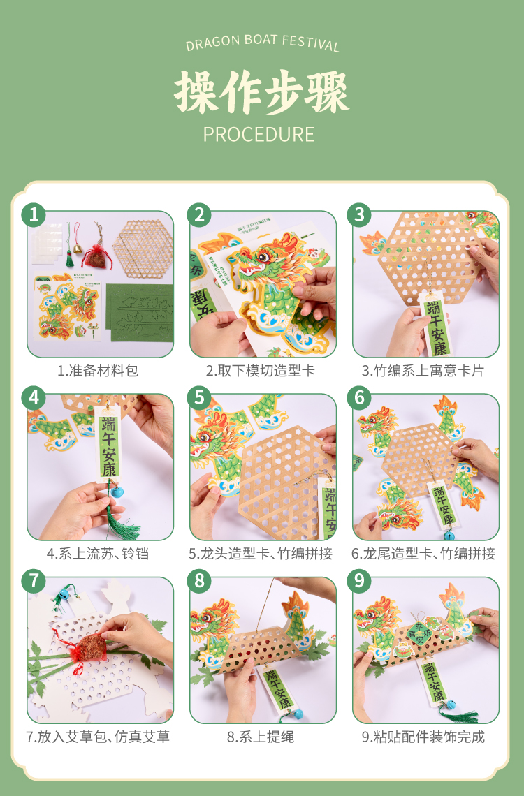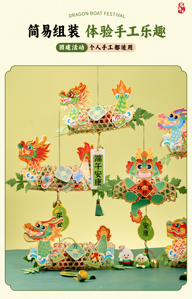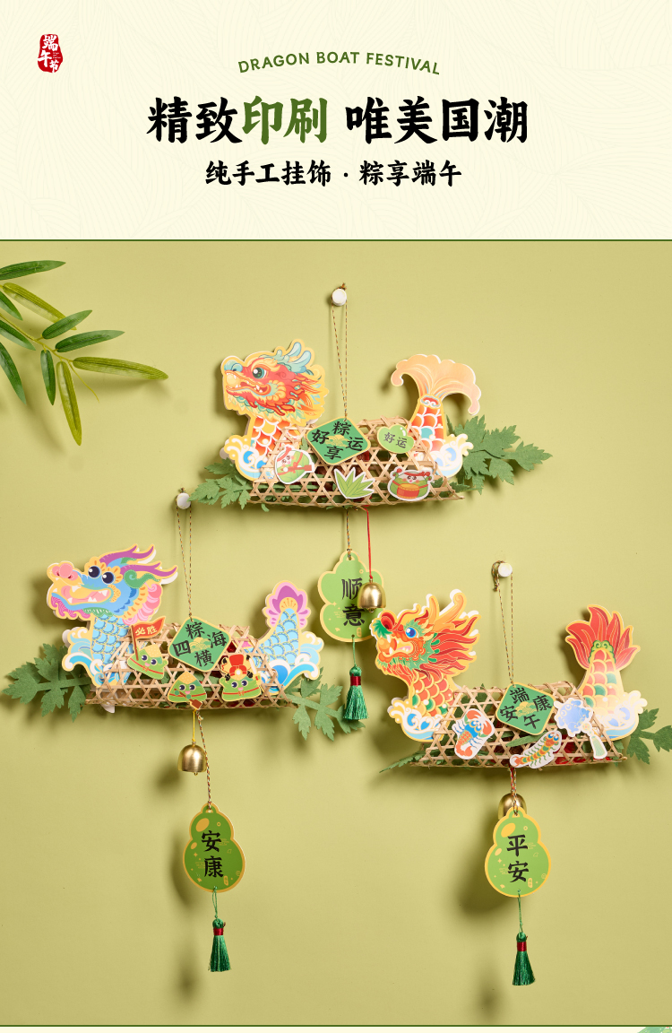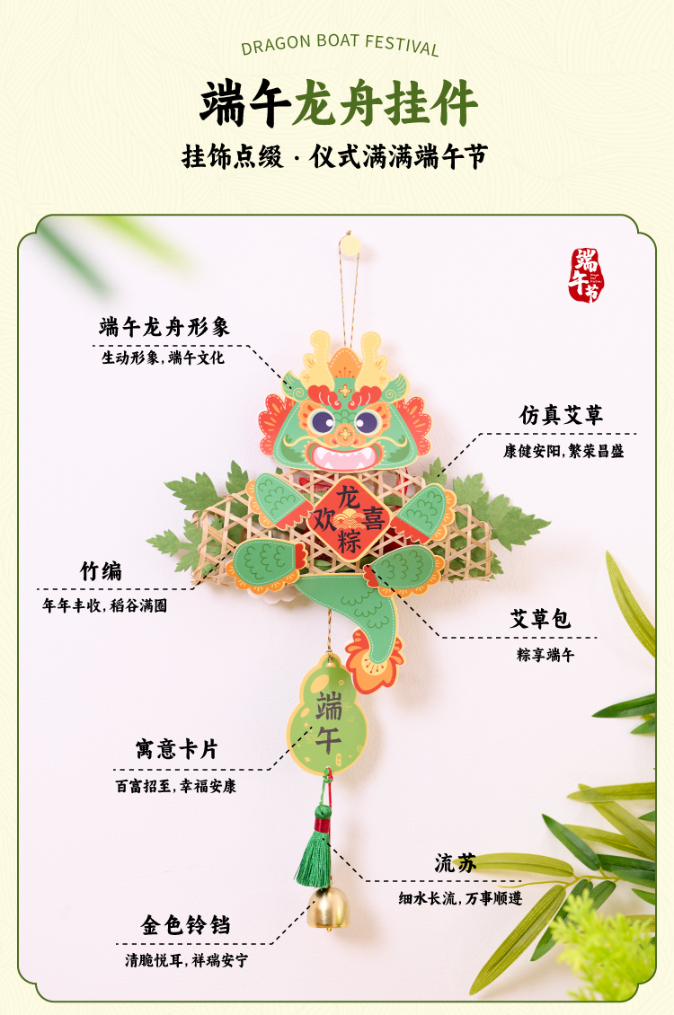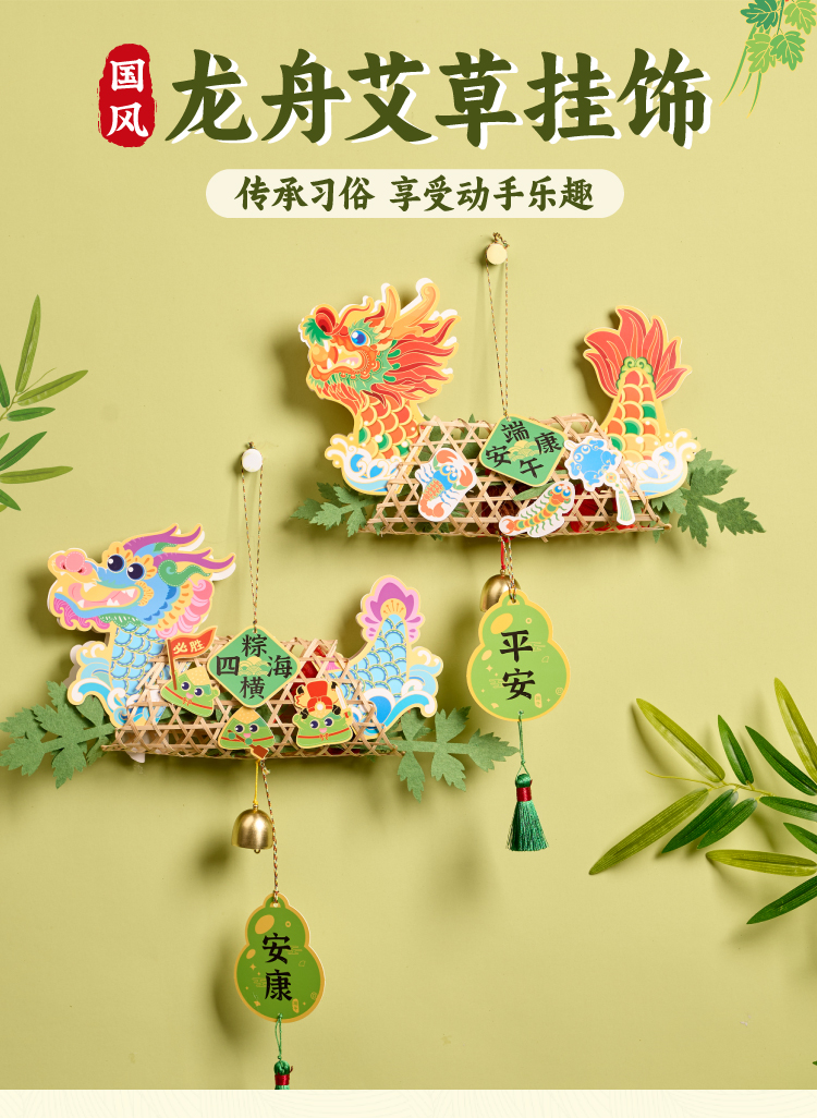 2025端午节礼物手工diy国潮龙舟艾草挂饰儿童制作材料幼儿园活动装饰