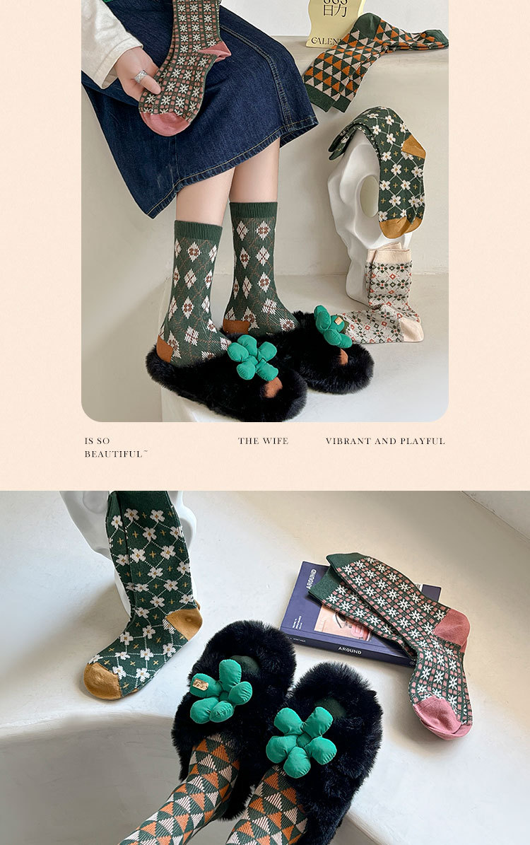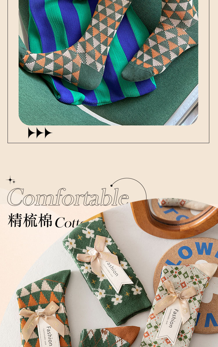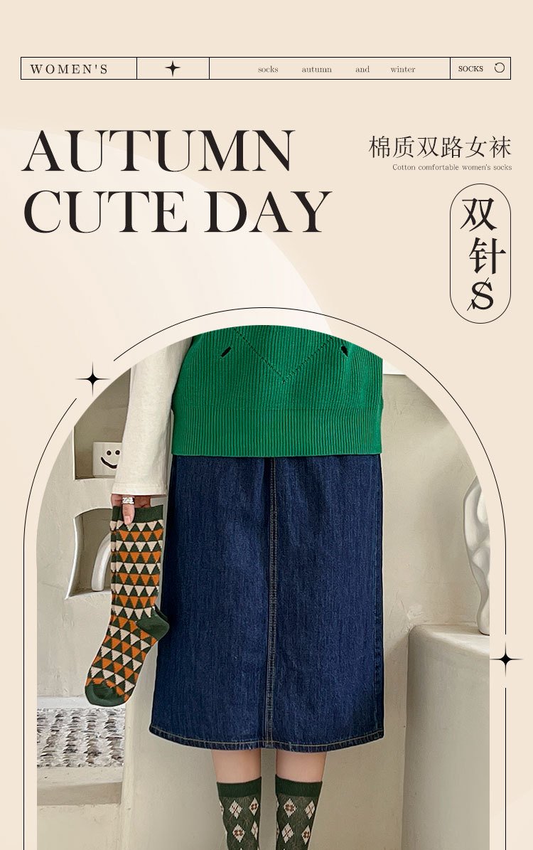 【甄选精梳棉面料❗️双针双路内里无线头】圣诞袜子女中筒袜秋冬季双针双路圣诞礼物无线头冬天高筒长袜。ja